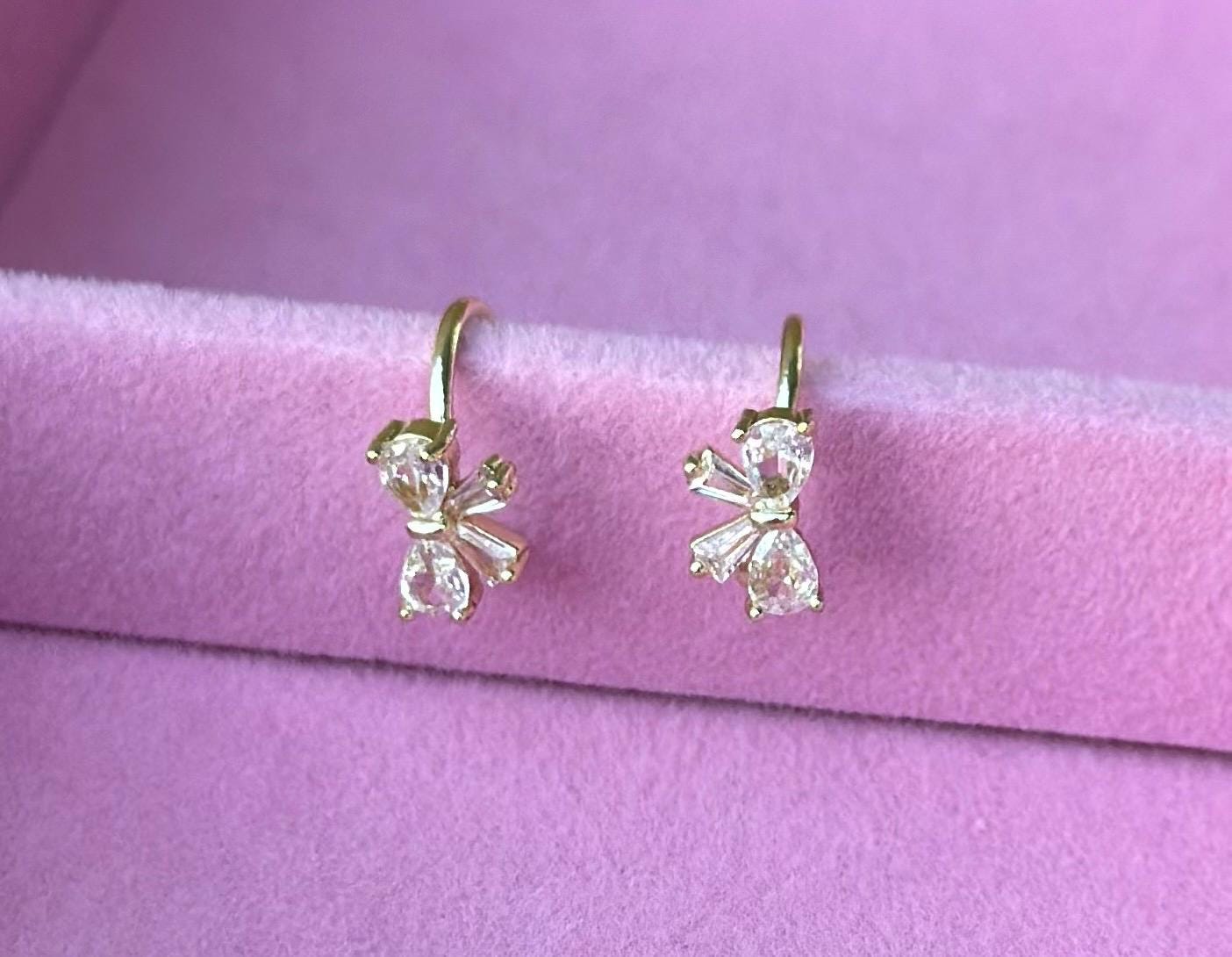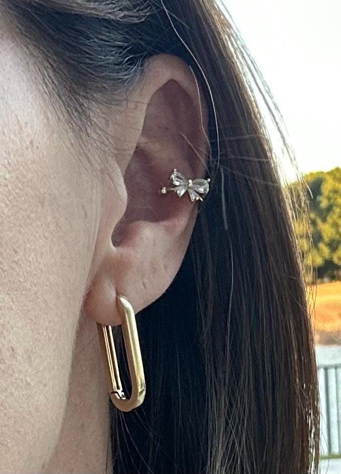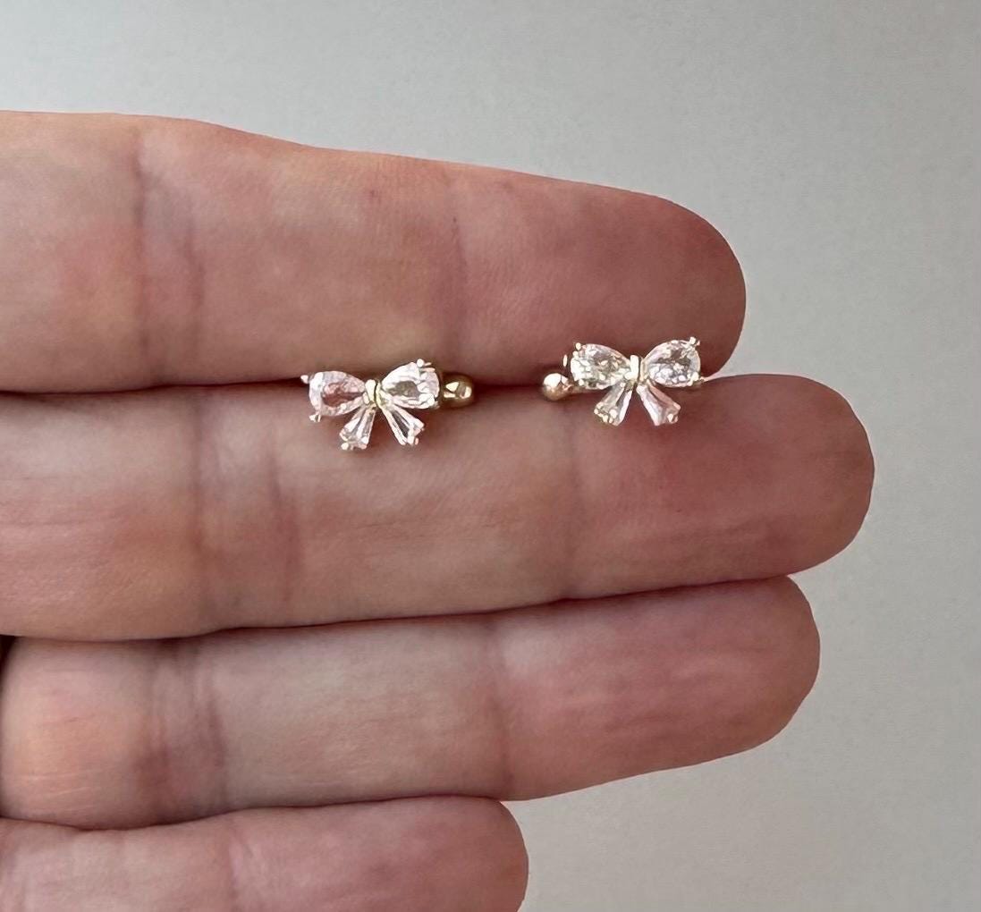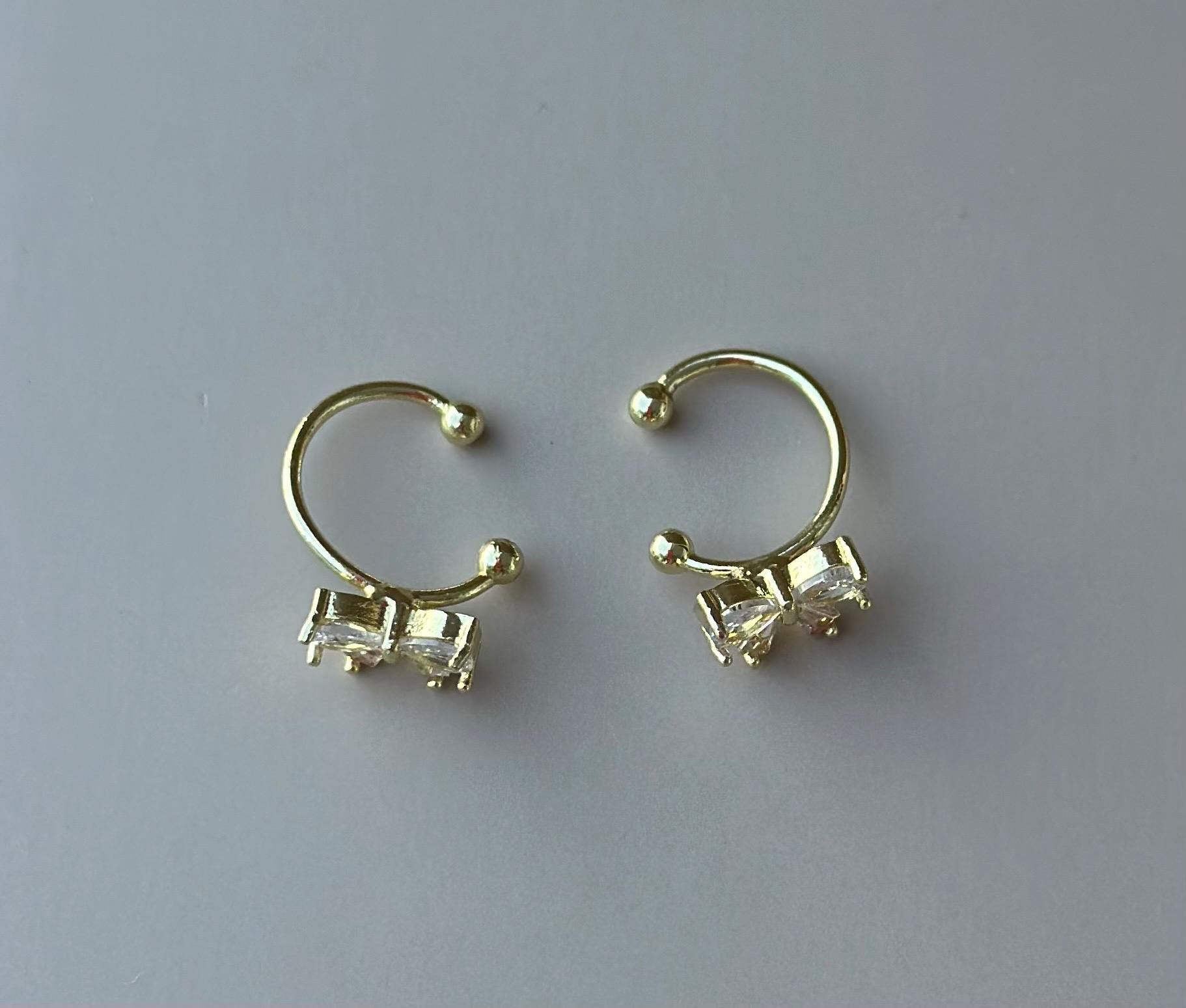 Bow Ear Cuff Bow Cuff Earring Gift Idea Cute Bow Zirconia Ear Cuff Golden Bow No Piercing Earrings Dainty Ear Clip Earrings Bow Coquette .