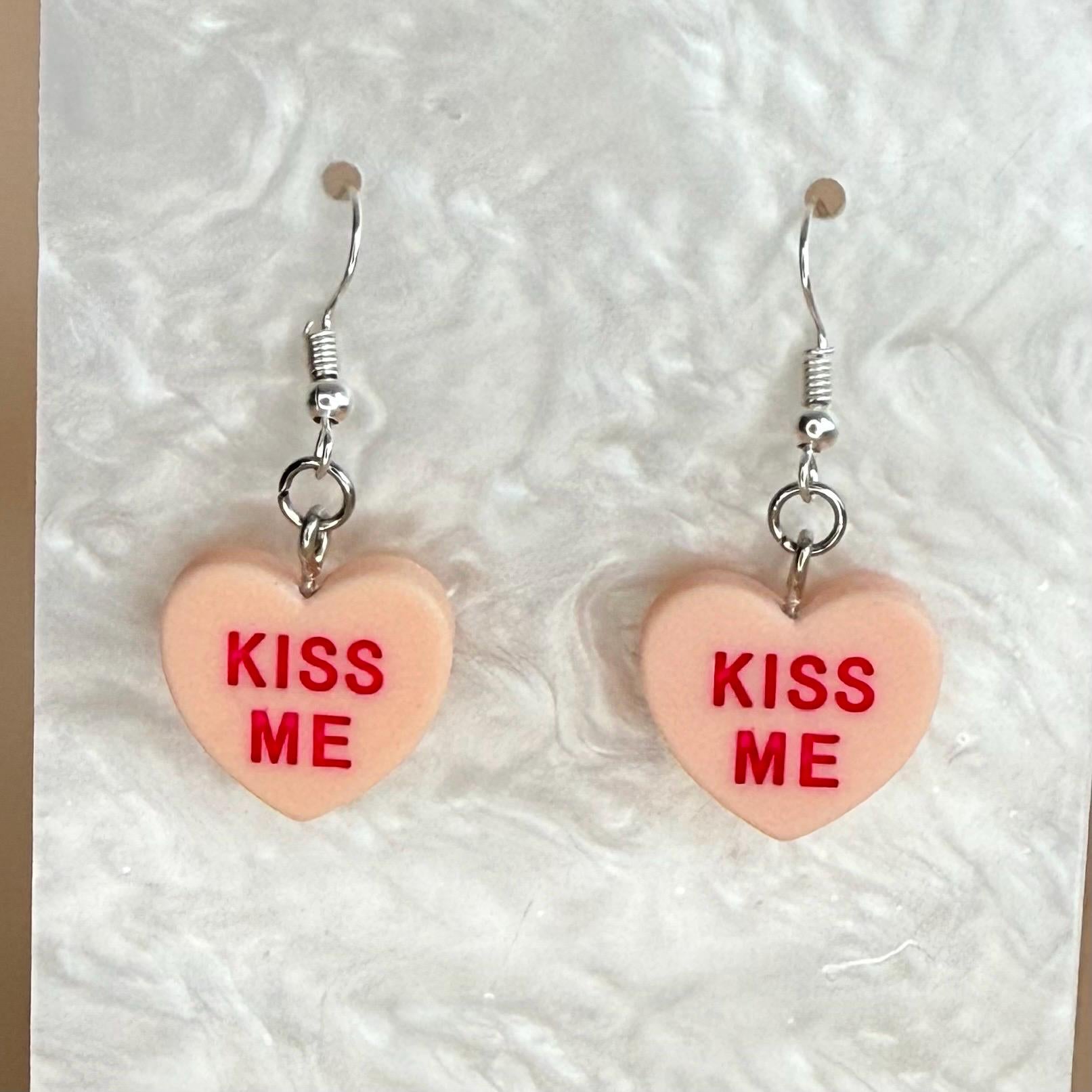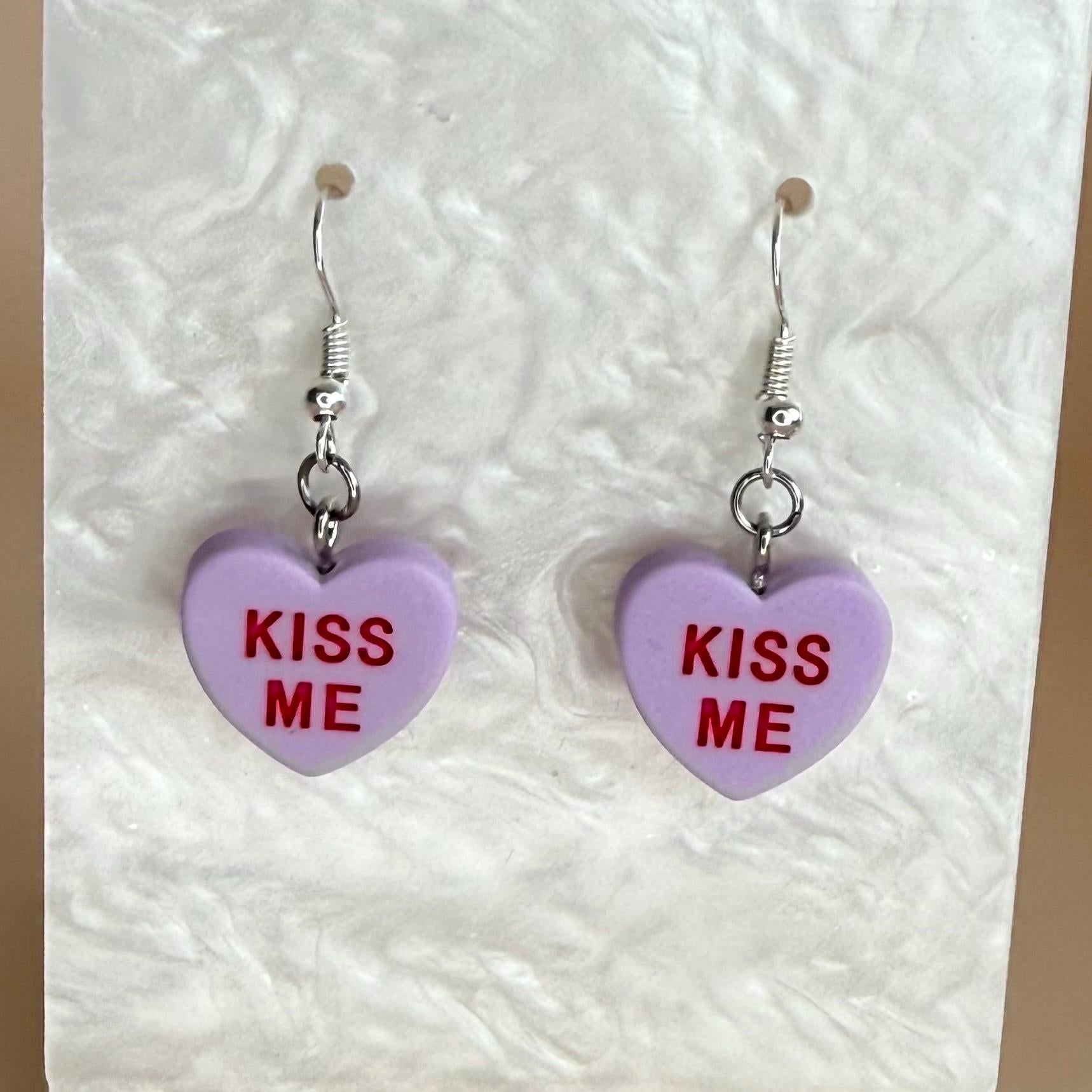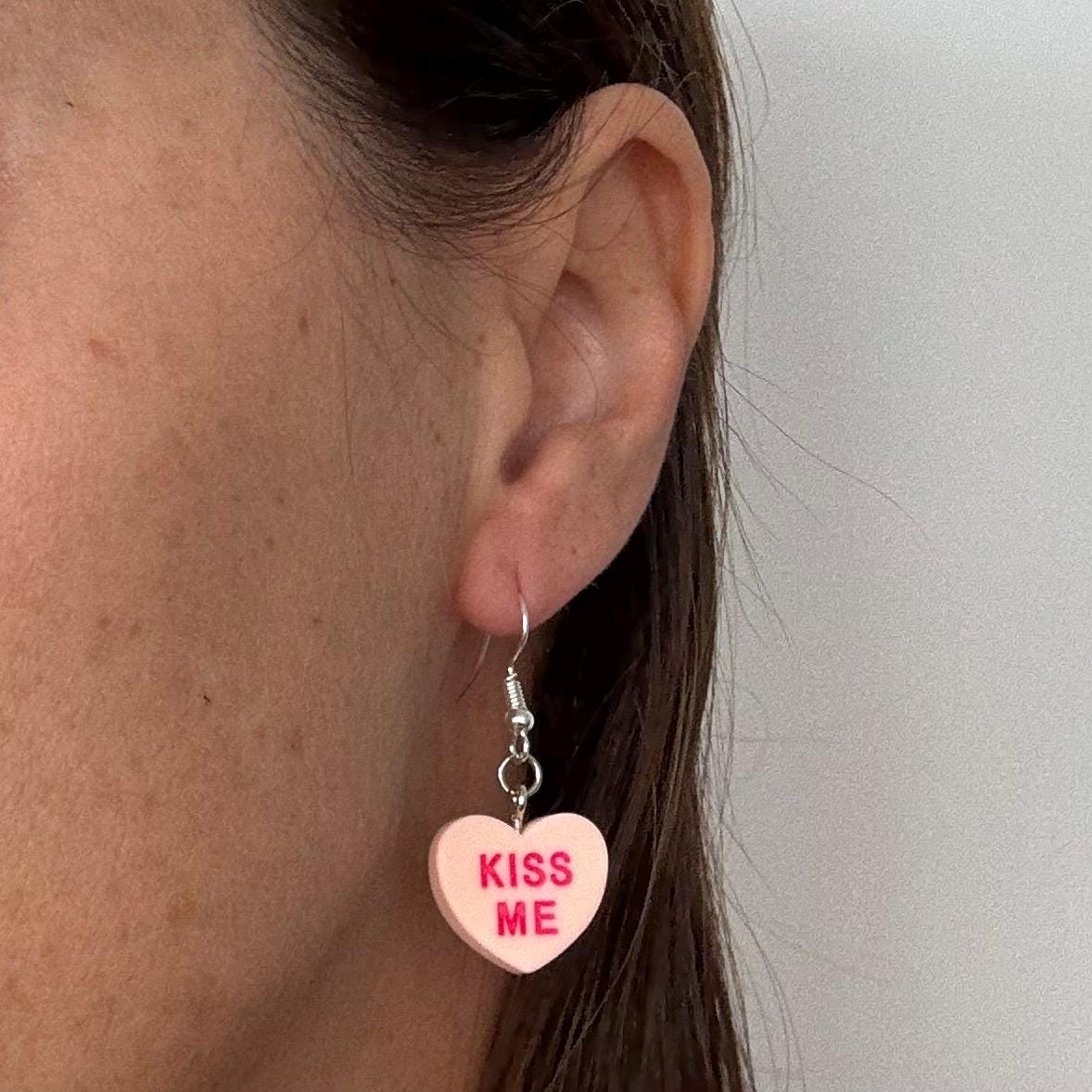 Candy Hearts Earrings Heart Charms Kiss Me Earrings Valentines Day Candy Earrings Candy Color Friendship Jewelry Gift for Girlfriend Earrings.