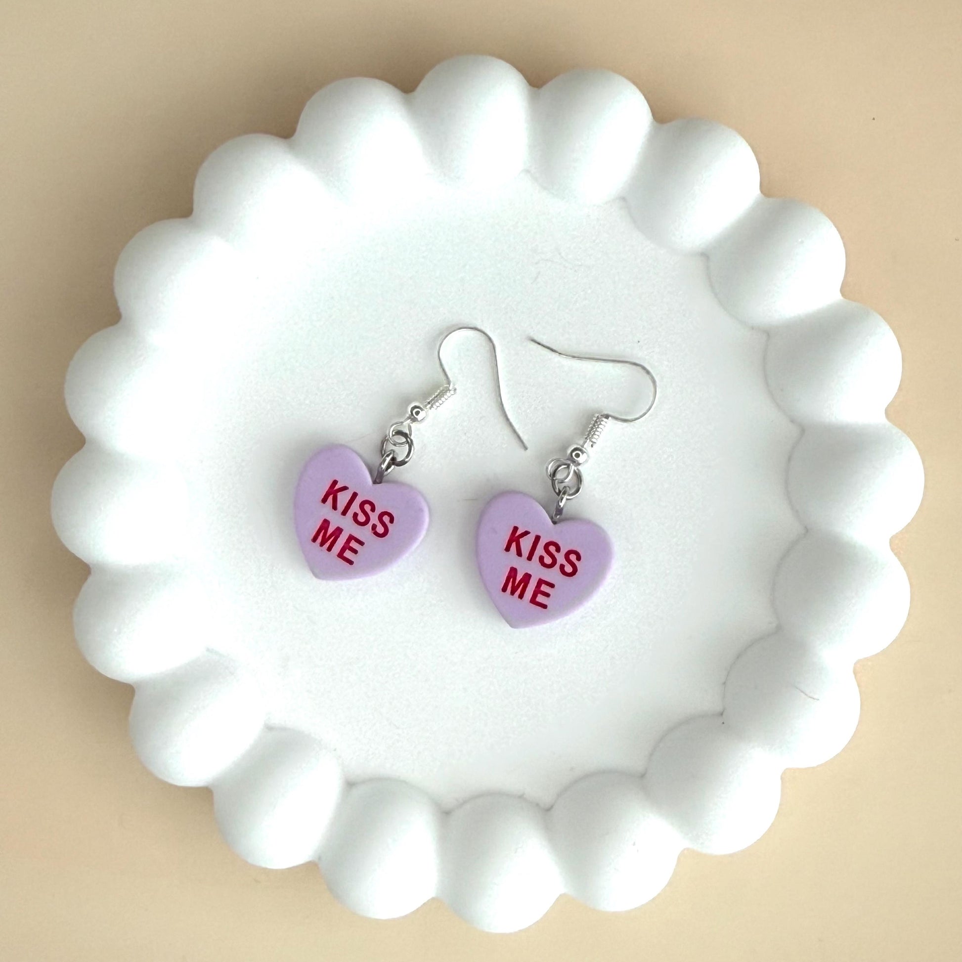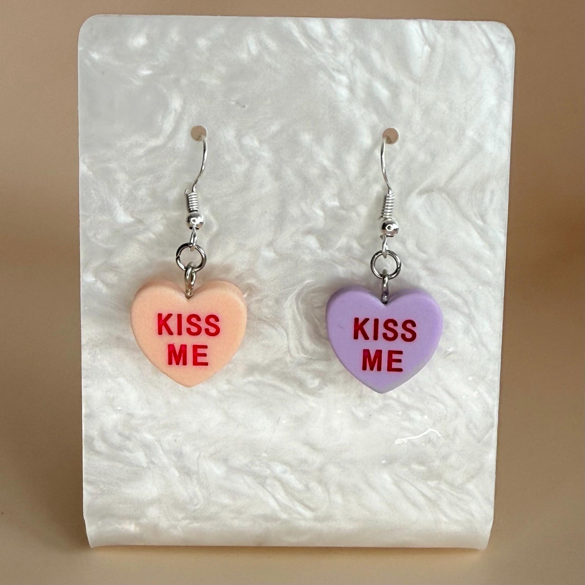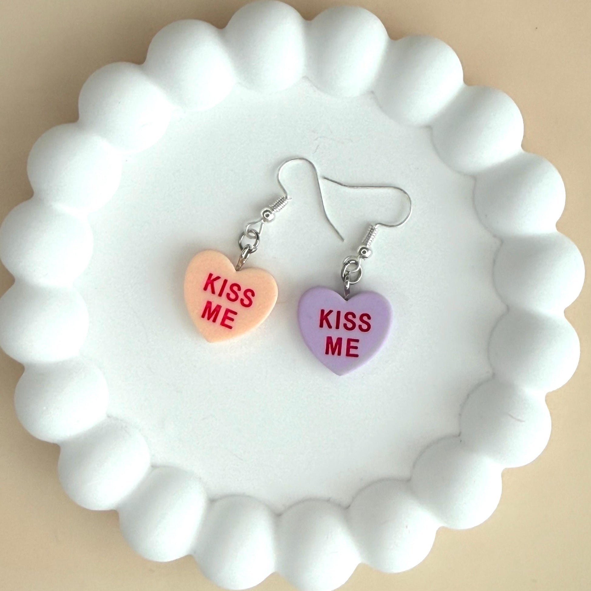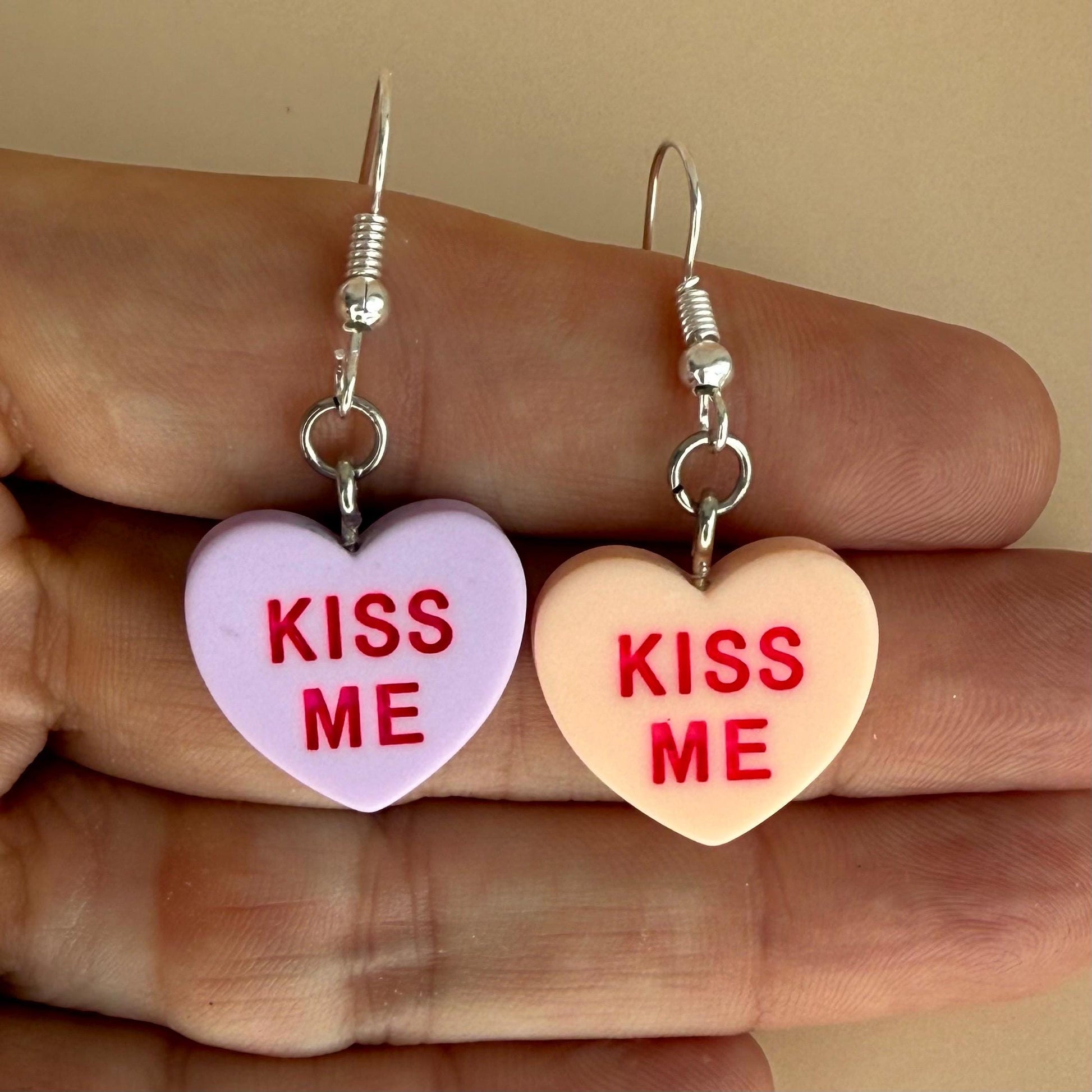 Candy Hearts Earrings Heart Charms Kiss Me Earrings Valentines Day Candy Earrings Candy Color Friendship Jewelry Gift for Girlfriend Earrings.