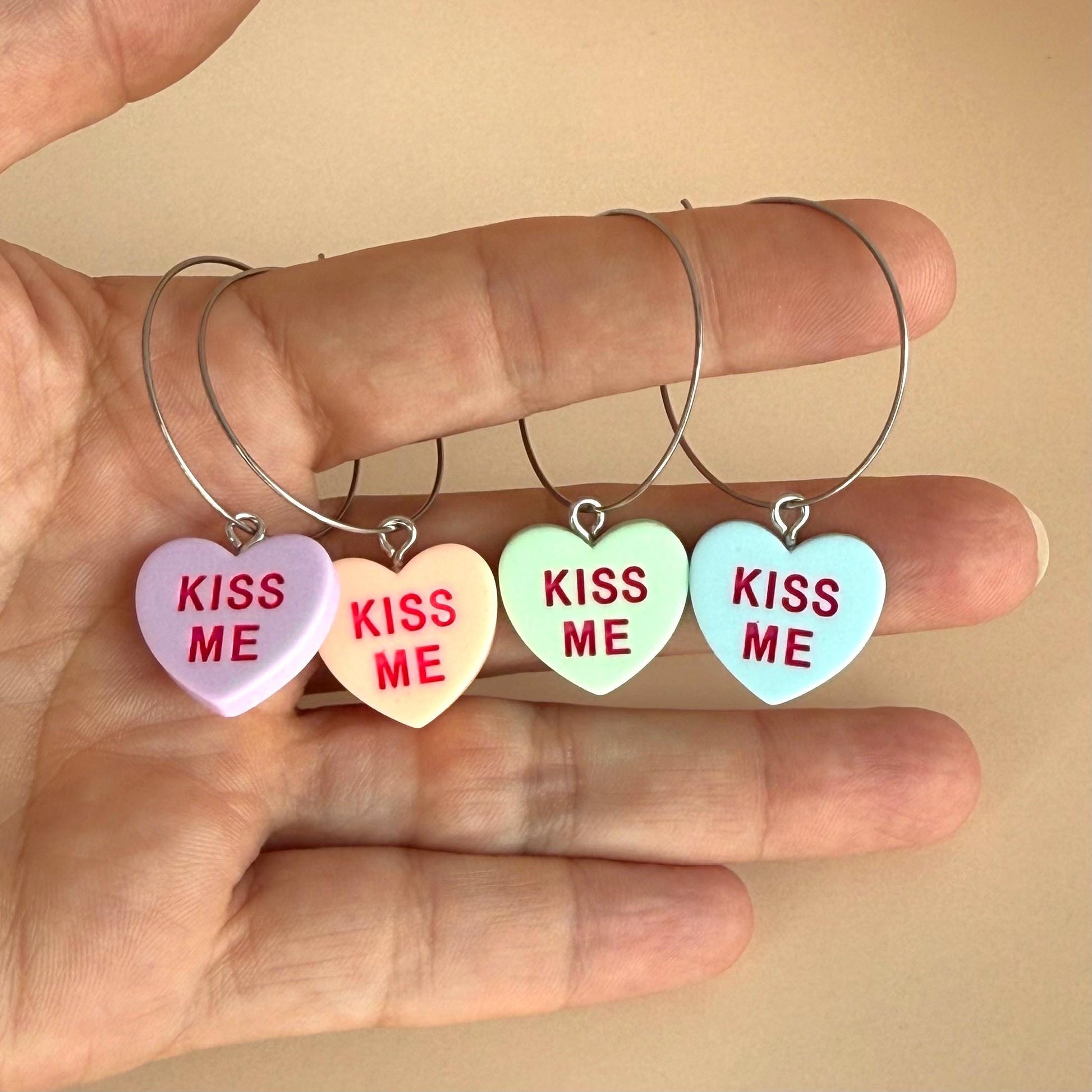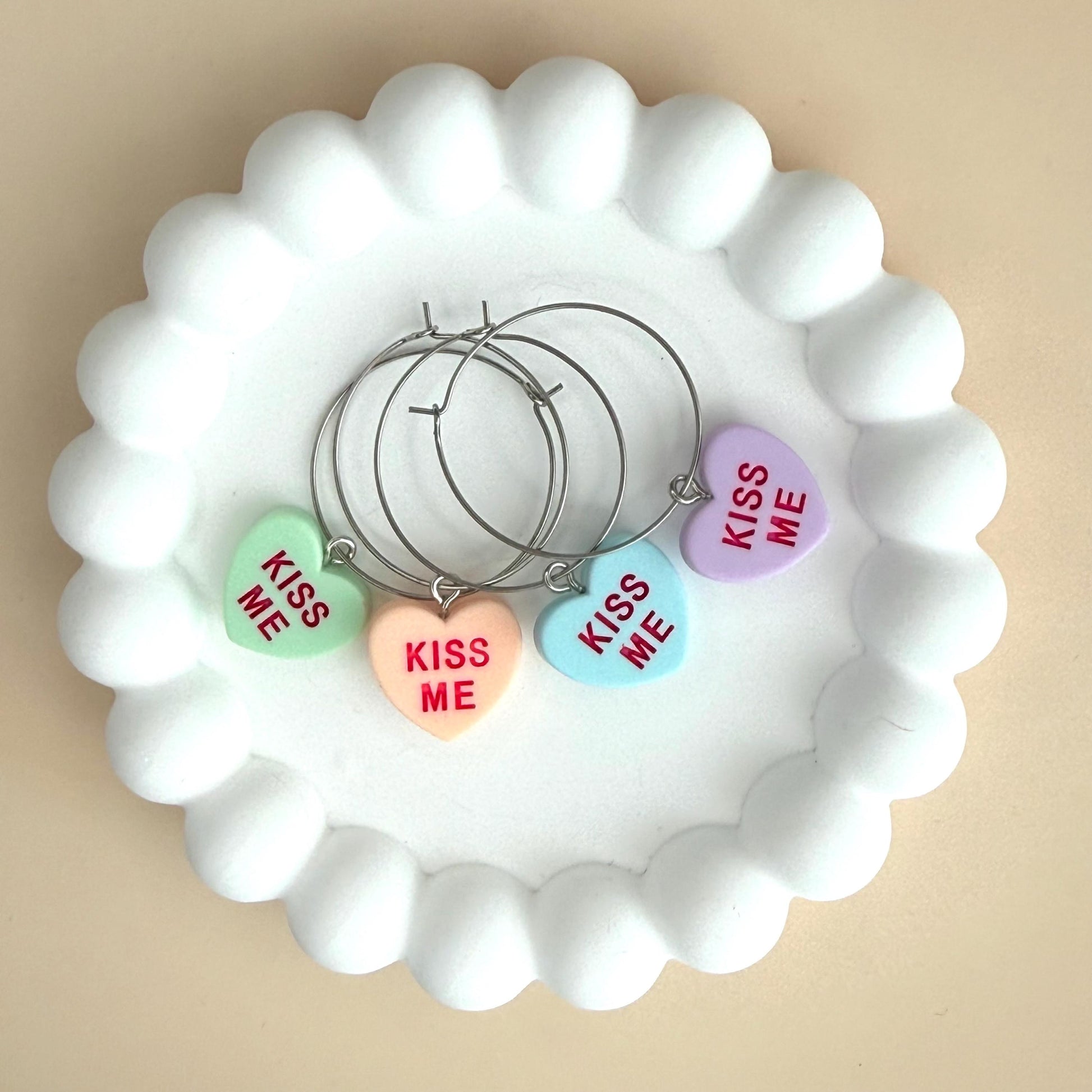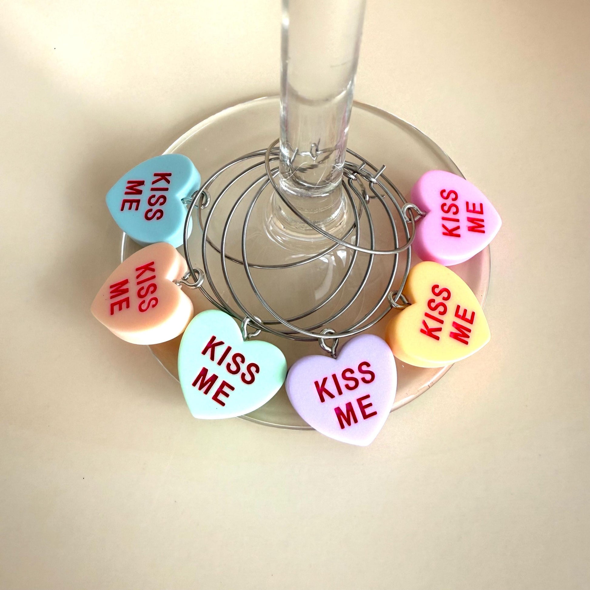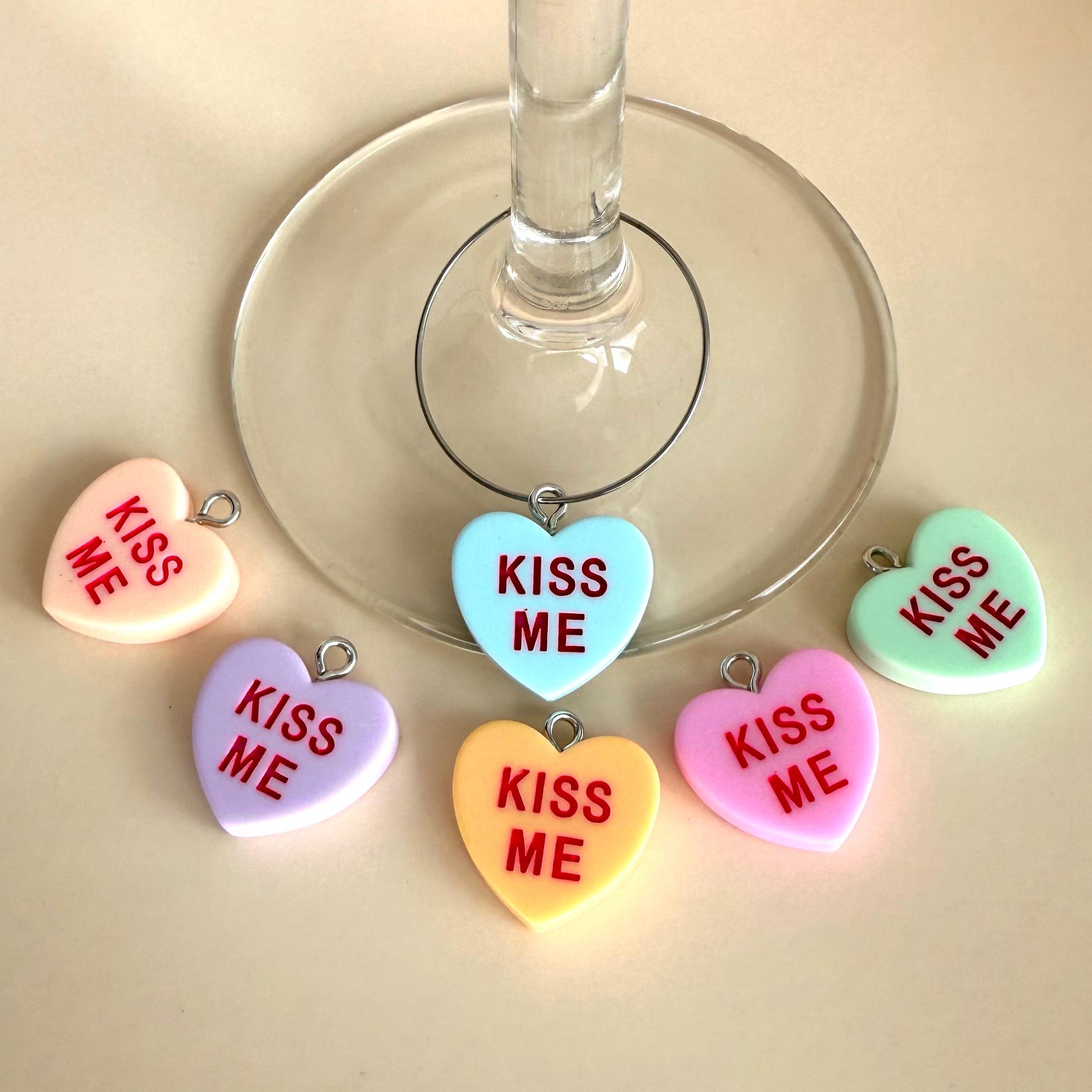 Candy Hearts Wine Charms Heart Glass Markers Kiss Me Wine Charms Assorted Drink Marker Heart Charms Wine Glass Charms Valentines Day Candy.