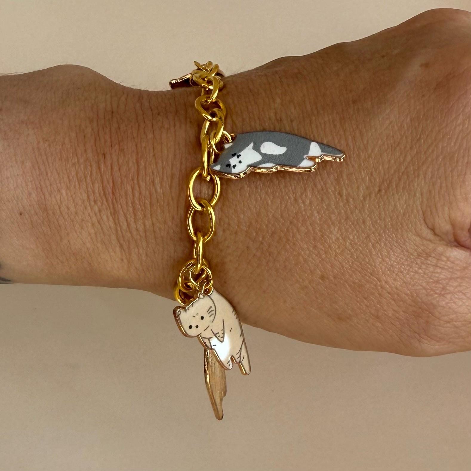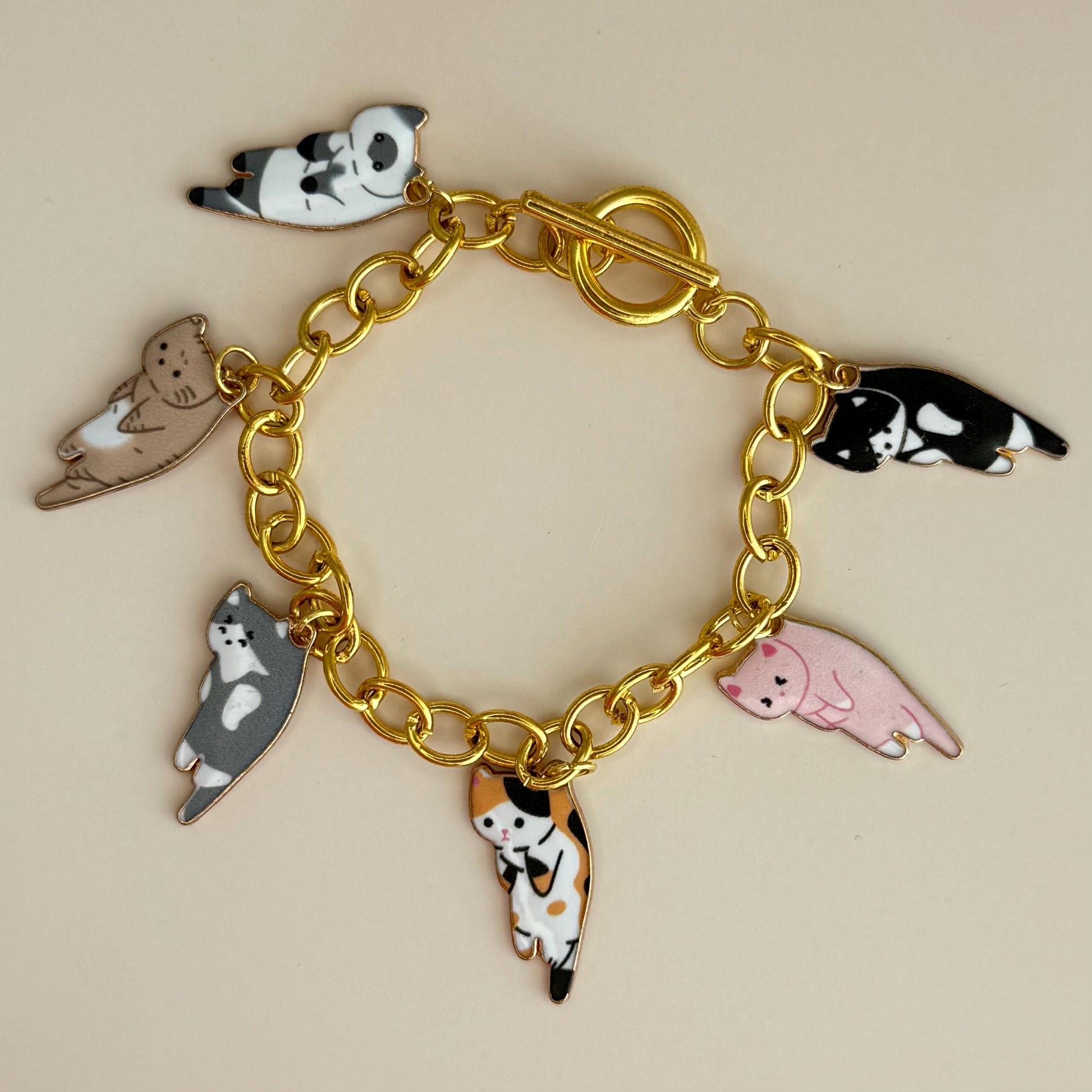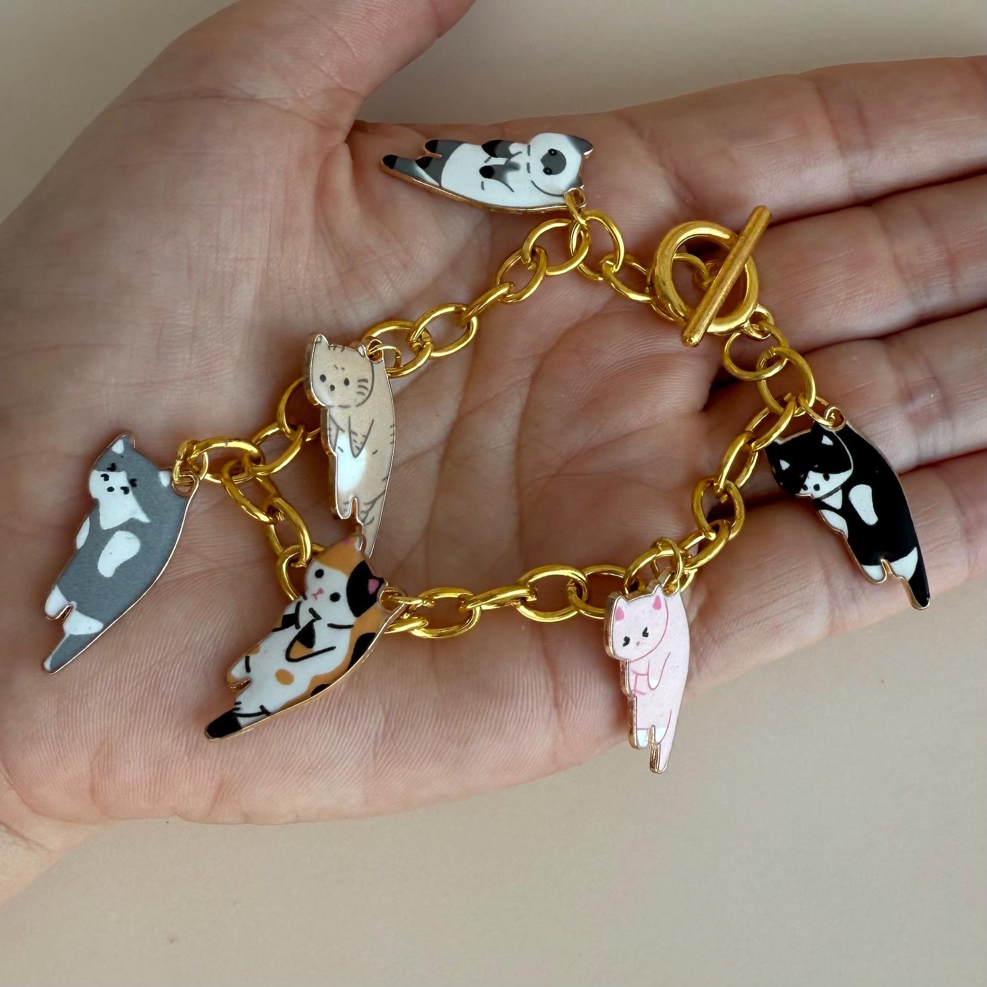 Cat Bracelet for Cat Mom Gift Crazy Cat Lady Cat Lover Jewelry Cat Jewelry Cat Charms on Chain Bracelet Cat Charms Bracelet Cute Cat Pendant