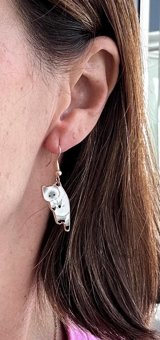 Cat Earrings Black Cat Black and White Cat Persian Cat Pendant Cat Lover Crazy Cat Lady Gift Cat Lover Jewelry Cat Mom Earrings Cat Jewelry