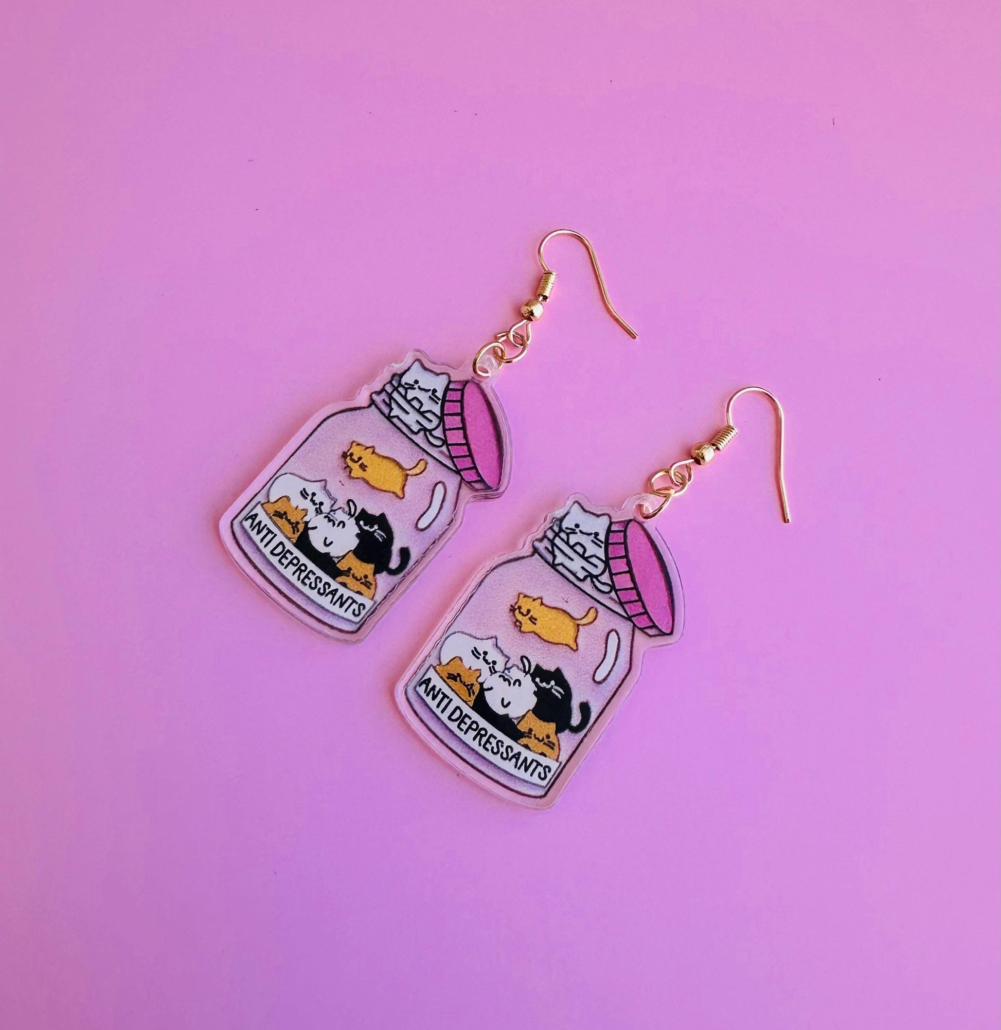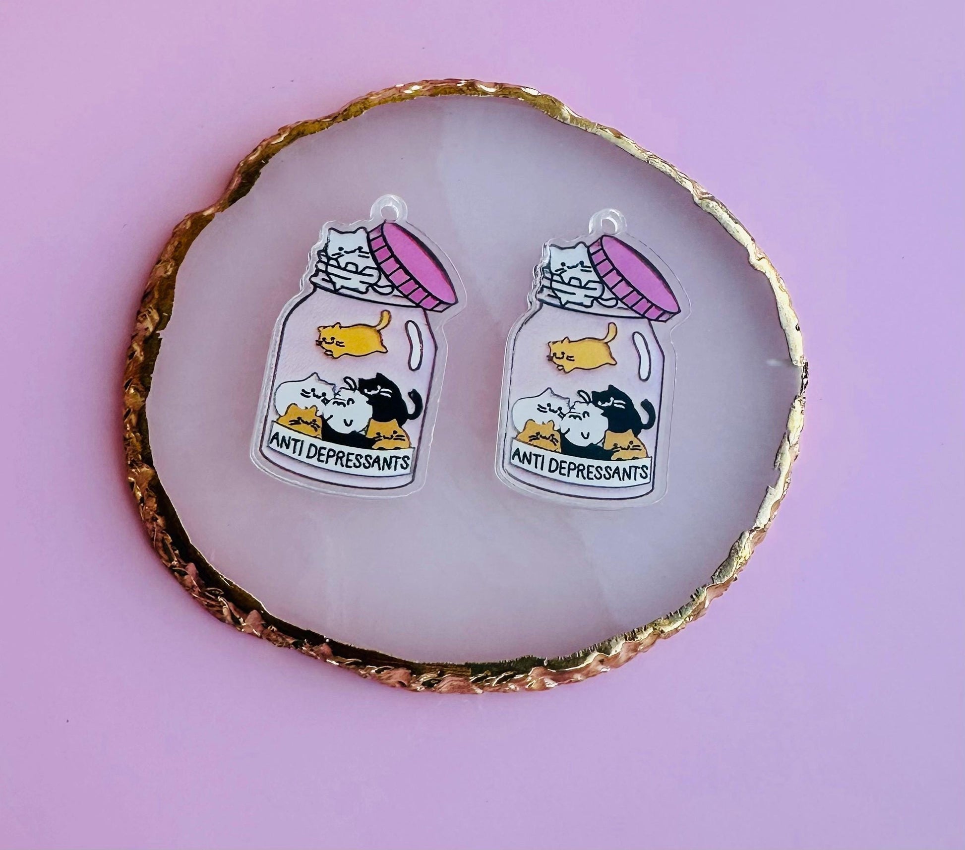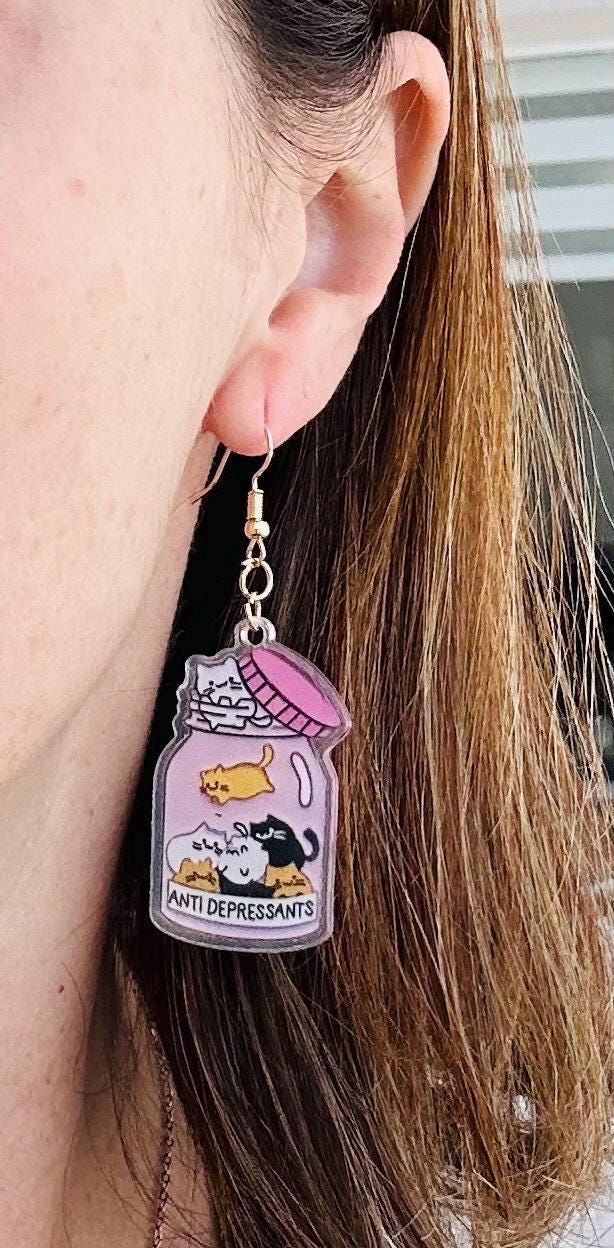 Cat Earrings Cats Anti Depressants Crazy Cat Lady Gift Dangle Earrings Cat Lover Jewelry Cat Mom Earrings Cat Jewelry Cat Mom Valentines Day.