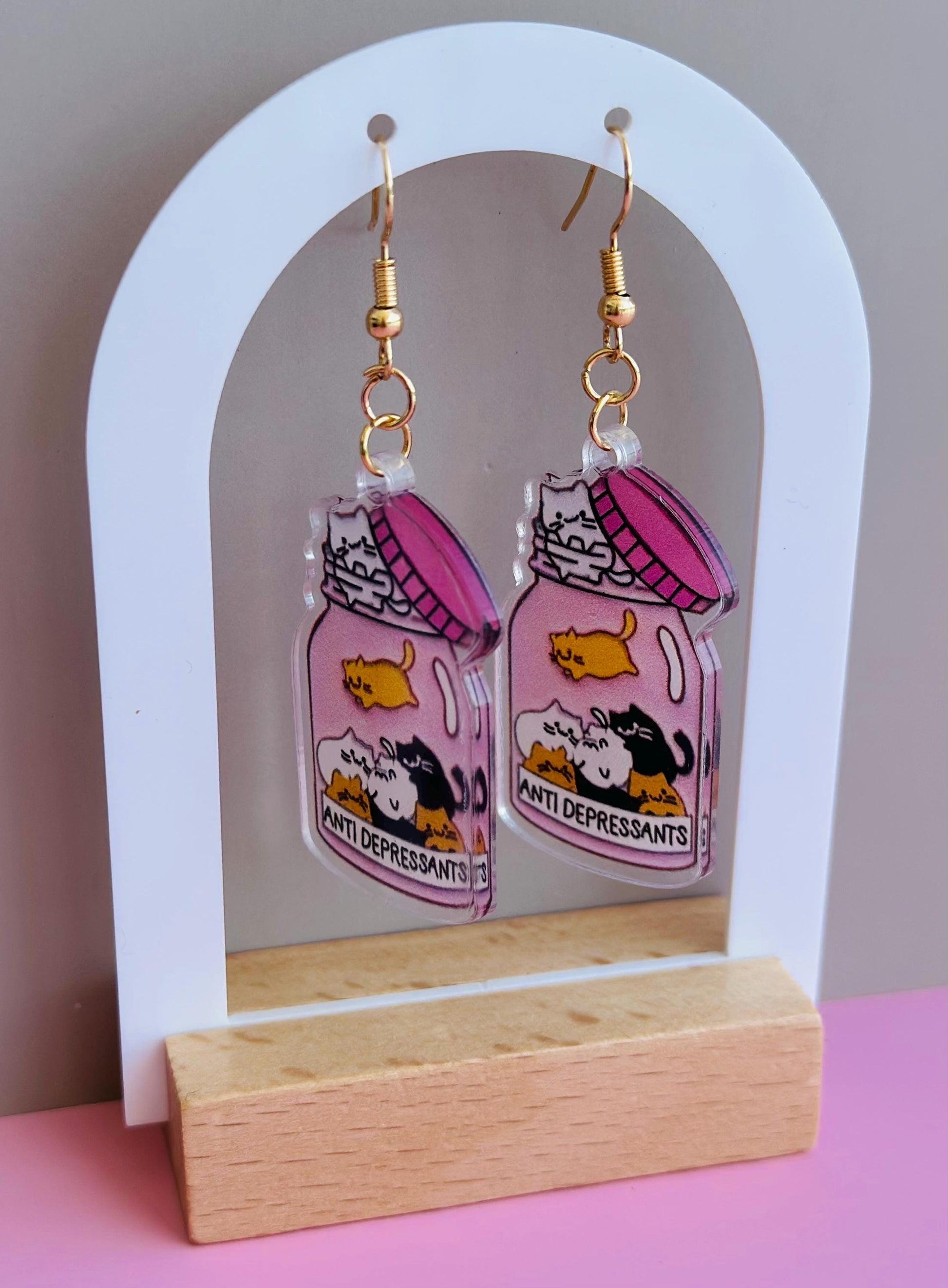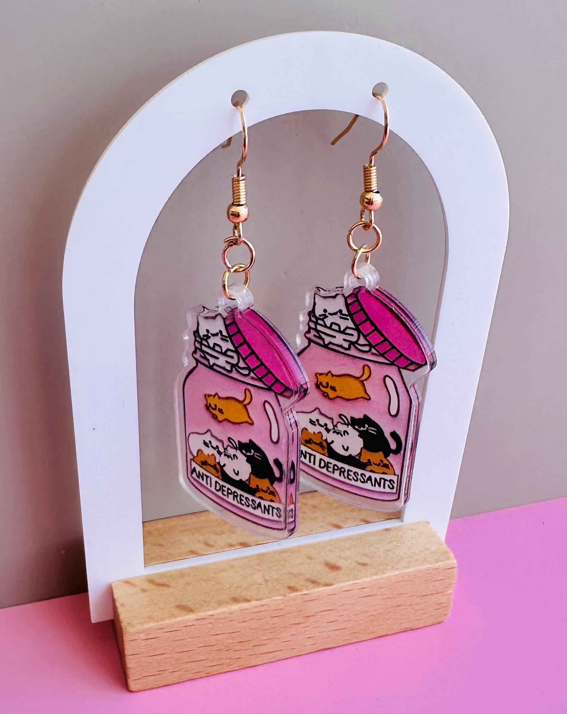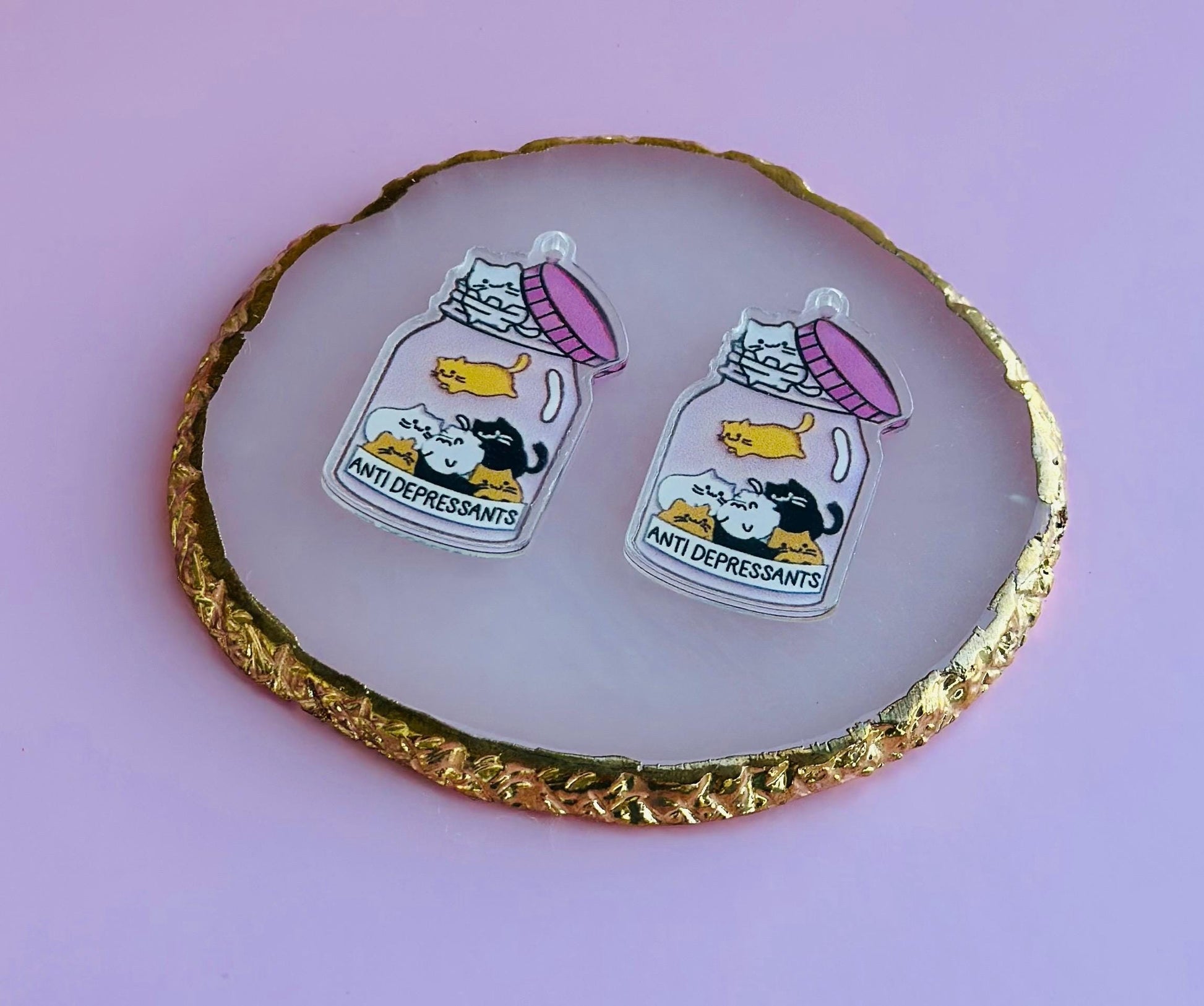 Cat Earrings Cats Anti Depressants Crazy Cat Lady Gift Dangle Earrings Cat Lover Jewelry Cat Mom Earrings Cat Jewelry Cat Mom Valentines Day.