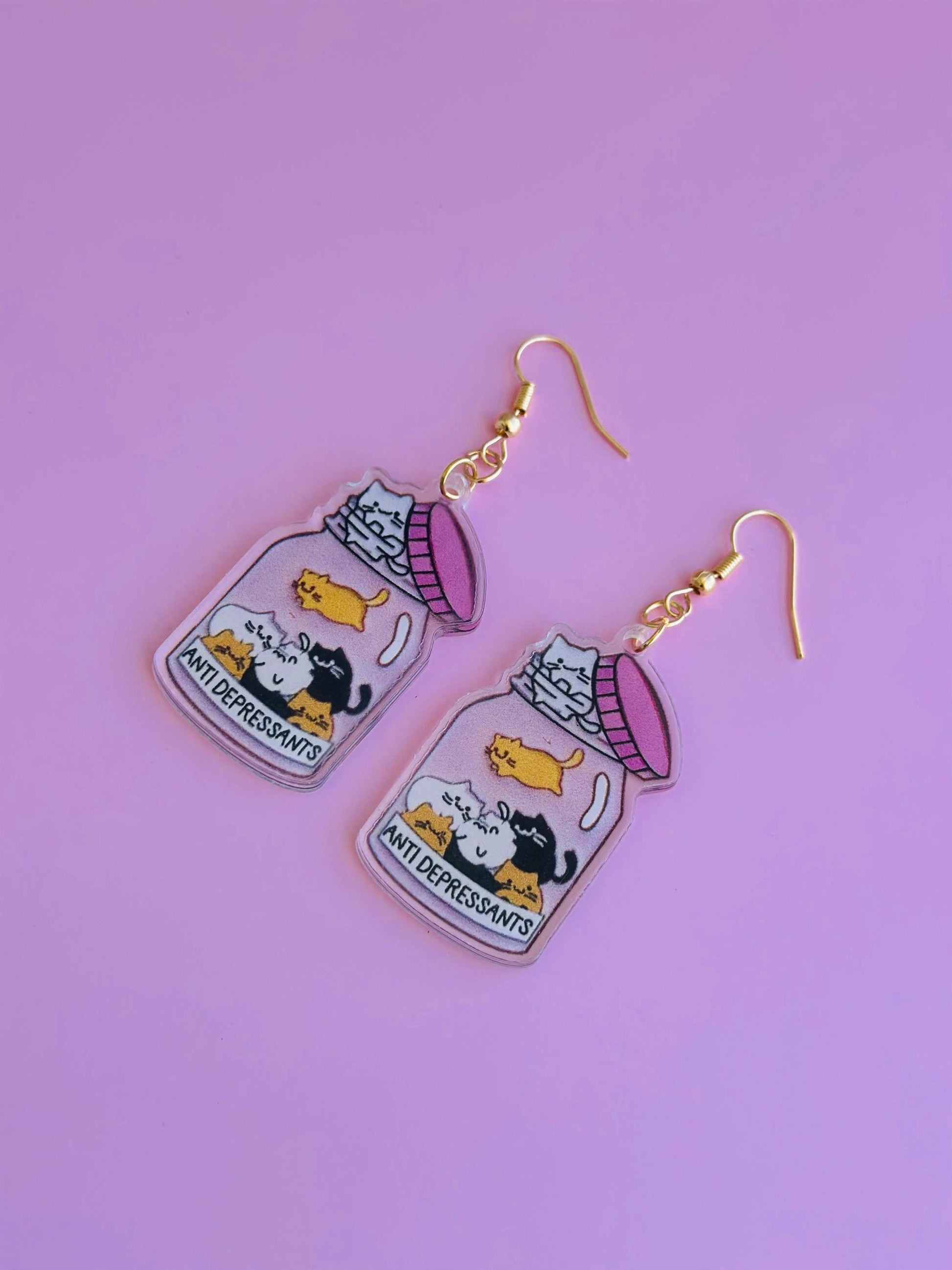 Cat Earrings Cats Anti Depressants Crazy Cat Lady Gift Dangle Earrings Cat Lover Jewelry Cat Mom Earrings Cat Jewelry Cat Mom Valentines Day