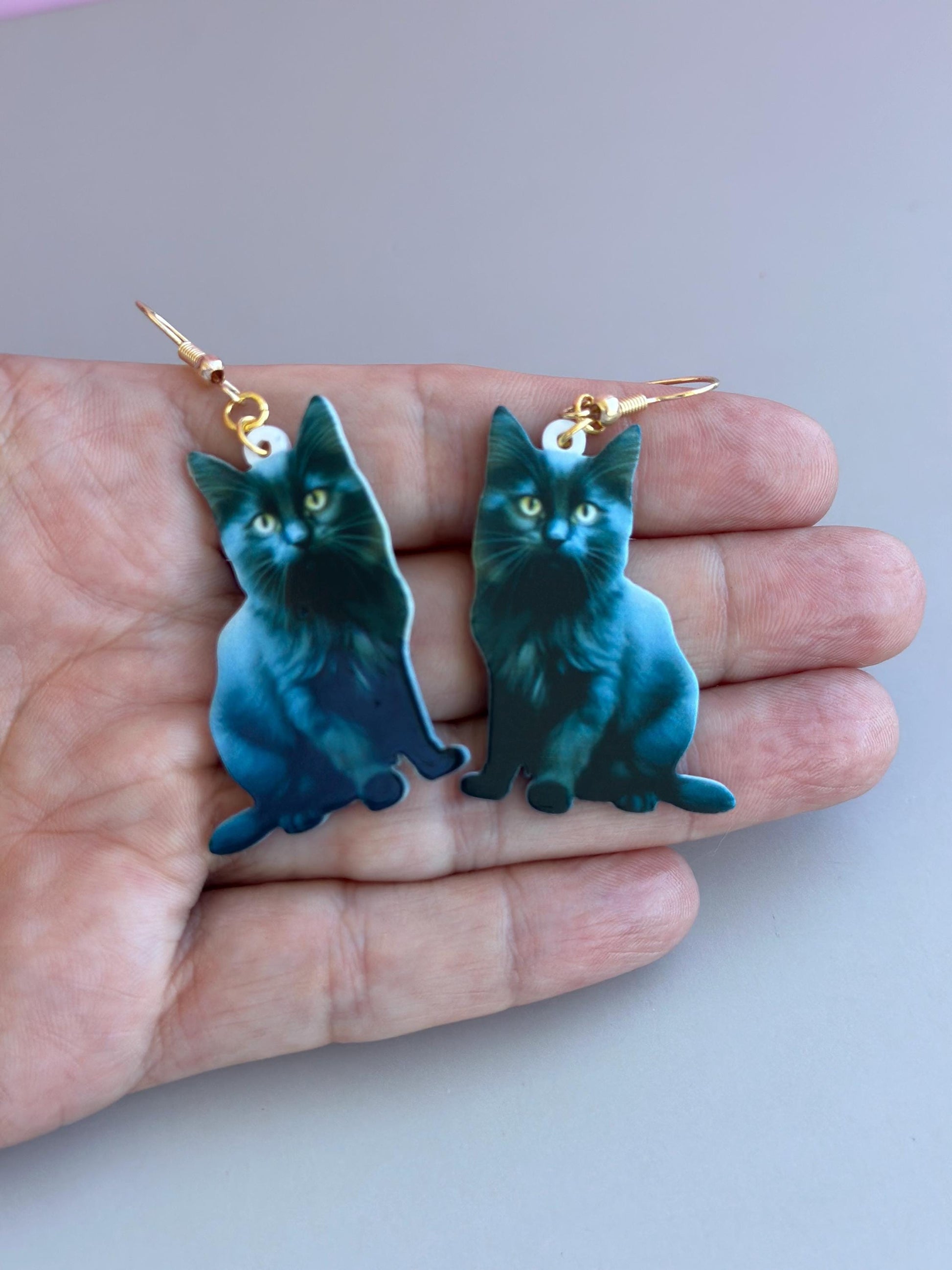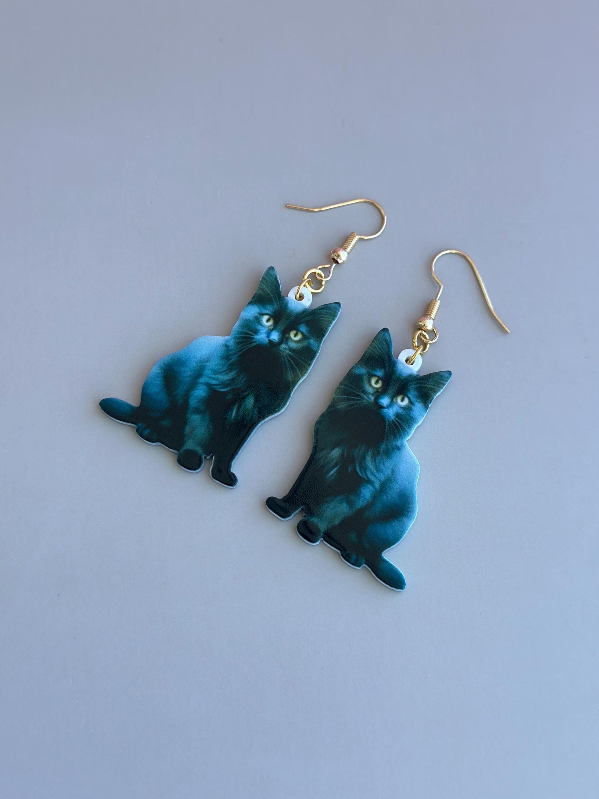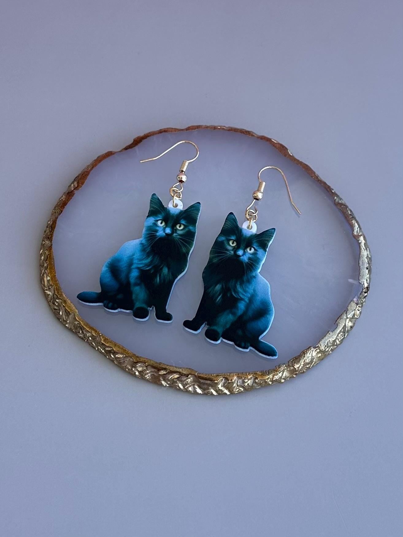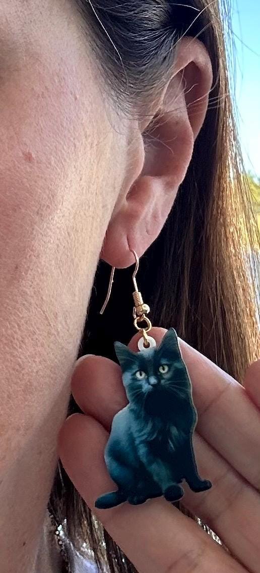 Cat Earrings Whimsical Cat Black Cat Earrings Kitten Gift Crazy Cat Lady Gift Dangle Earrings Cat Lover Jewelry Cat Mom Earring Cat Jewelry.