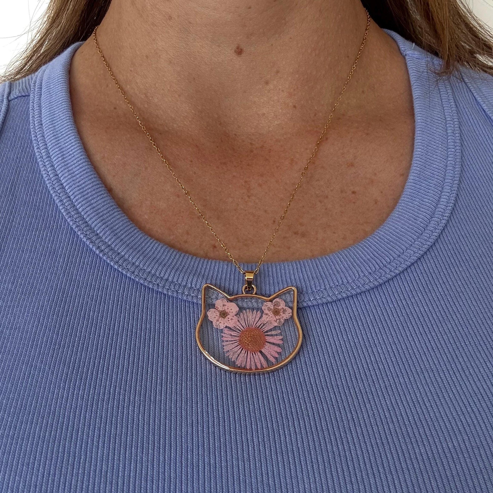 Dried Flower Pressed in Glass in a Cat Shape. Cat Necklace for Mother's Day Gift Crazy Cat Lady Glass Flower Cat Gift Cat Lover Jewelry Cat Mom Necklace Cat Jewelry Cat Mom Gift for Cat Accessory Handcrafted.