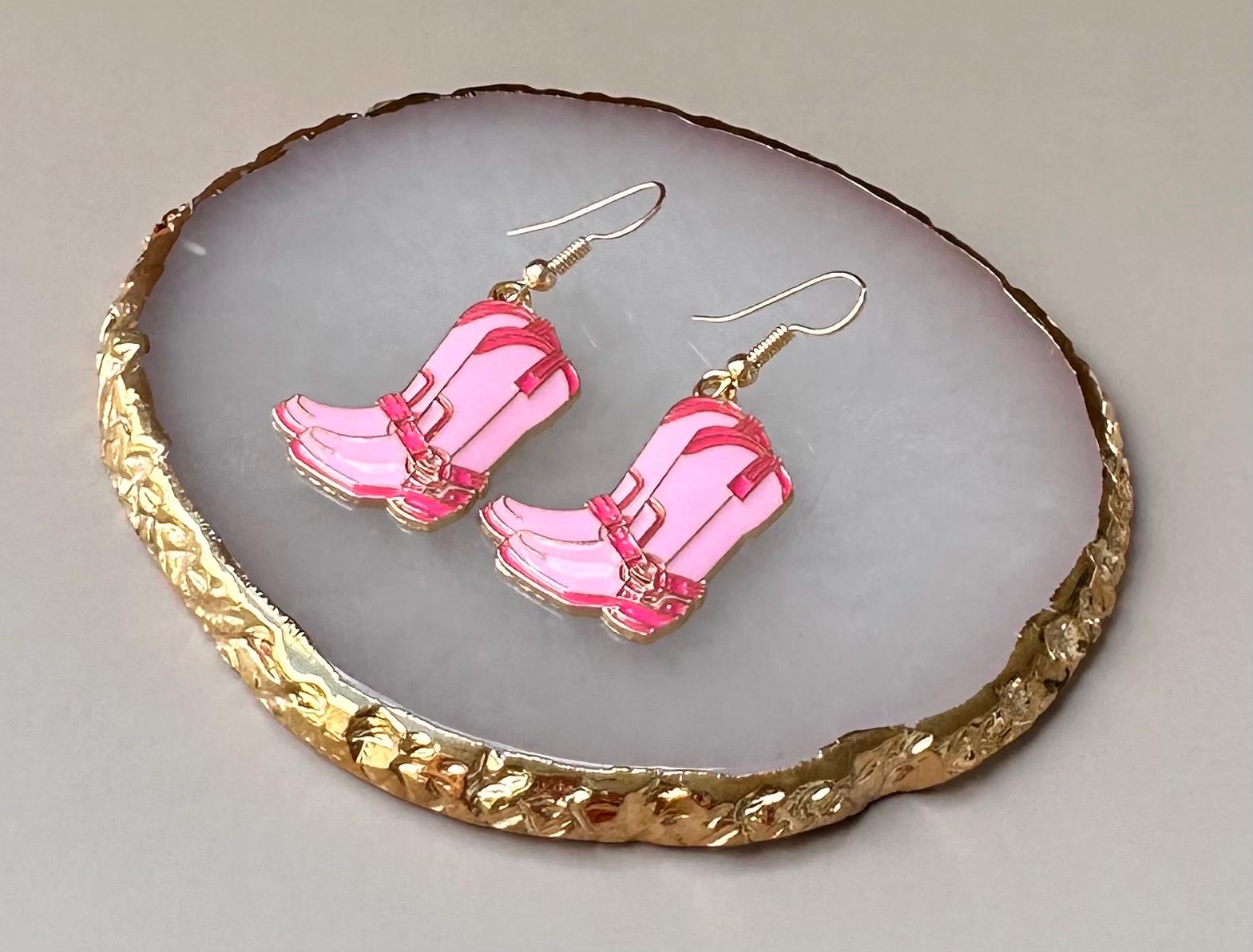 Cowboy Earrings Golden Cowgirl Earrings Cowboy Jewelry Cowgirl Theme Pink Earrings For Women Gift for Her Cowboy Theme Jewelry Western Theme