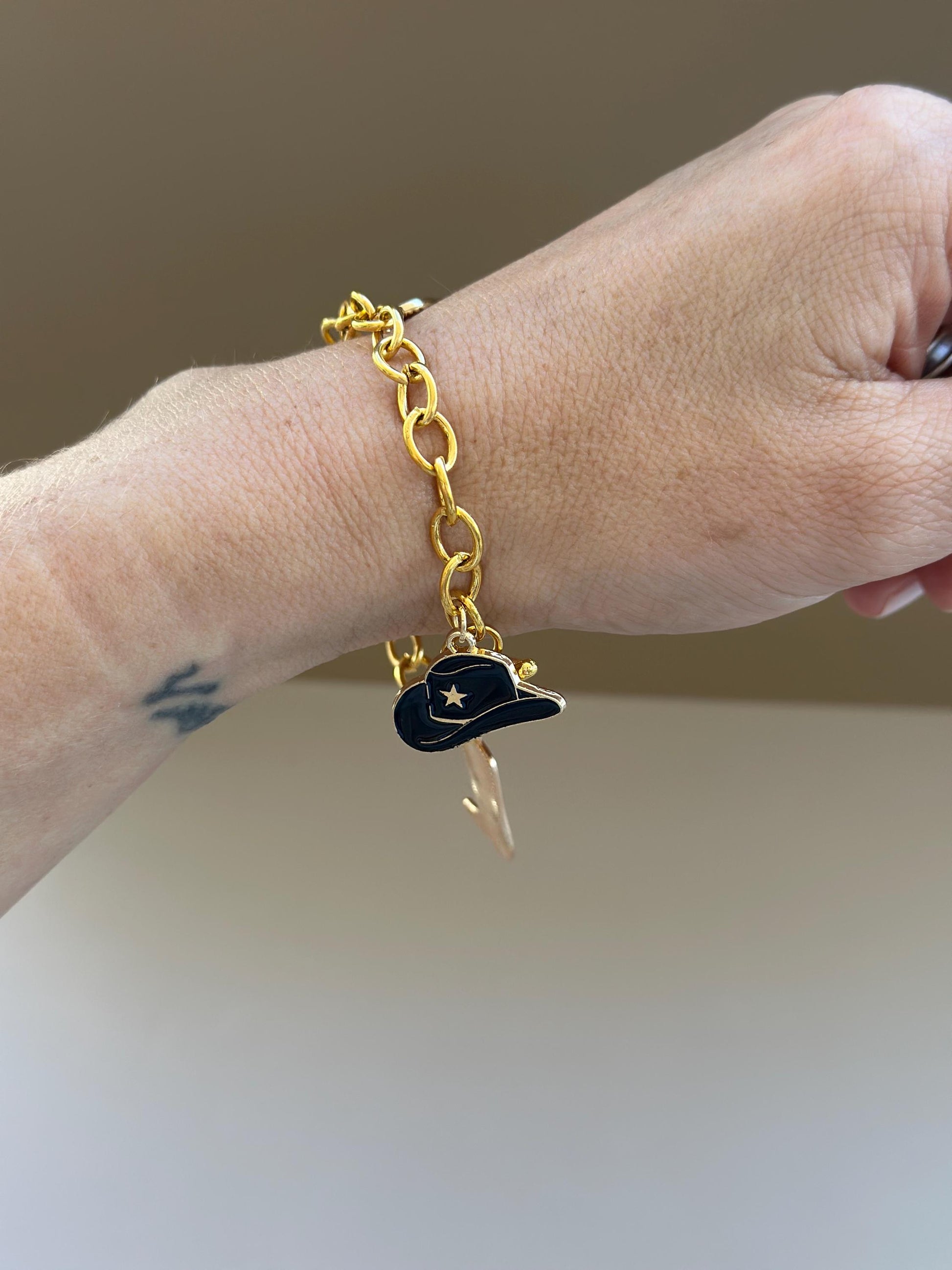 Cowgirl Bracelet Gift Cowgirl Charms on Chain Cowboy Bracelet Cowboy Charm Cowgirl Theme Charms Bracelet Cowboy Jewelry Valentine's Day Gift Idea.