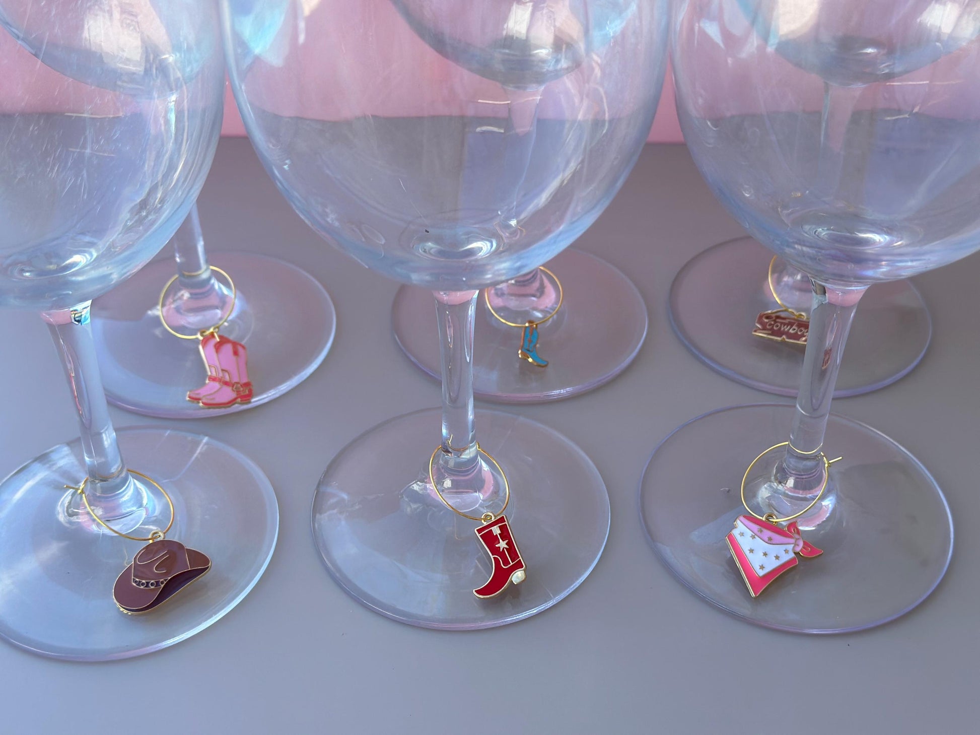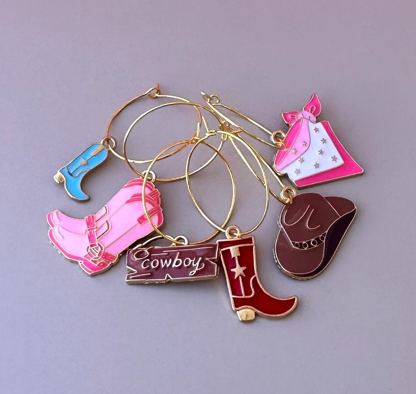 Assorted Cowgirl Wine Glass Markers Drink Marker Cowboy Wine Glass Charms Glass Decor Custom Wine Charms Drink Identifier Hostess Present Party Drink Tag Wine Lover Gift. These Cowgirl Theme wine glass charms are a fun colorful addition to any party and home reception. These drink markers are great for a birthday or for the dinner party host, would make a great gift for cowboy theme lovers, a fun hostess gift, stocking stuffer, mothers day or birthday gift. They are also the perfect addition to a bar cart.