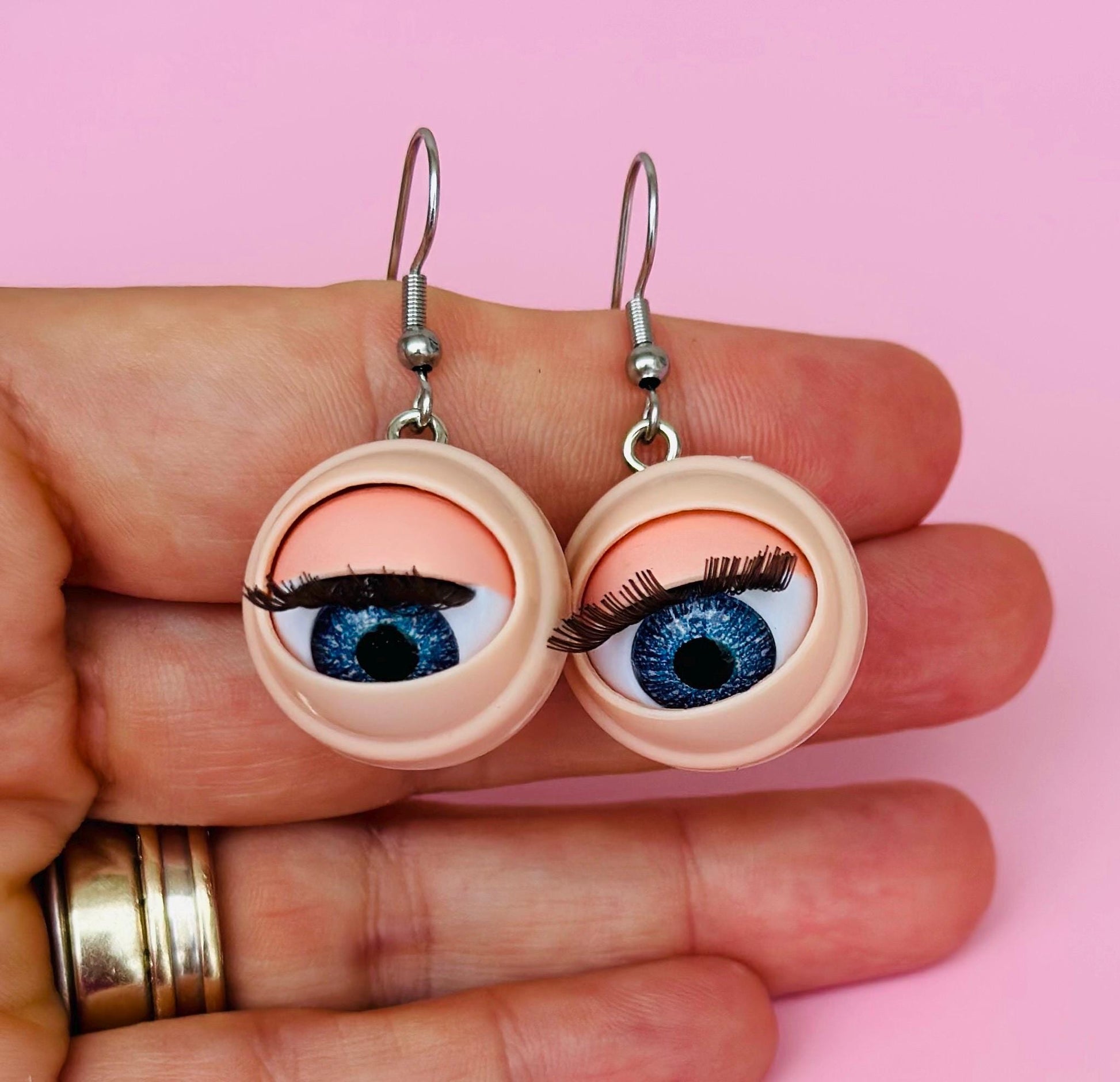 Creepy Earrings Doll Eye Earrings Spooky Eyeball Doll Head Earrings Halloween Party Fun Earrings Novelty Earrings Crazy Earrings Quirky. Stainless Steel Posts.