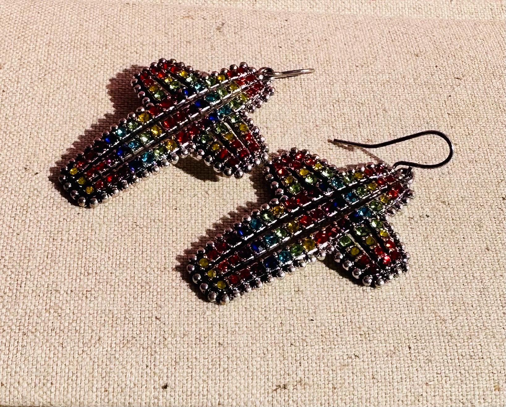Cross Colorful Zirconia Dangle Earrings