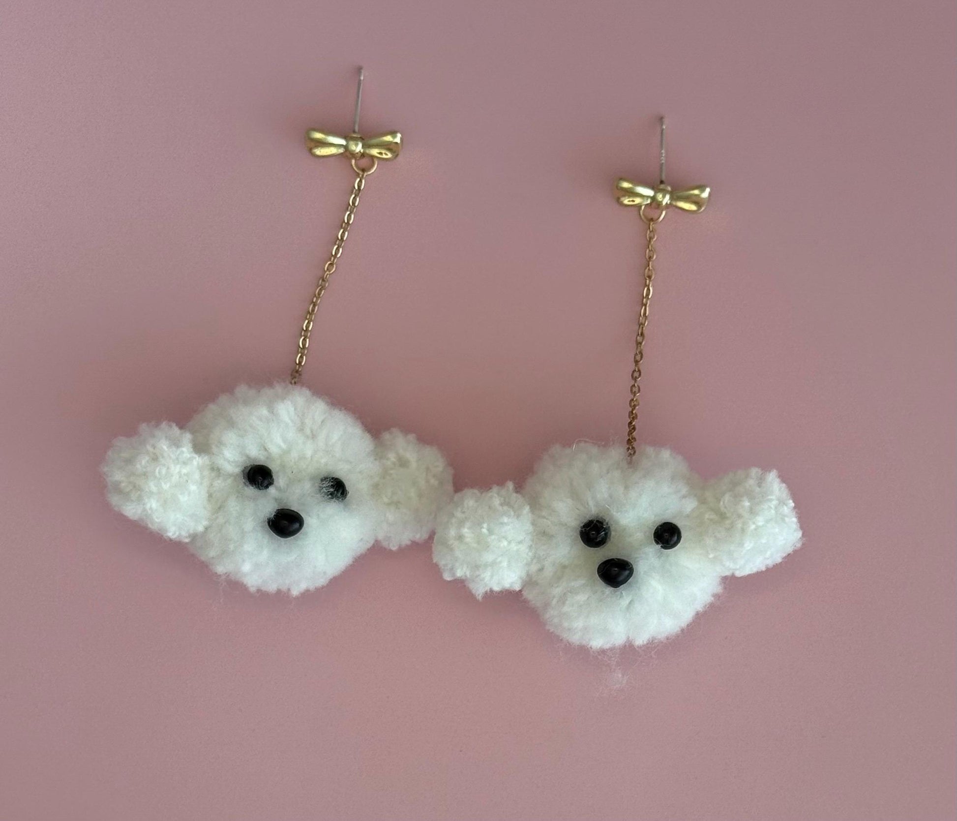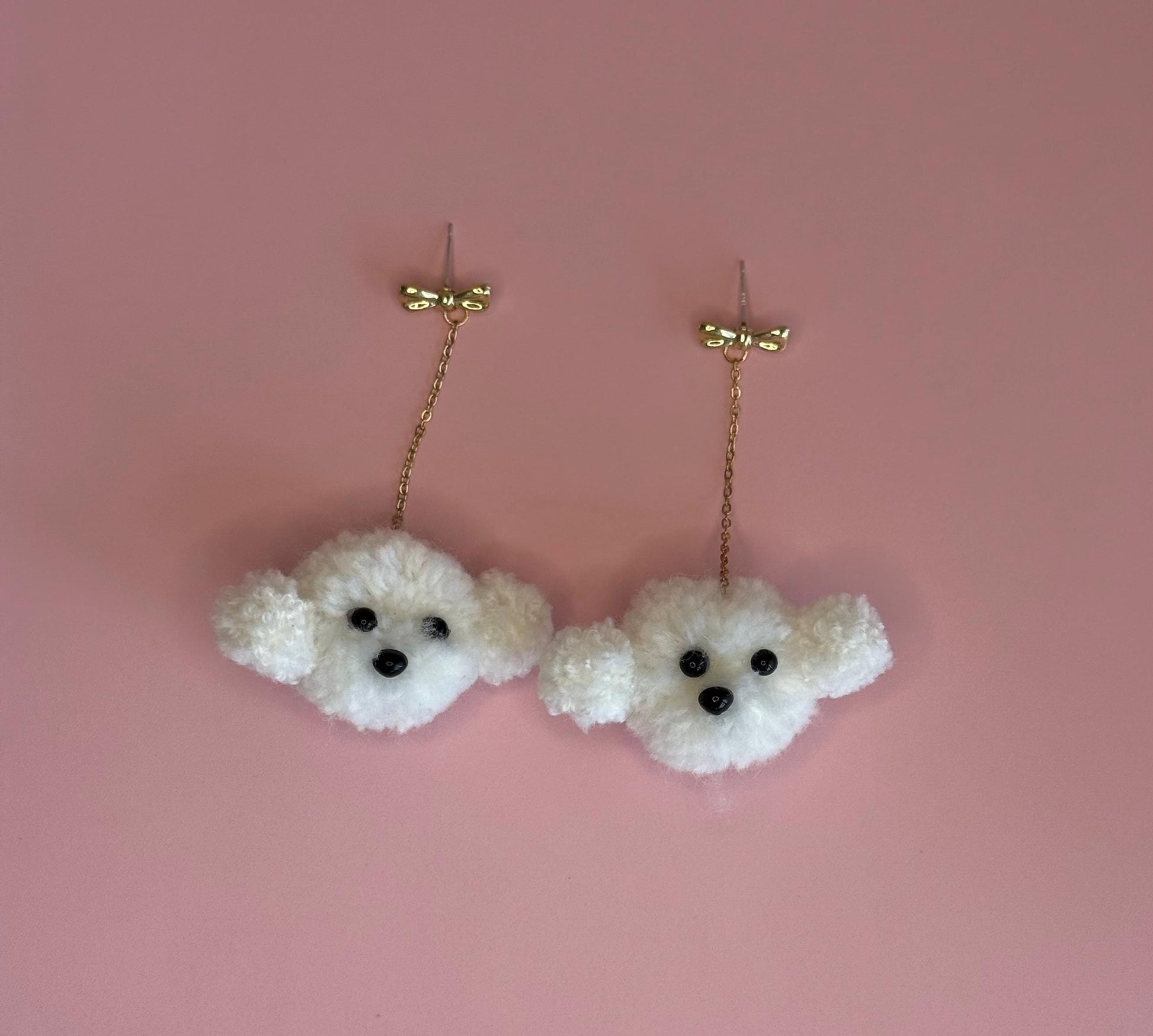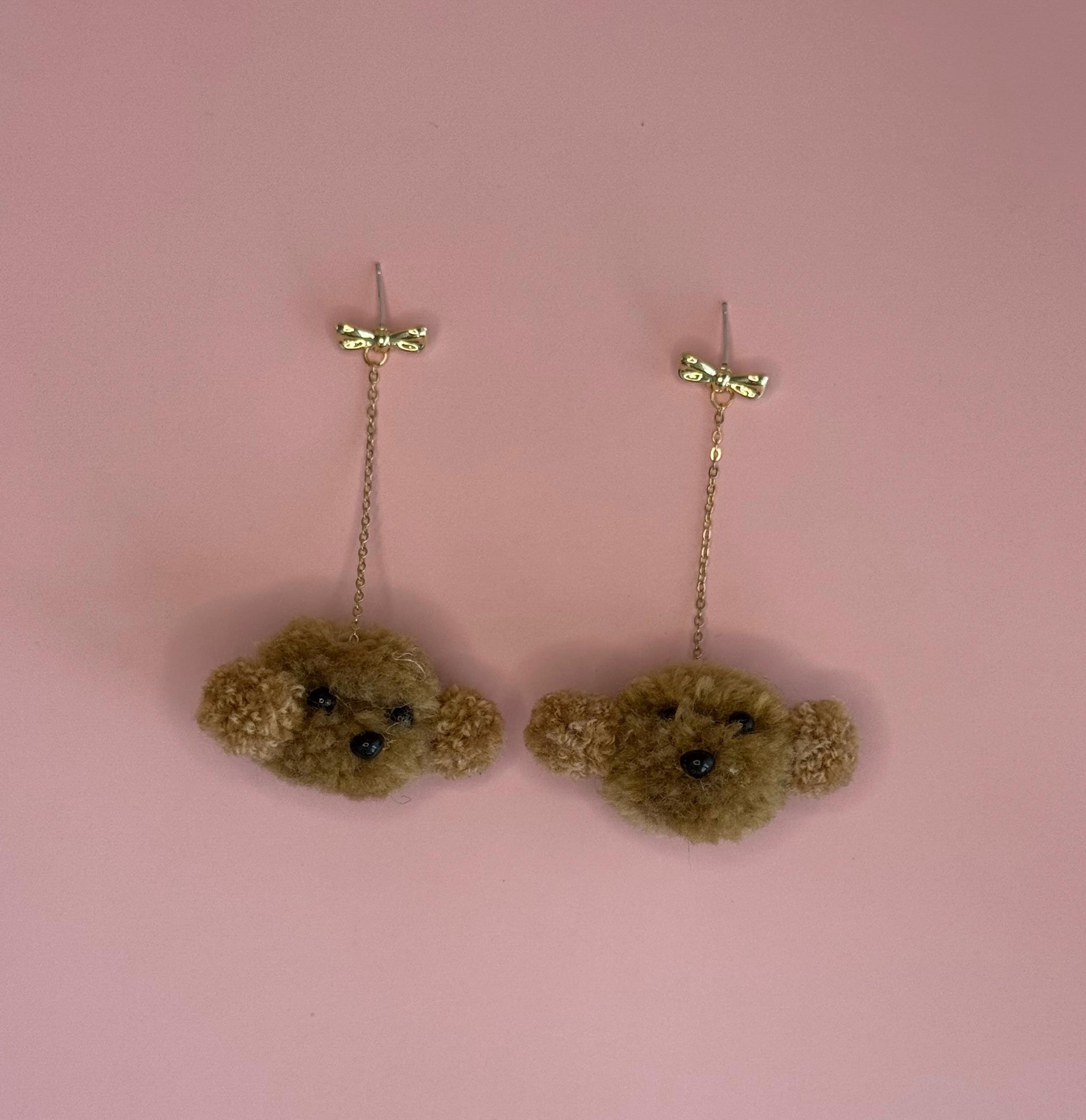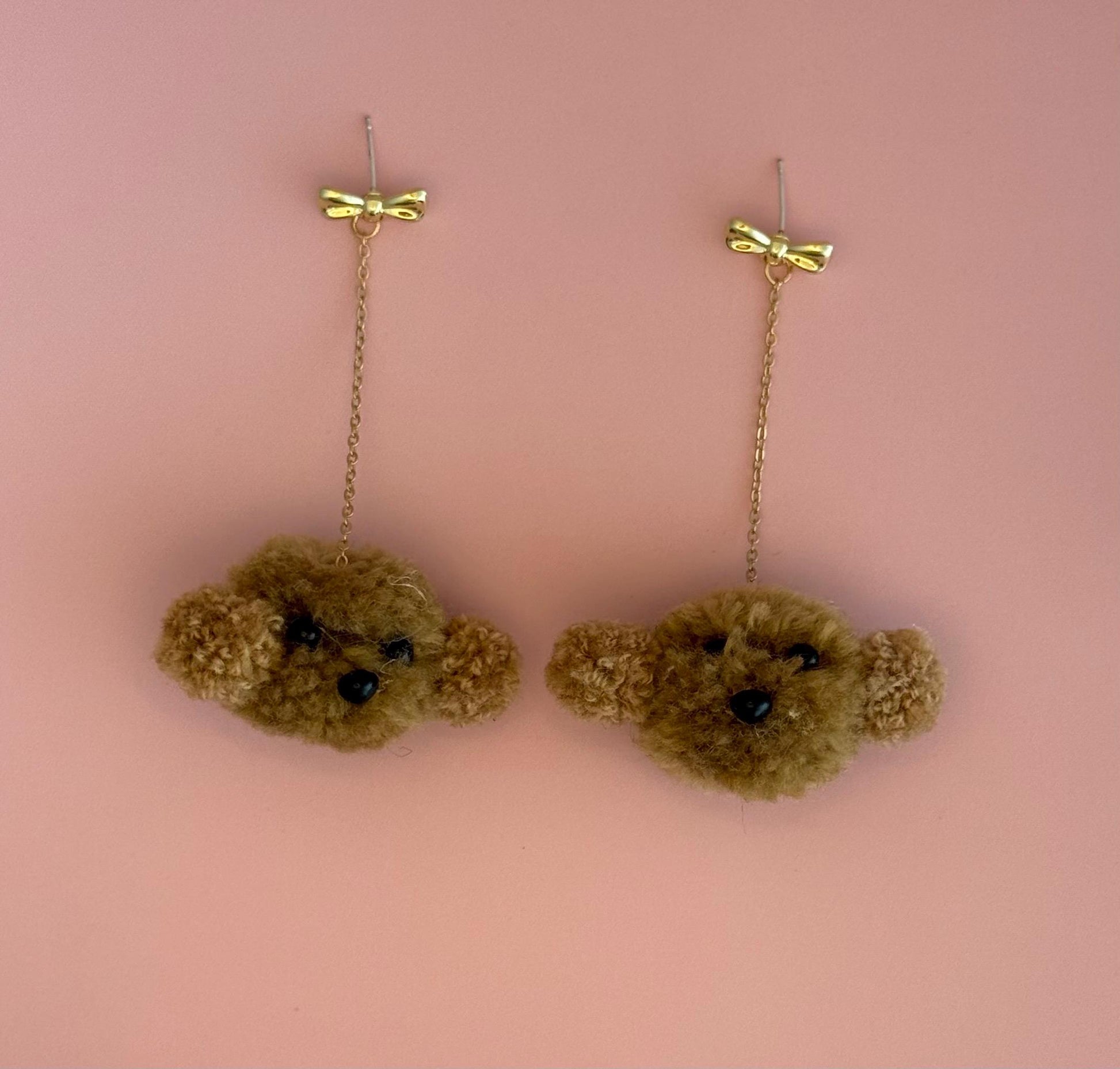 Dog Earrings Goldendoodle Dog Mom Cute Plush Dog Doodle Owner Gift Poodle Lover Fun Earring Novelty Earring Crazy Earring Bowknot Pendant