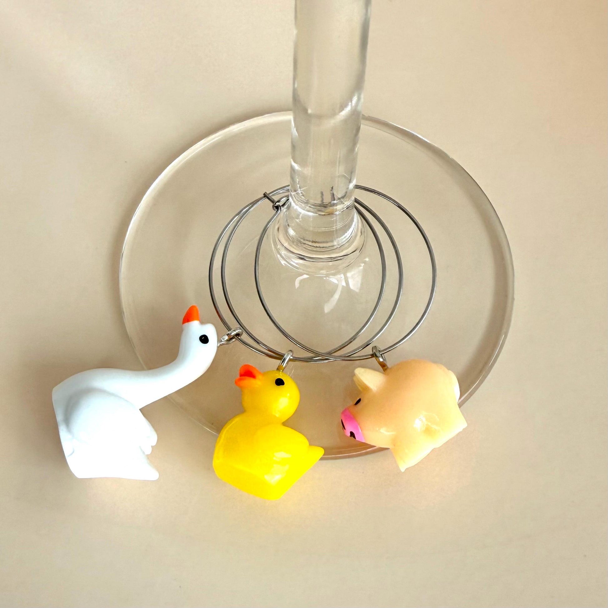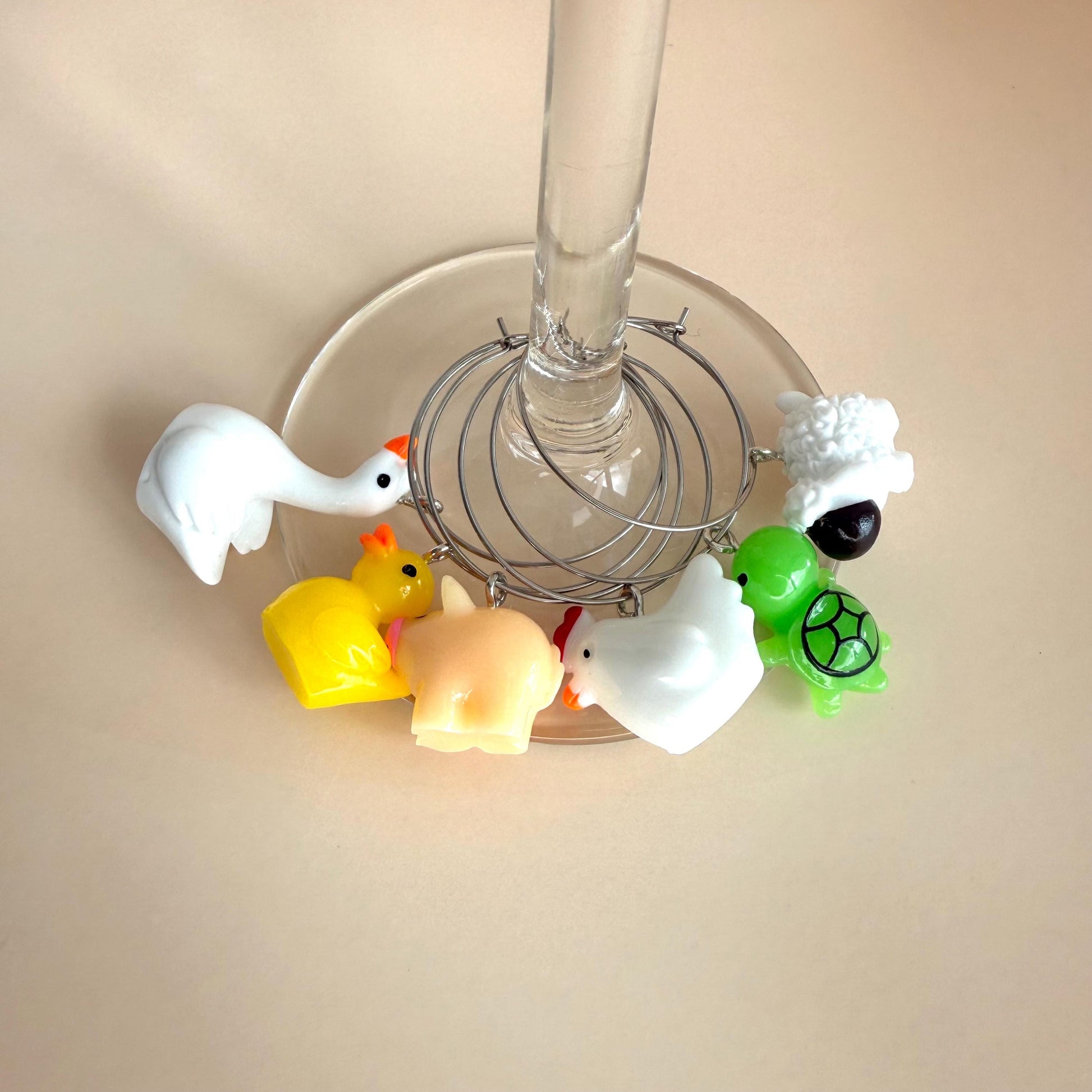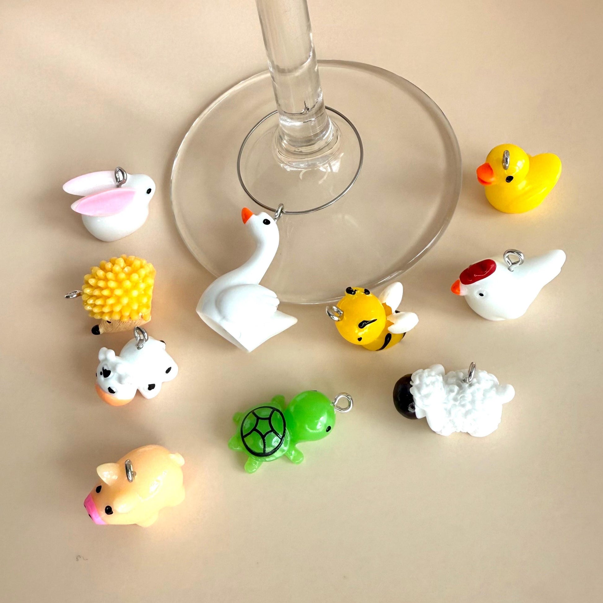 Farm Animals Wine Charms Cute Animals Wine Glass Markers Farm House Duck Cute Drink Marker Wine Glass Charms Glass Decor Custom Wine Charms