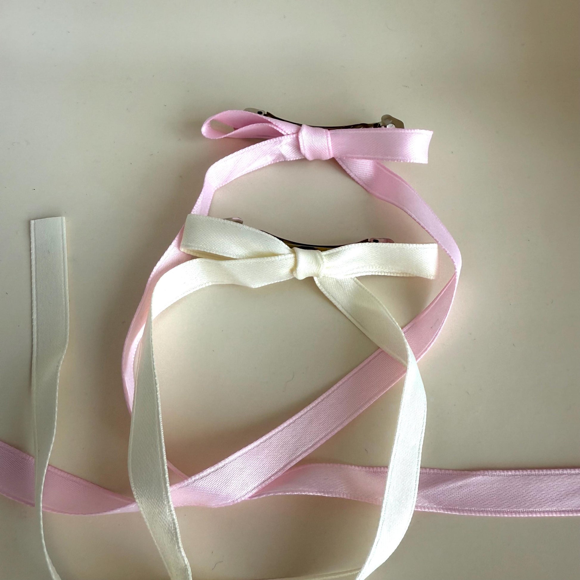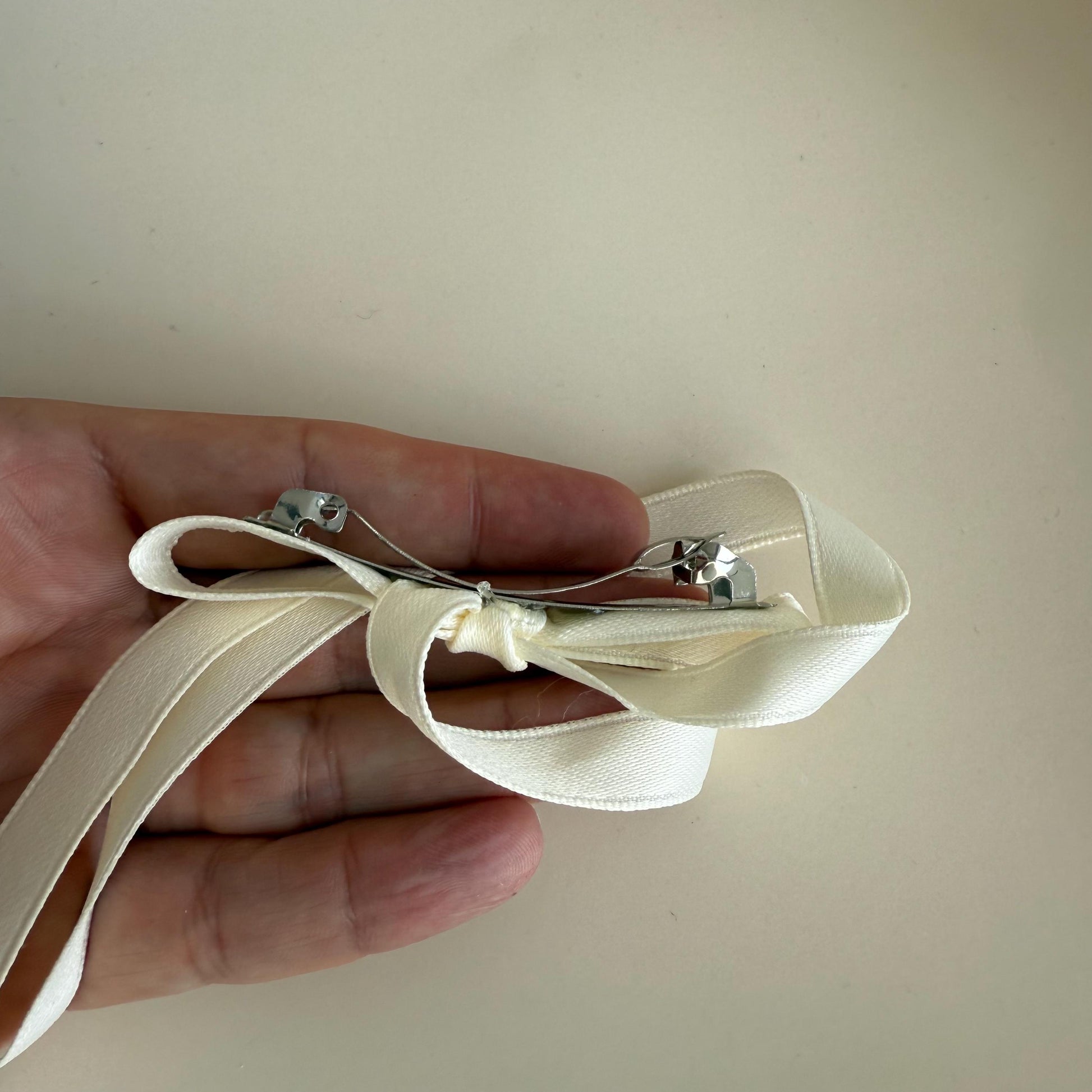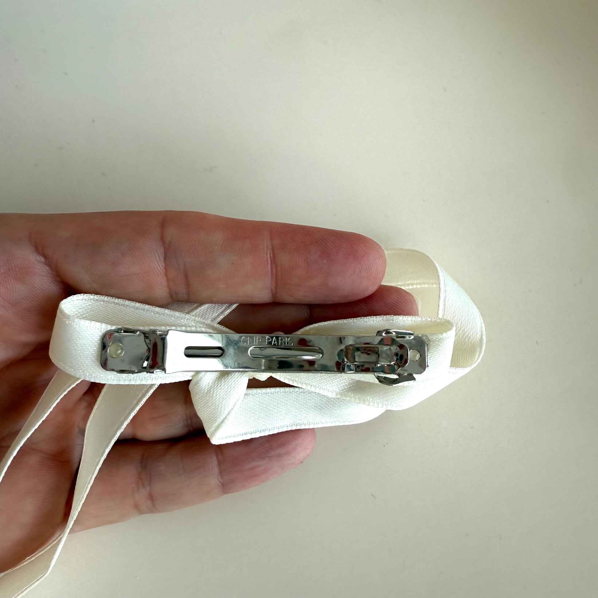French Lace Bow Hairpin Ivory Bow Coquette Bow Off White Ribbon Hair Accessory Milky White Bow Flowing Headdress Braided Double Hair Clips