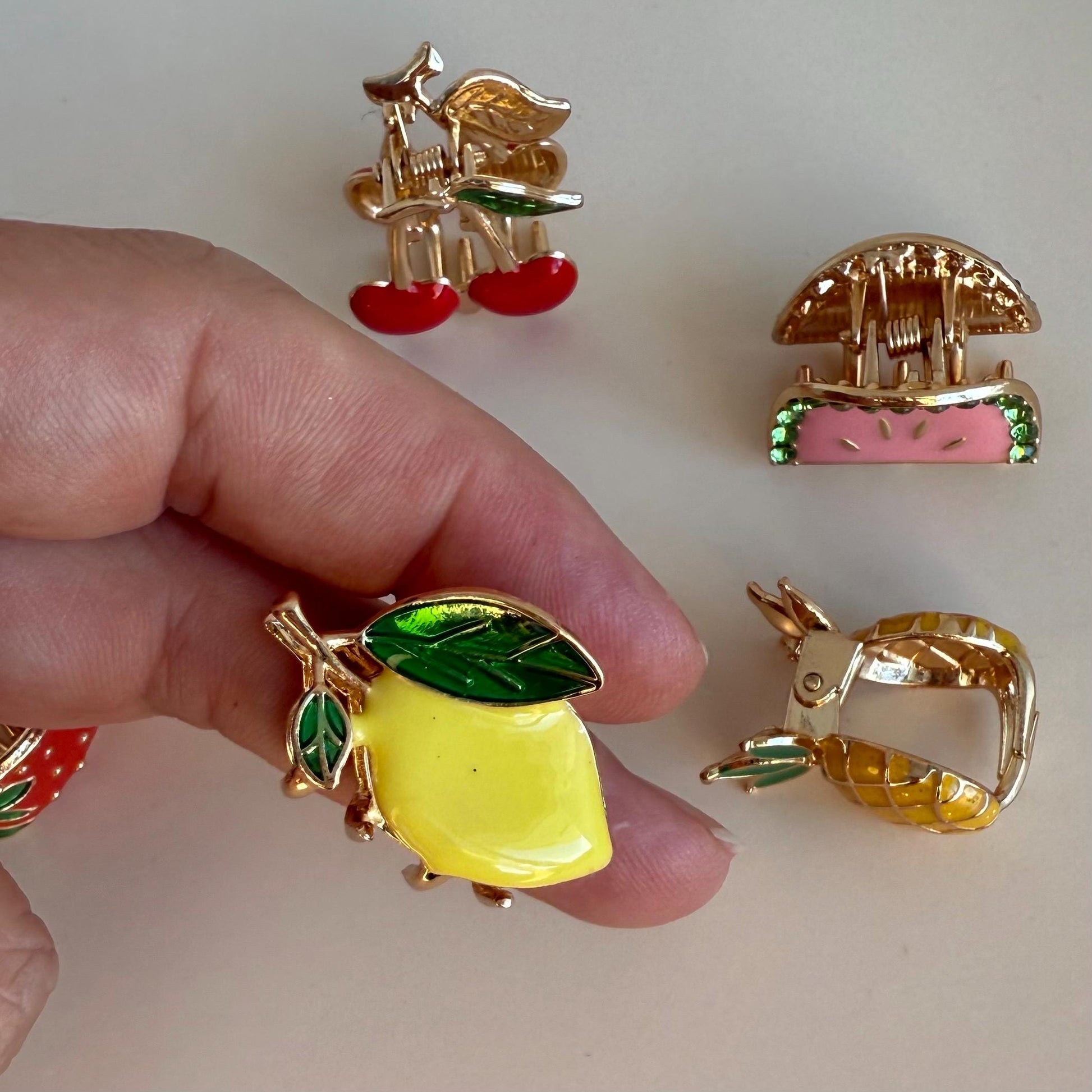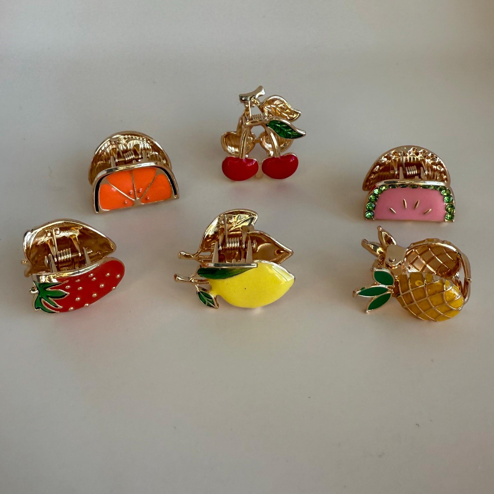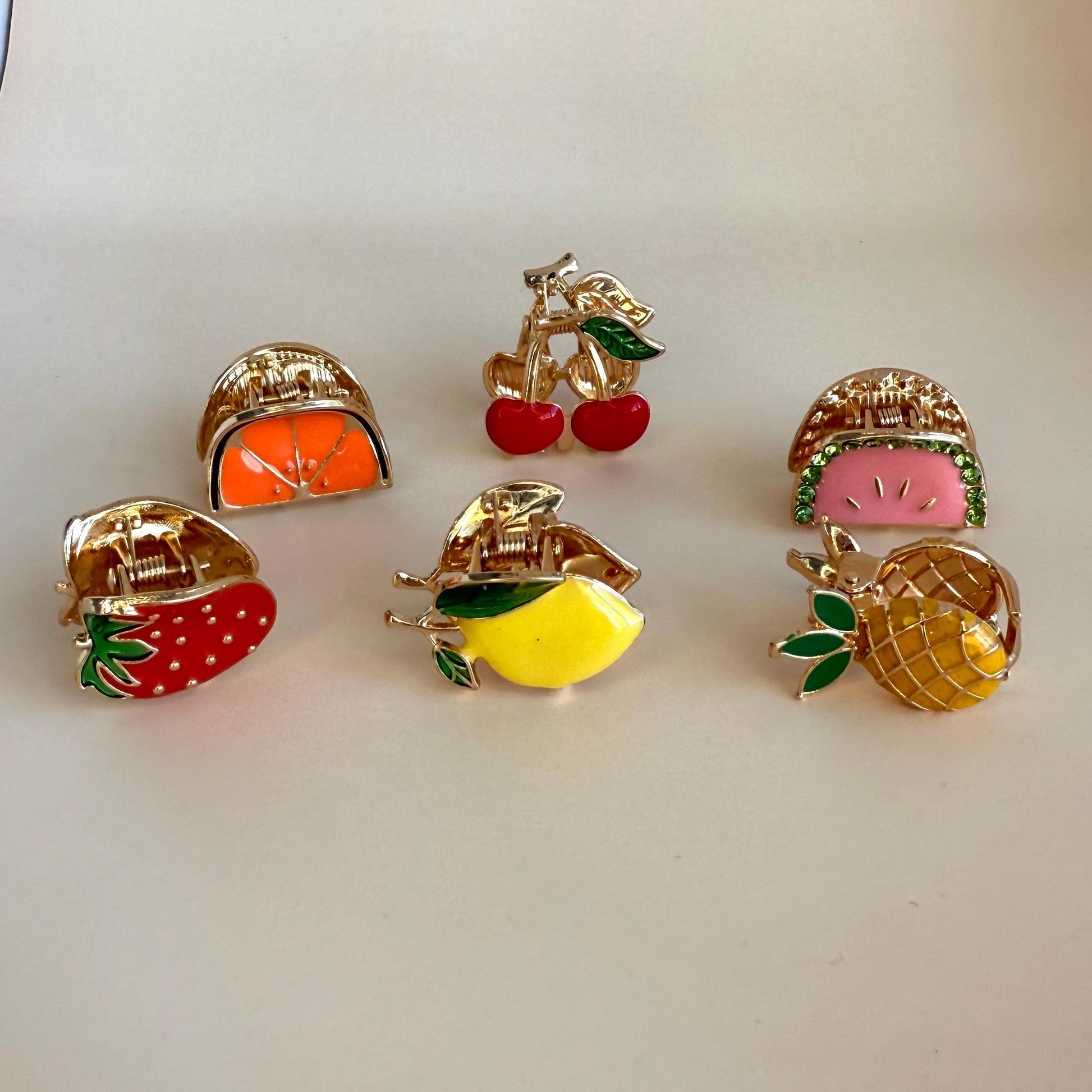 Fruits Hair Clips Fruity Gift Fruit Headwear Lemon Theme Gift Strawberry Lovers Lime Lovers Pineapple Hair Clip Watermelon Hair Clip Gold