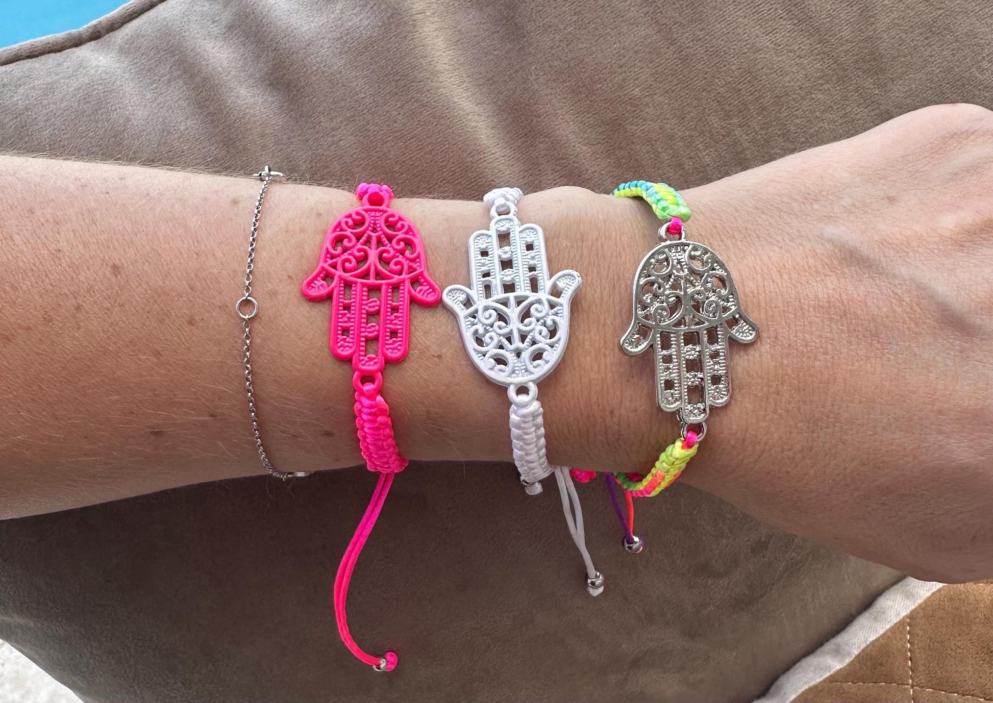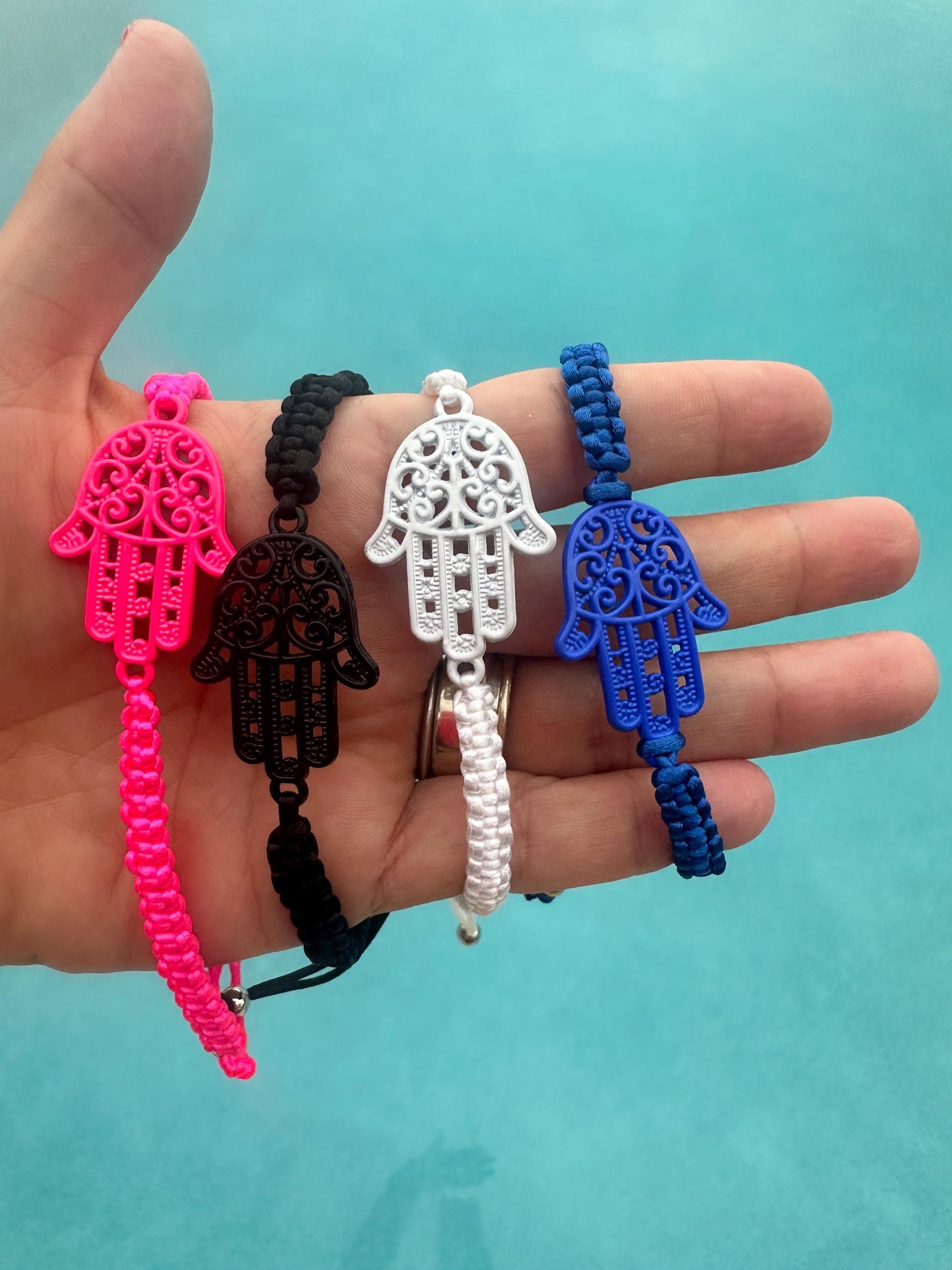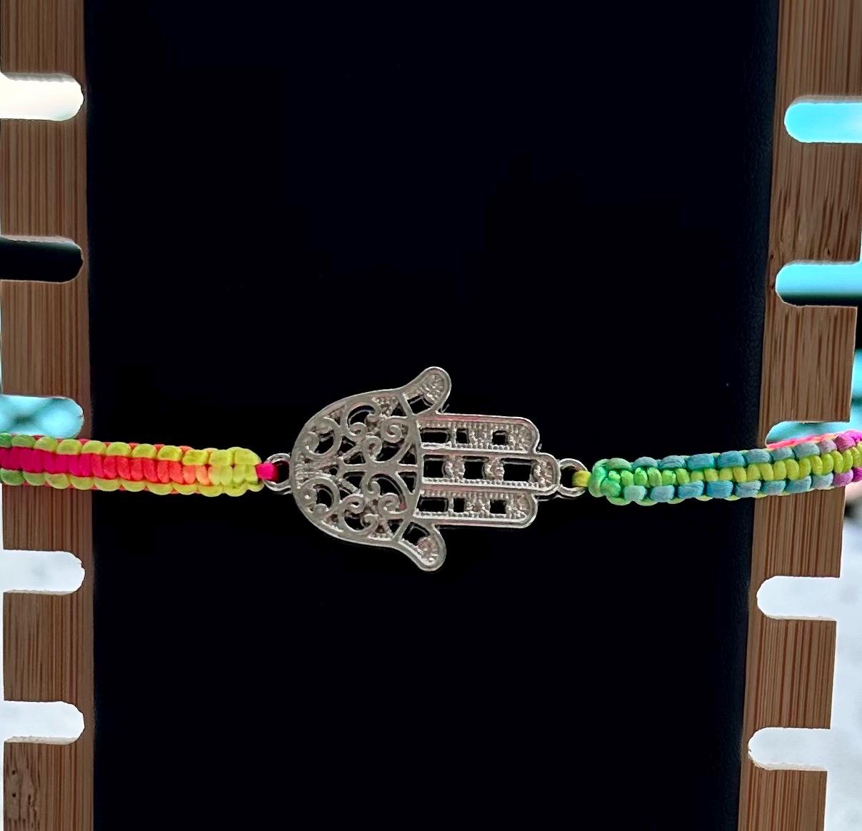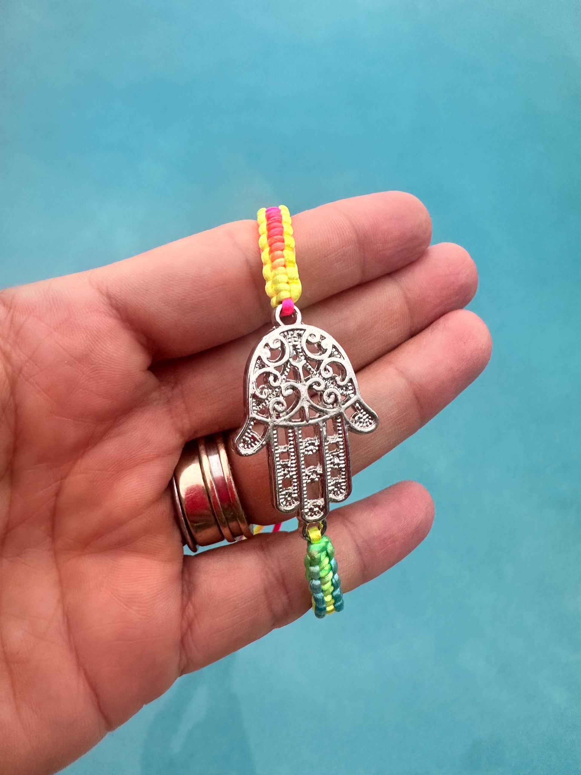 Boho Vintage Hamsa Bracelet Handwoven Alloy Painted, Polyester Adjustable Cord, Non-Plated. Choose your color! Macrame.