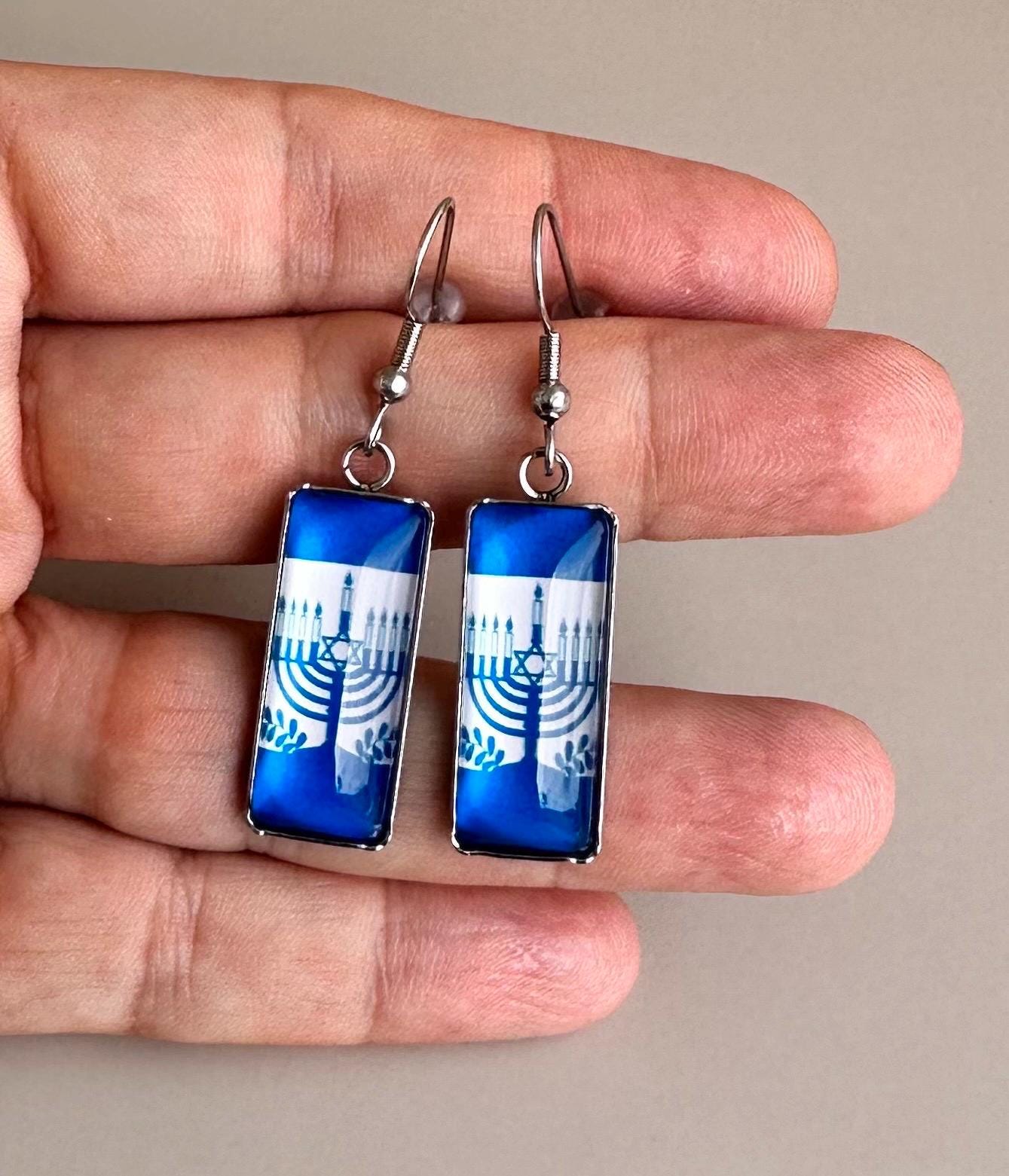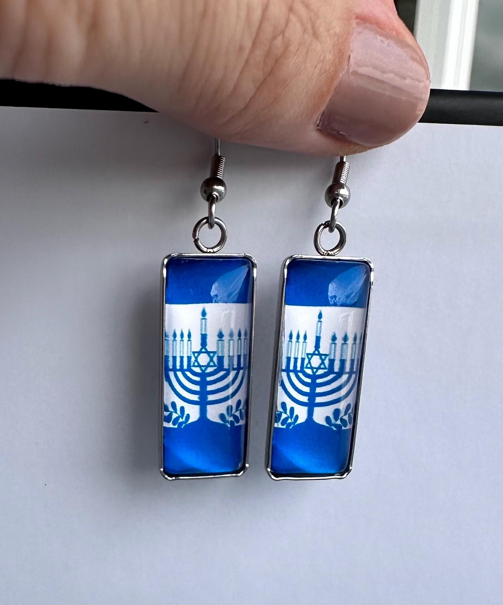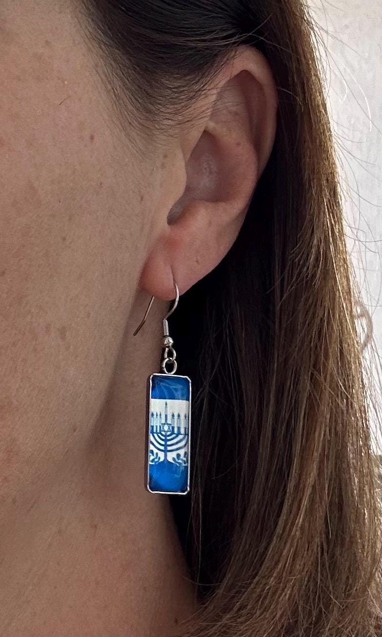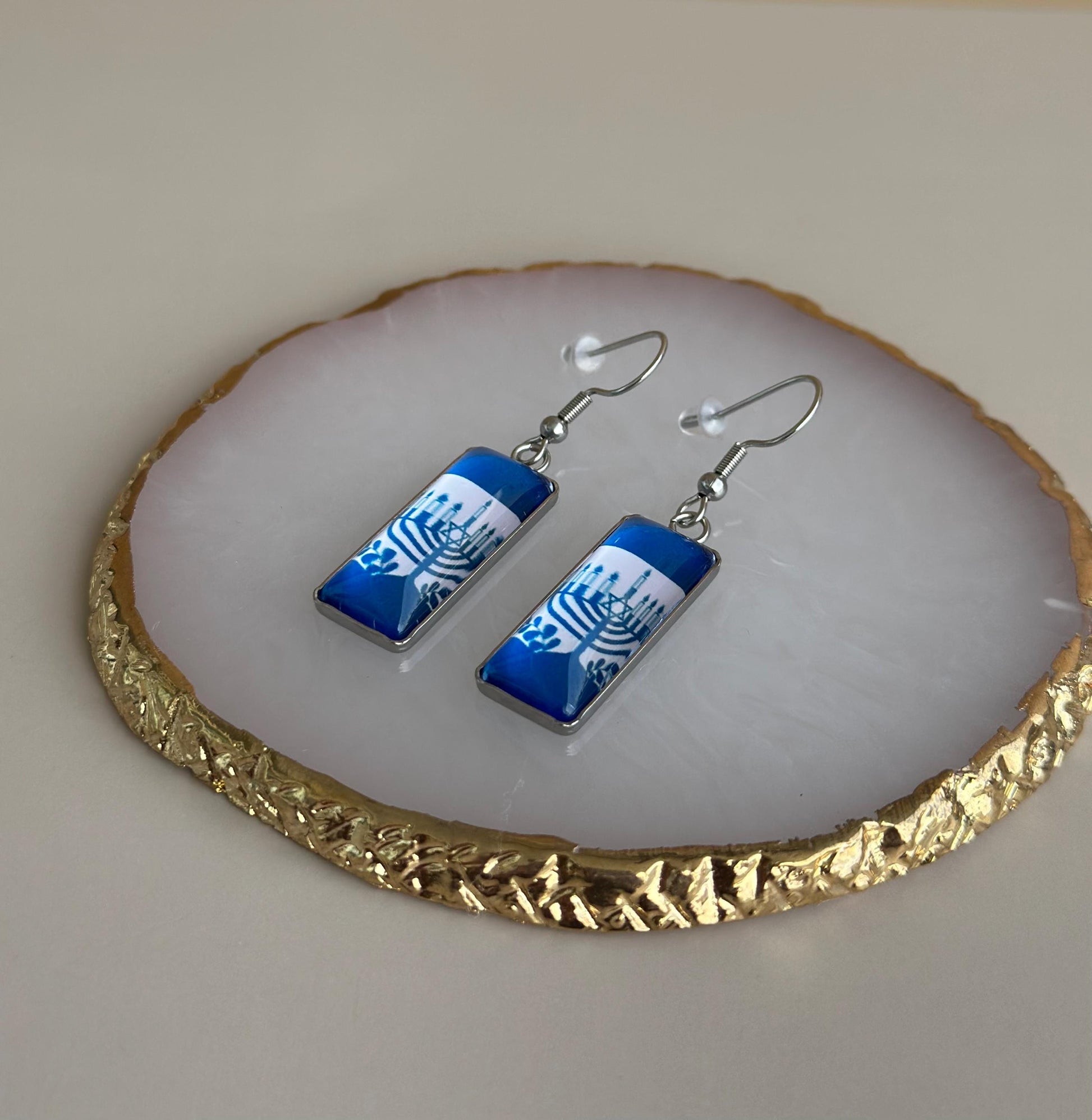 These Menorah earrings are a stunning piece of Jewish jewelry, featuring golden and silver colors and handcrafted with care. Perfect as a Bat Mitzvah gift or a thoughtful present for girlfriends, daughters, or teachers, these earrings serve as both a beautiful accessory and a meaningful expression of faith and cultural identity.