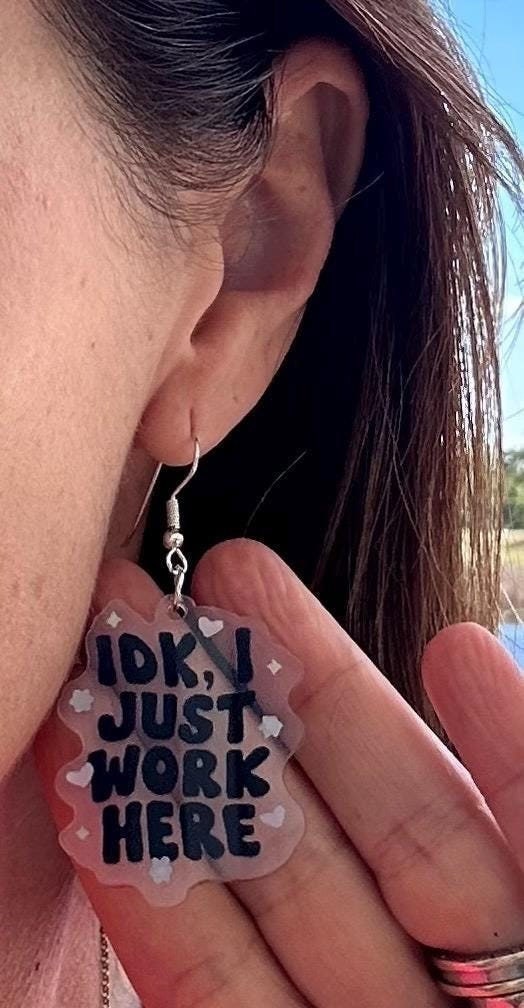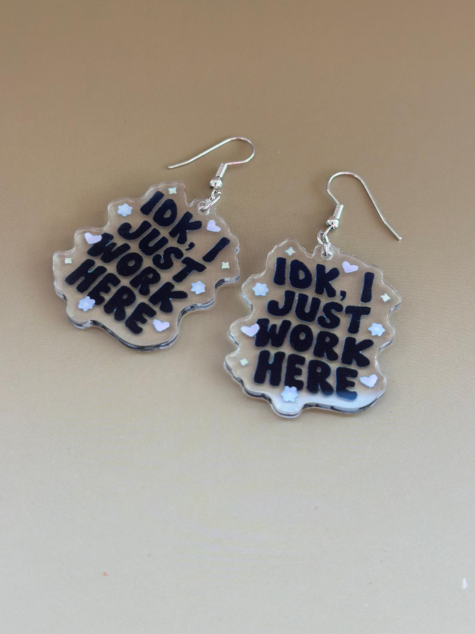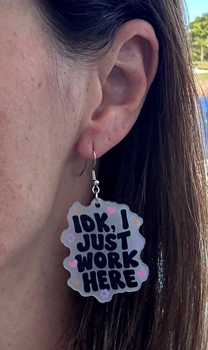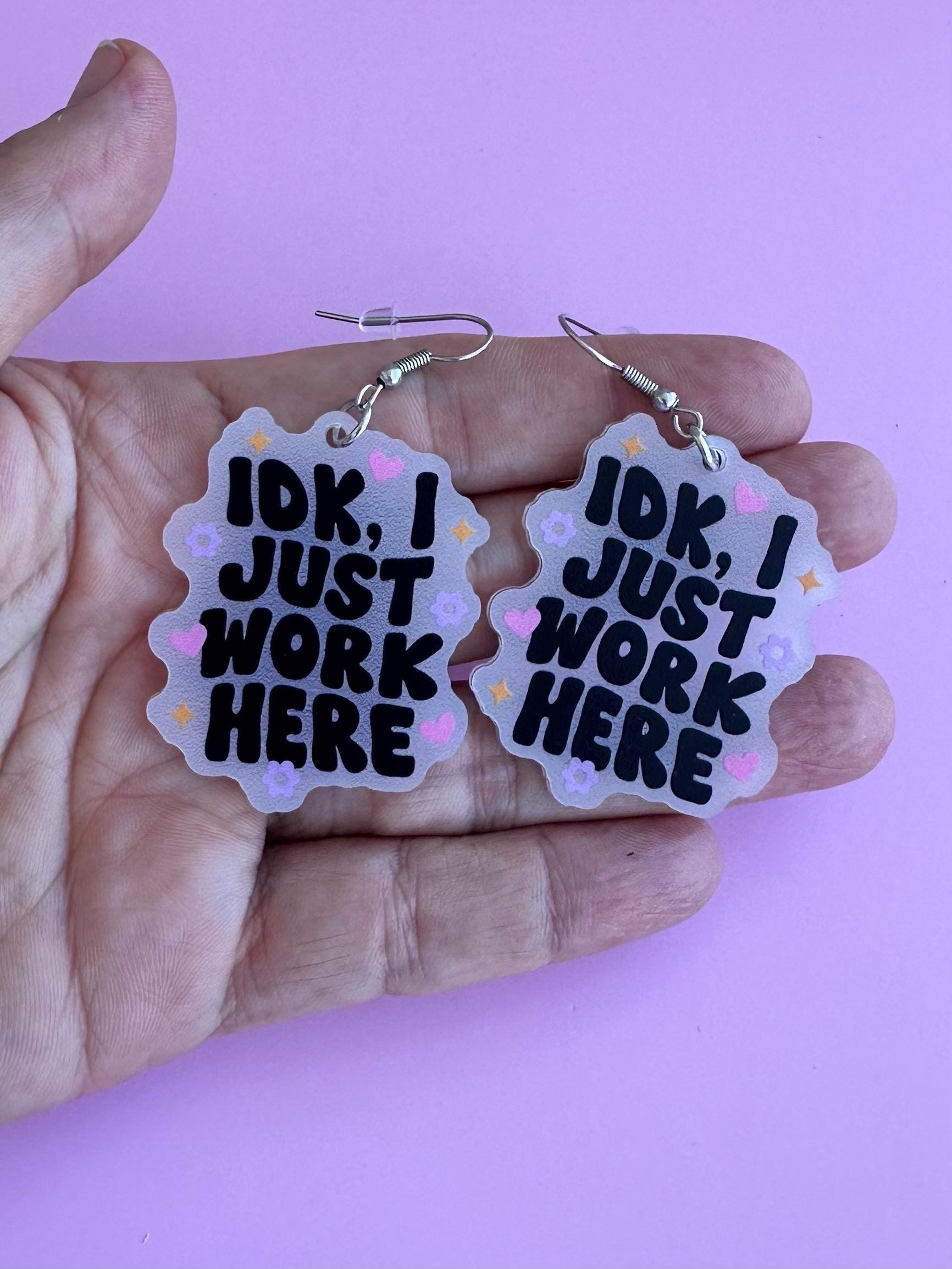 IDK I just Work Here Earring Fun Earring Novelty Earring Funny Office Earring I Dont Know Jewelry Coworker Gift Office Day Earring Sarcastic