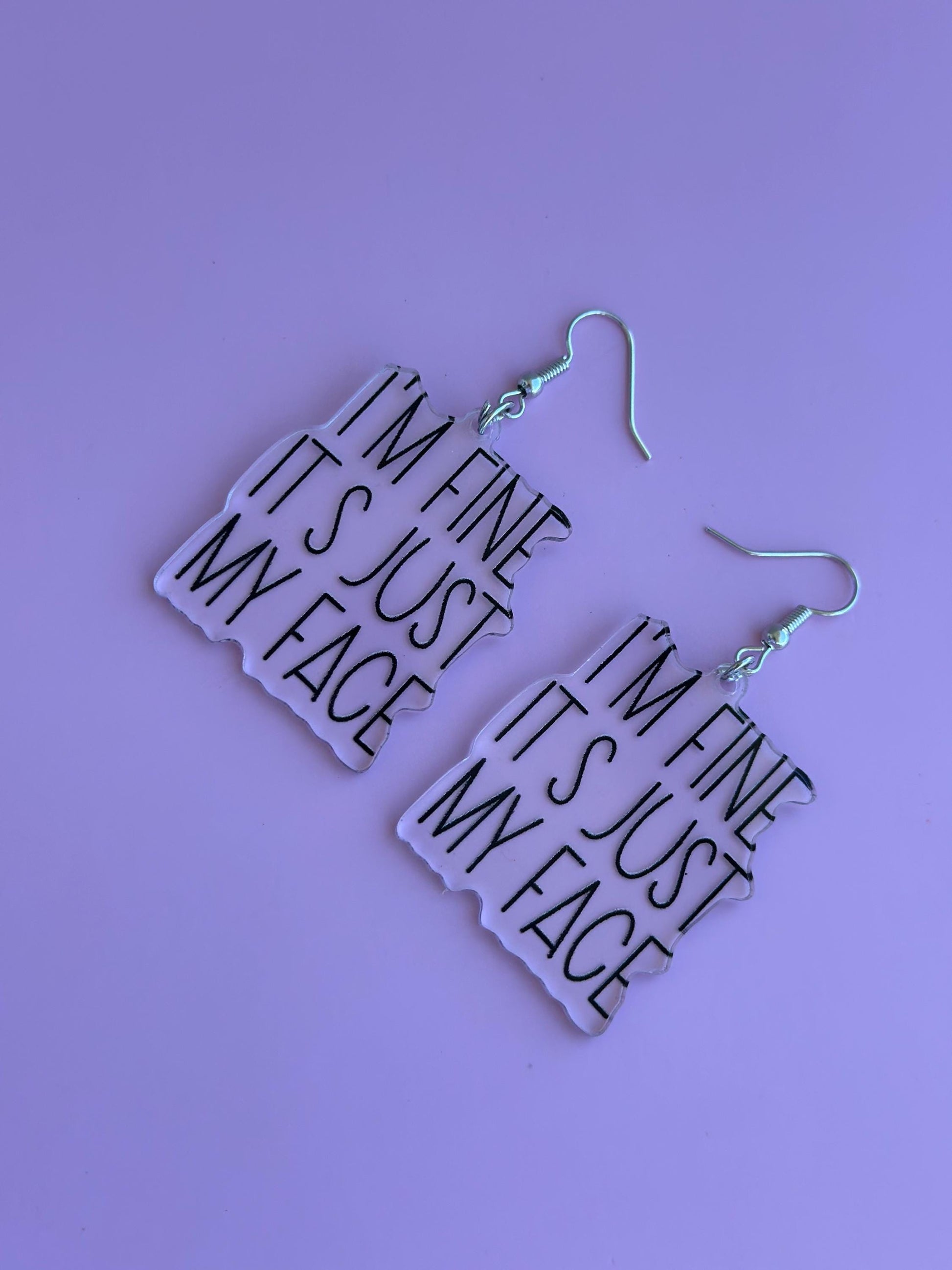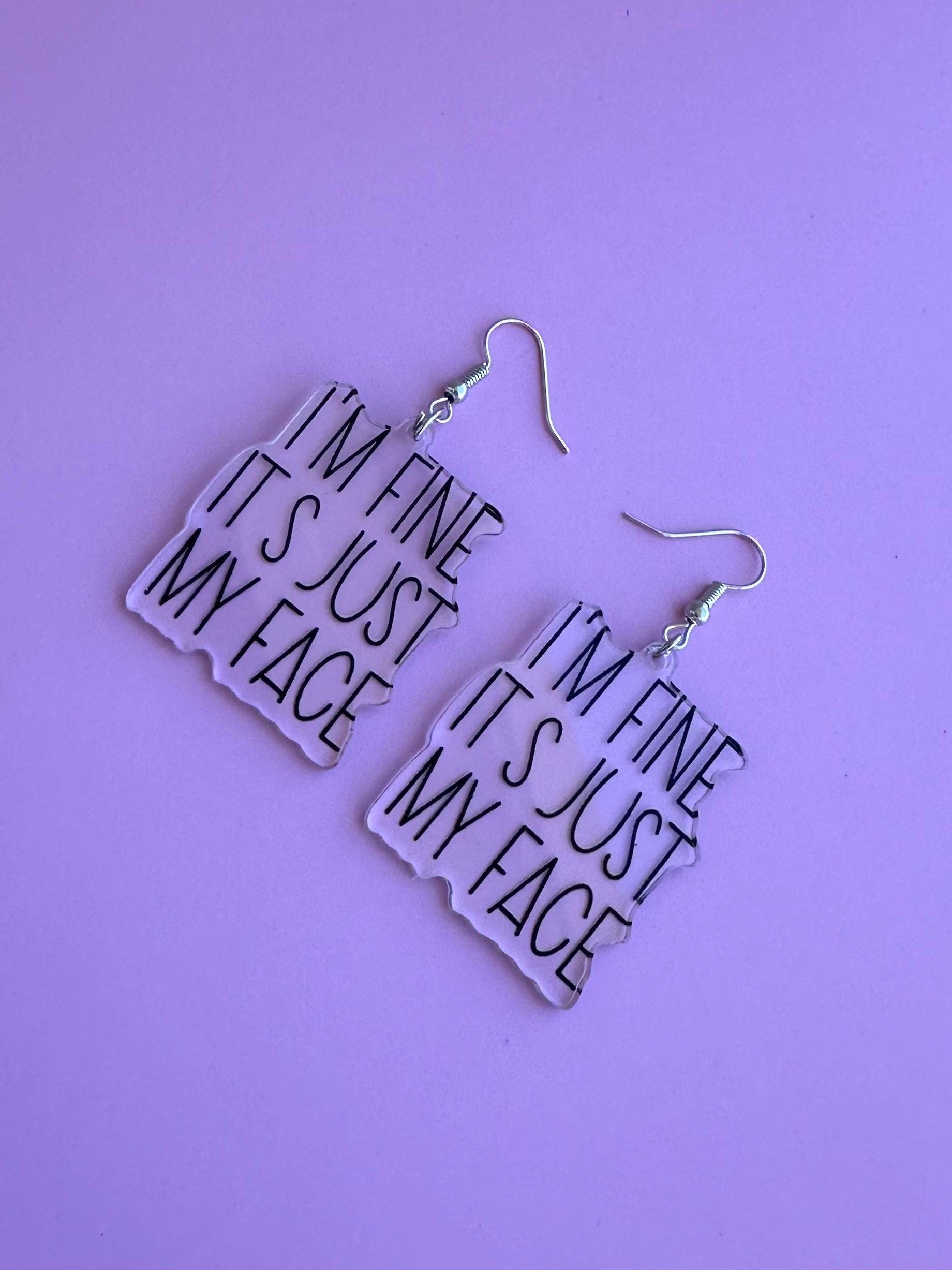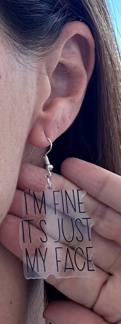 I'm Fine Its Just My Face Earrings Fun Earring Novelty Earring Funny Office Earring Crazy Jewelry Coworker Gift Office Day Earring Sarcastic
