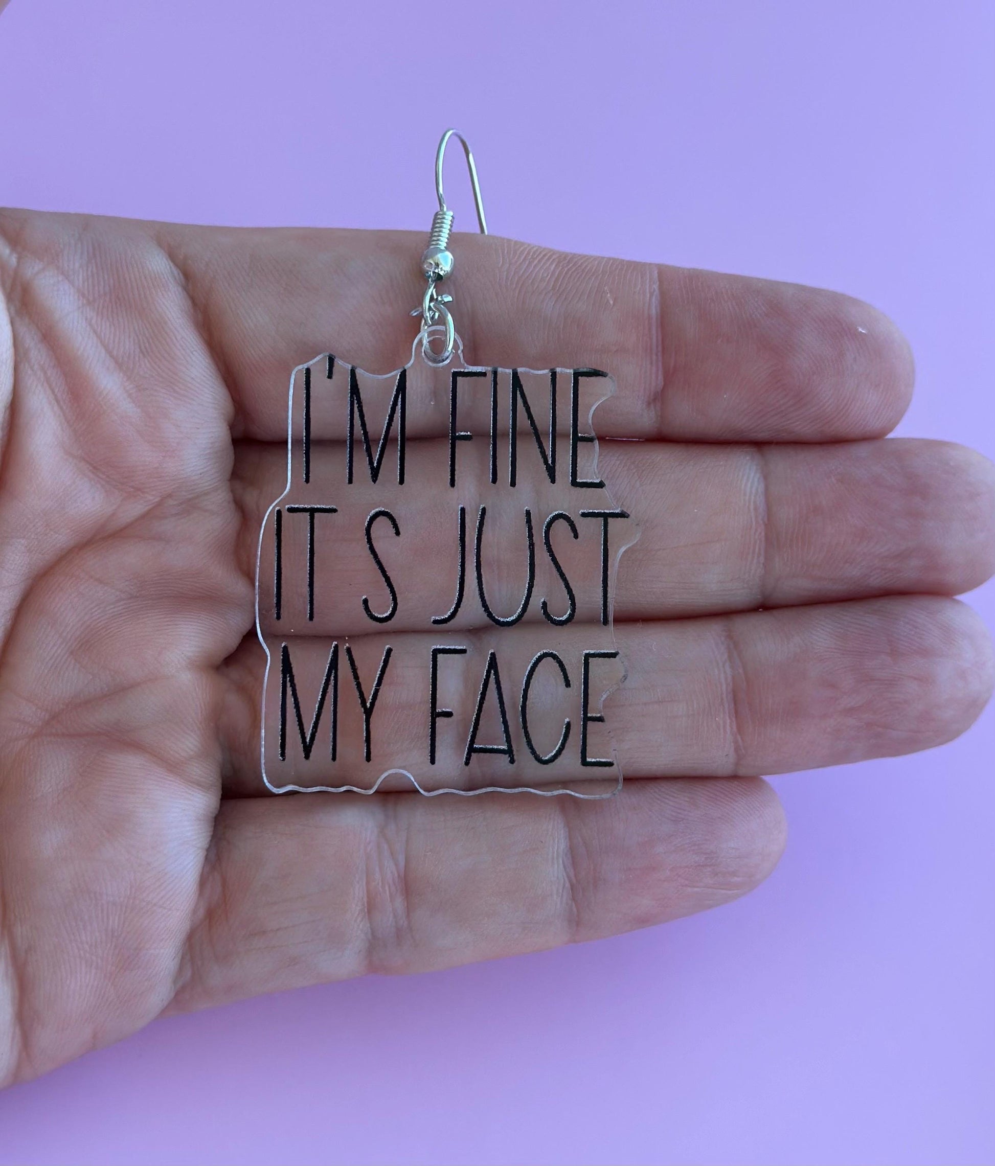 I'm Fine Its Just My Face Earrings Fun Earring Novelty Earring Funny Office Earring Crazy Jewelry Coworker Gift Office Day Earring Sarcastic.
