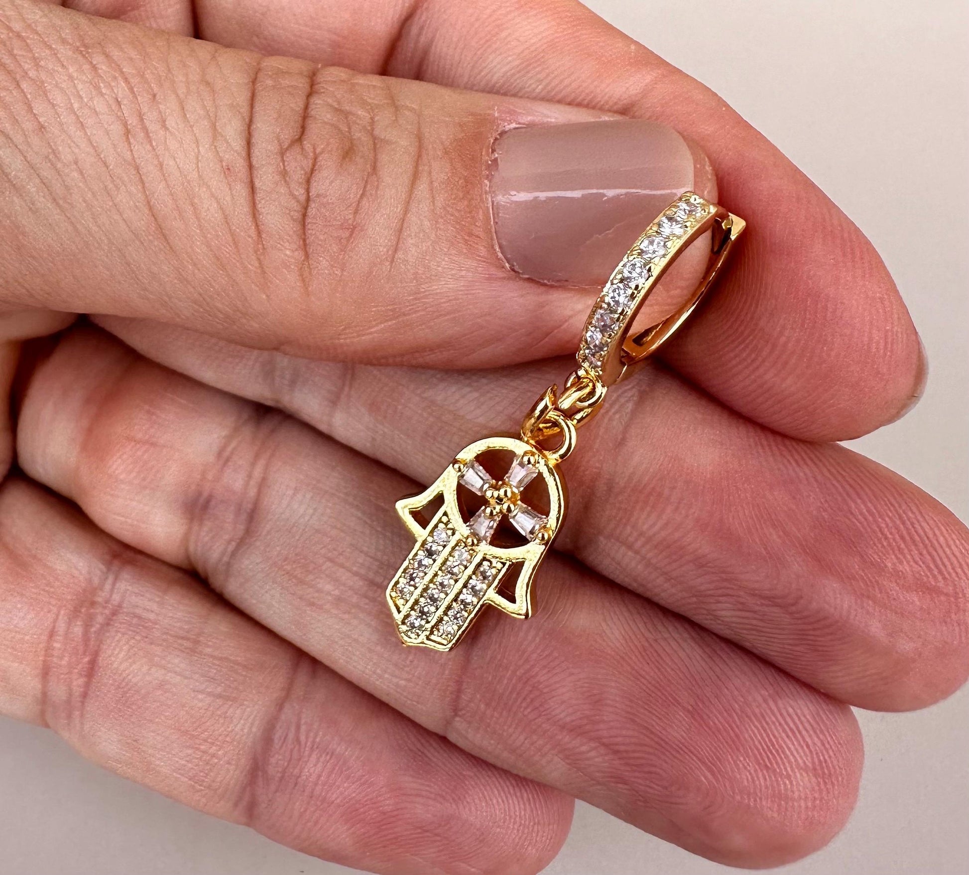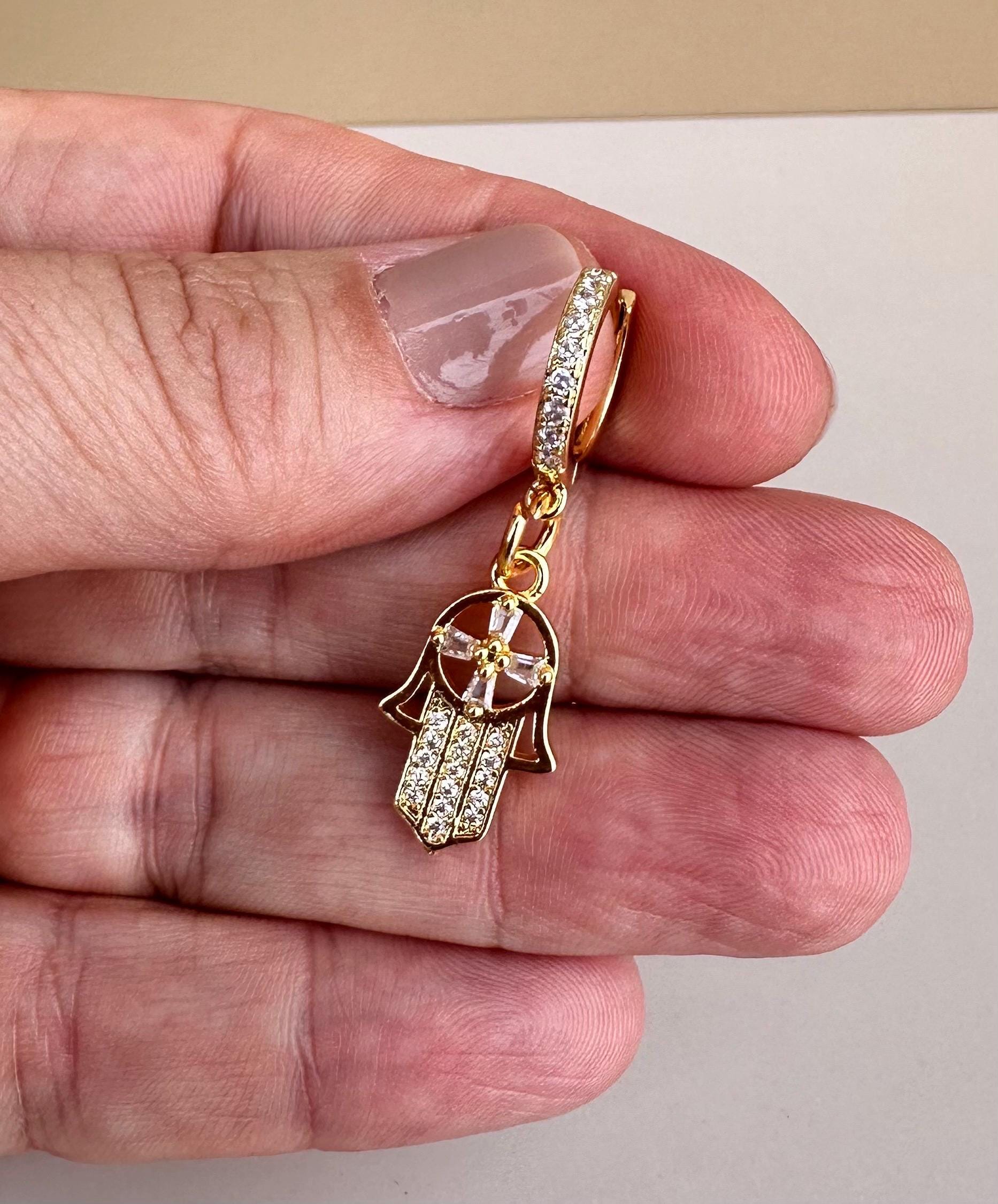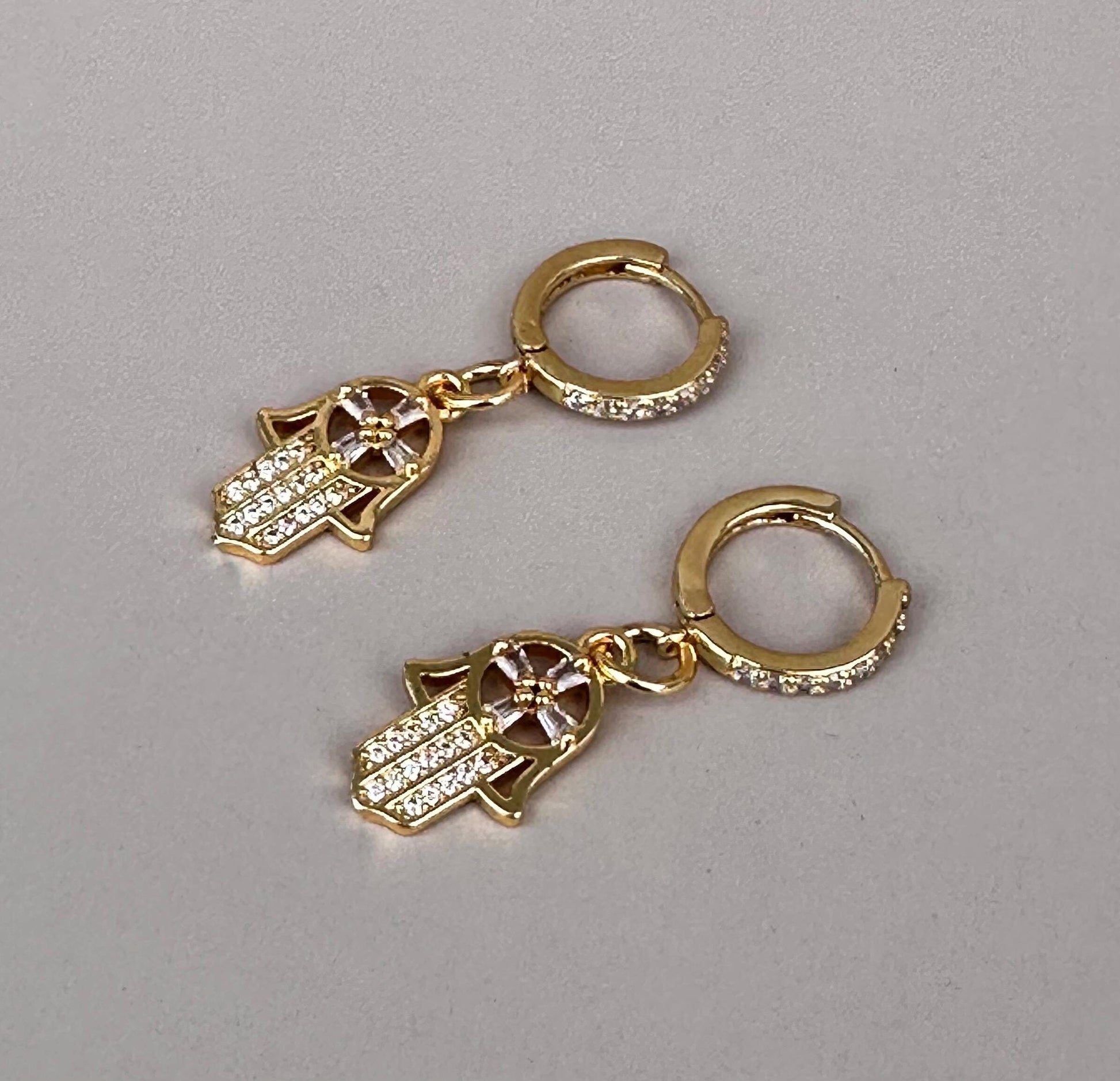 Religious Earrings. Zirconia Hamsa. Jewish Jewelry for Good Luck. Bat Mitzvah Gift. Israel Jewelry. Israel Earrings. Good Luck Jewelry. Jewish Gift.