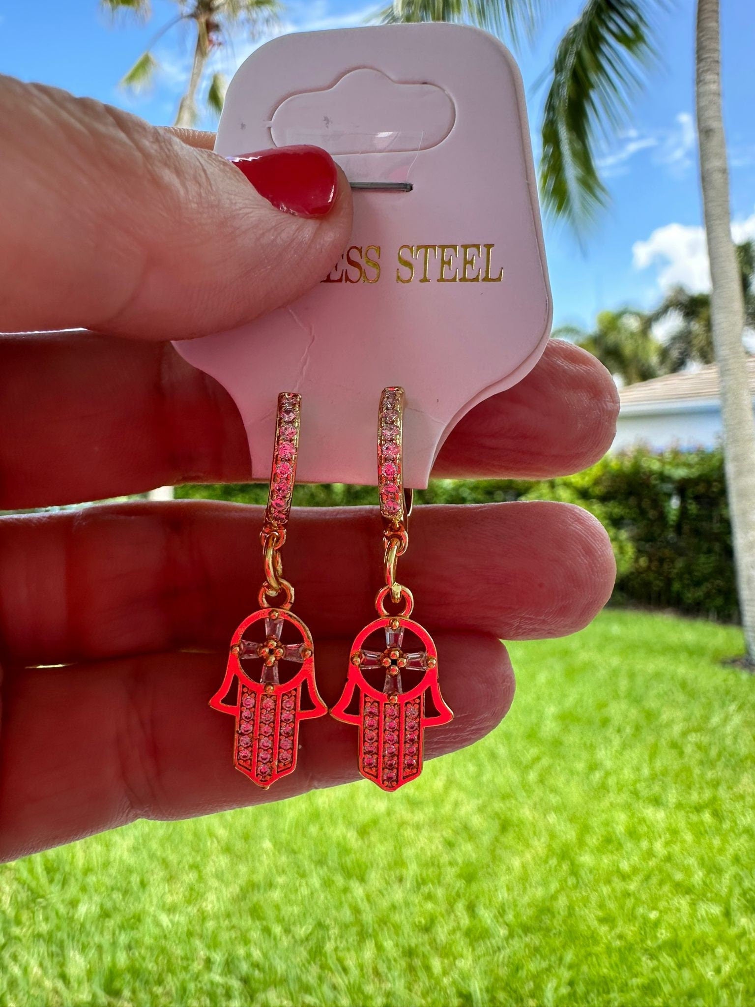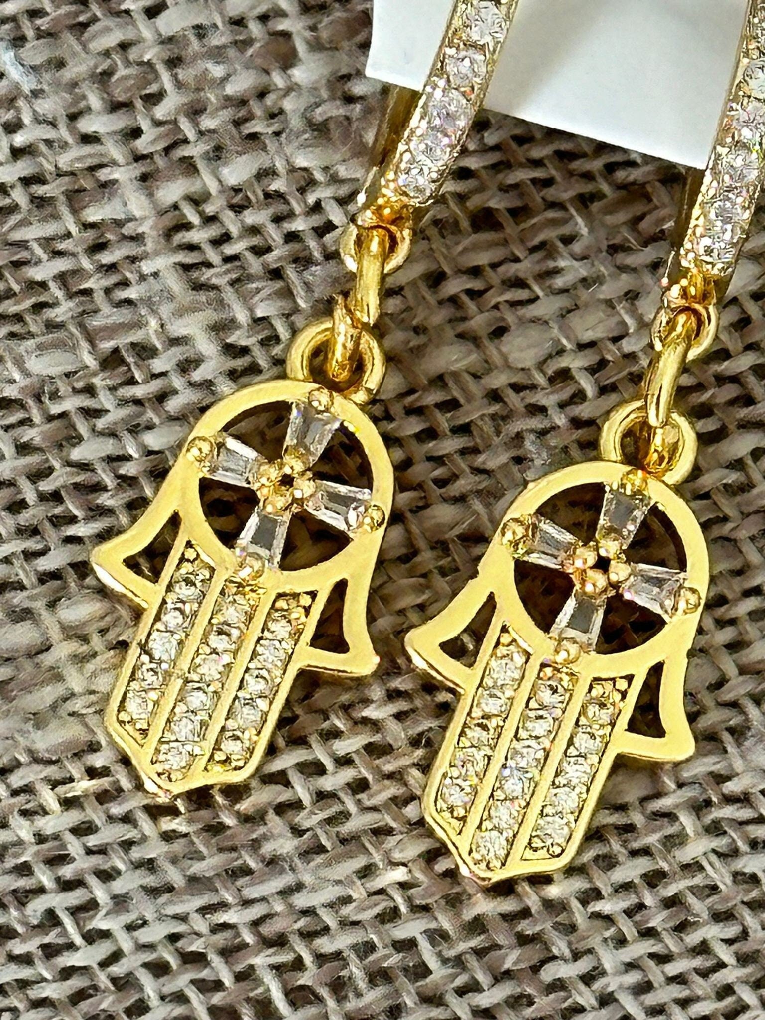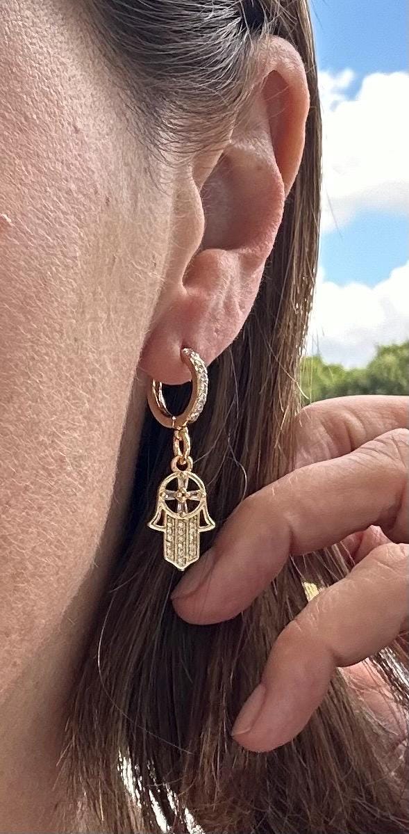 Religious Earrings. Zirconia Hamsa. Jewish Jewelry for Good Luck. Bat Mitzvah Gift. Israel Jewelry. Israel Earrings. Good Luck Jewelry. Jewish Gift.