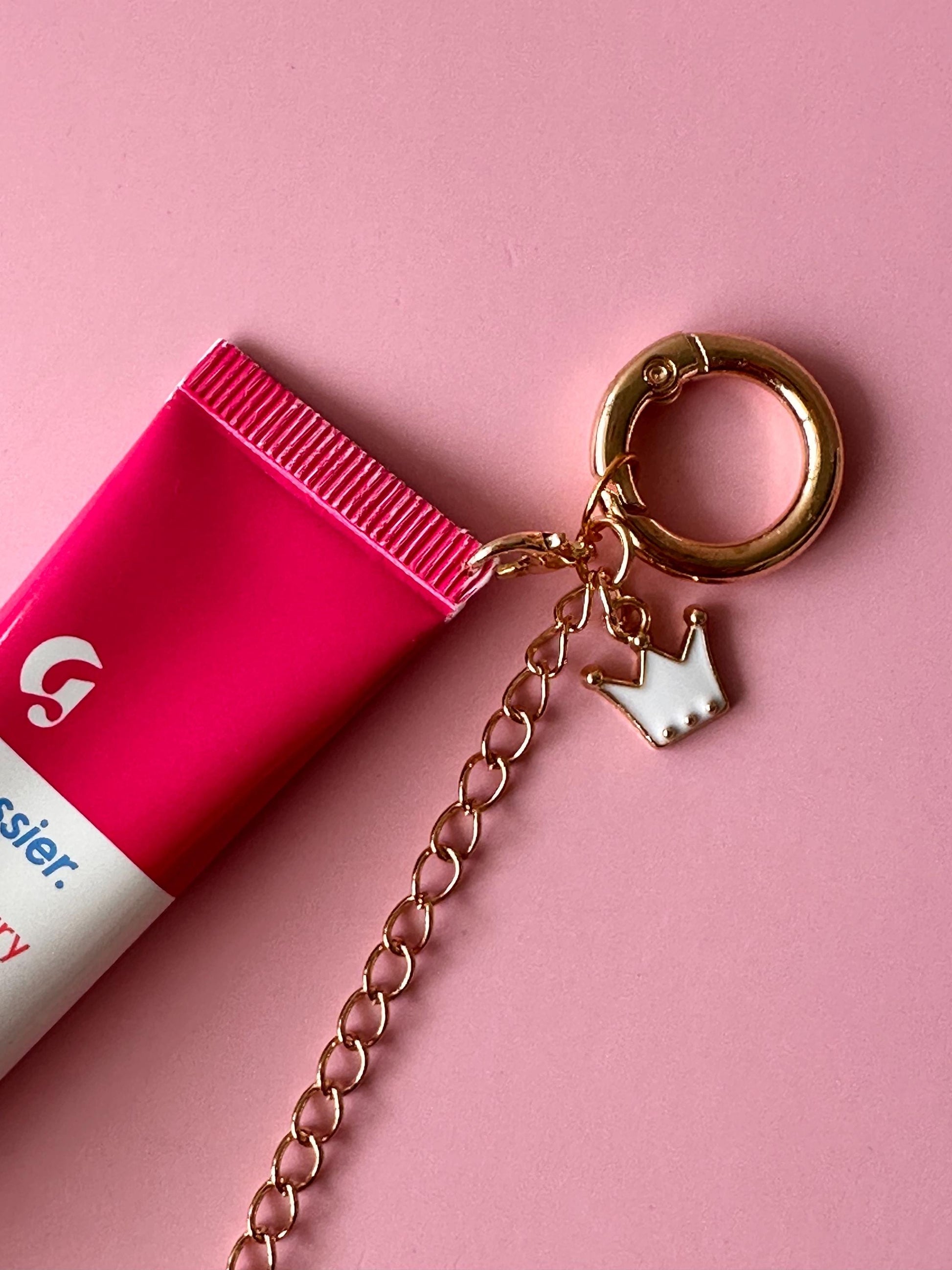 *LIP BALM NOT INCLUDED* Handmade lip balm keychain. Each keychain is a bit different from the other so no keychains are the same. Accessorize your favorite lip balm with the cutest charms! They add a personal style touch while keeping your lip balm handy. Try these trending lip gloss charms. Perfect gift for bridesmaid baskets, gift boxes etc. Put your personality touch onto any keychain. It can clip to anything you desire. Youโll never have to dig in your bag again for your fav gloss. Personalized charm chains, Trendy lip balm charms, handbag charms, keychain charms. This Personalized Charm for Lip Balm Gift is perfect for any teen beauty lover who adores a natural look. Itโs an ideal birthday or bachelorette party favor gift.