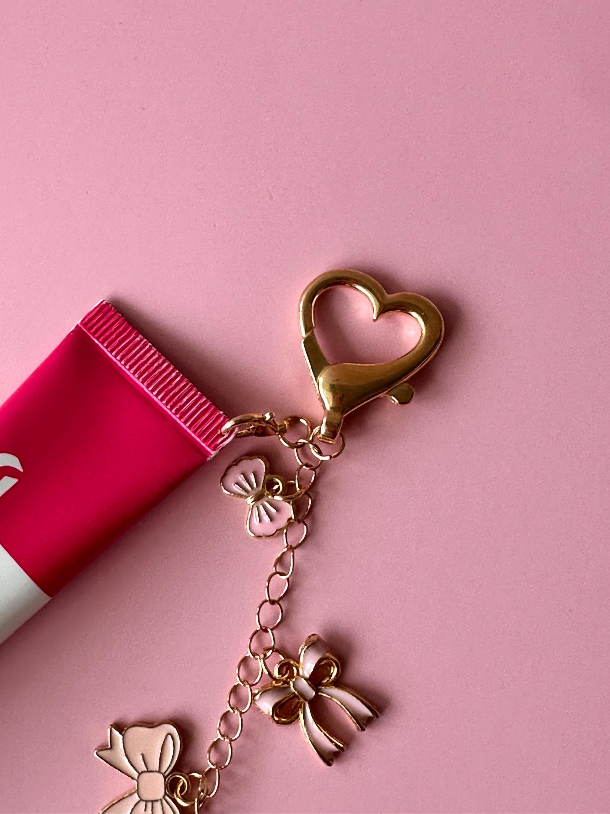 *LIP BALM NOT INCLUDED* Handmade lip balm keychain. Each keychain is a bit different from the other so no keychains are the same. Accessorize your favorite lip balm with the cutest charms! They add a personal style touch while keeping your lip balm handy. Try these trending lip gloss charms. Perfect gift for bridesmaid baskets, gift boxes etc. Put your personality touch onto any keychain. It can clip to anything you desire. Youโll never have to dig in your bag again for your fav gloss. Personalized charm chains, Trendy lip balm charms, handbag charms, keychain charms. This Personalized Charm for Lip Balm Gift is perfect for any teen beauty lover who adores a natural look. Itโs an ideal birthday or bachelorette party favor gift.