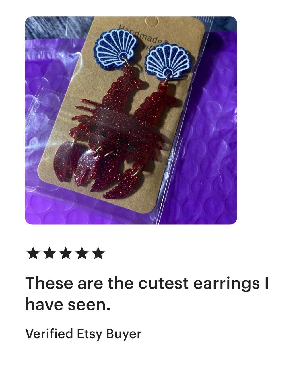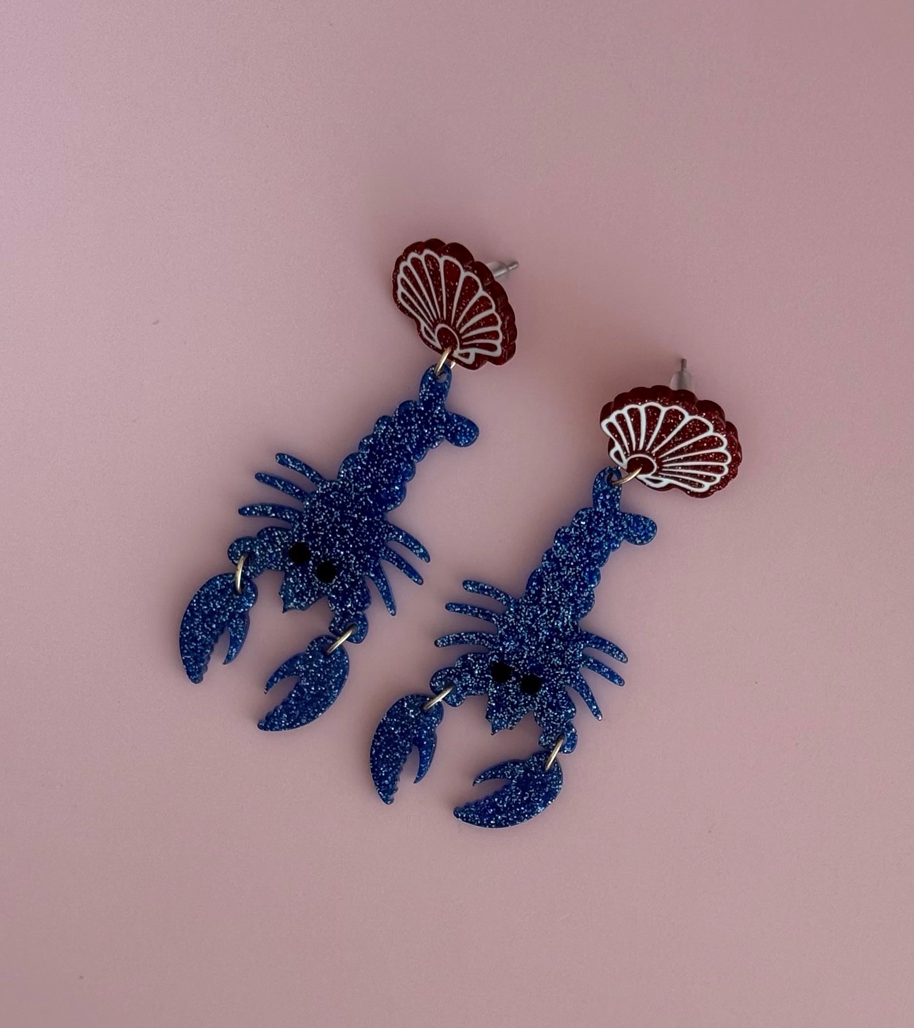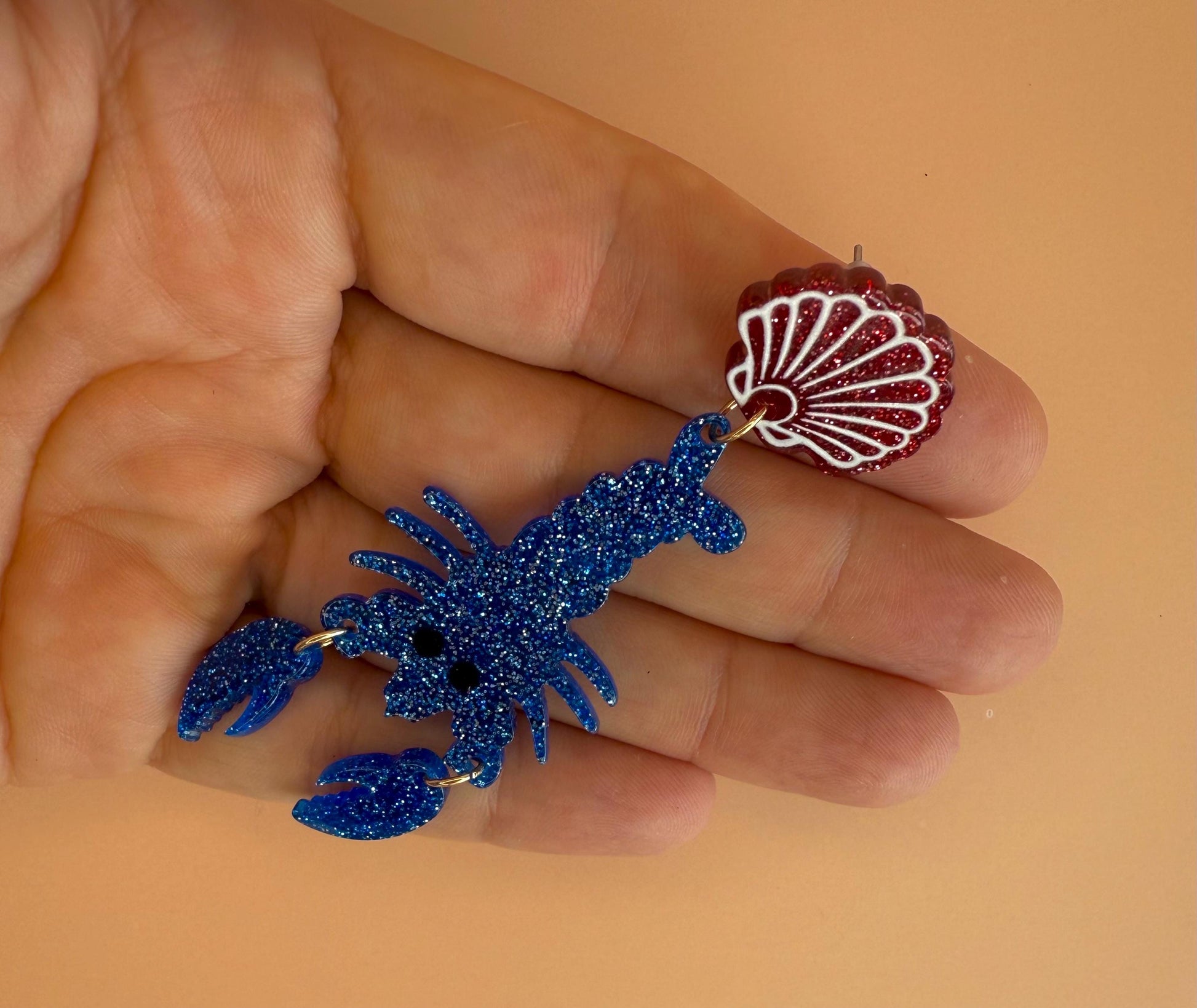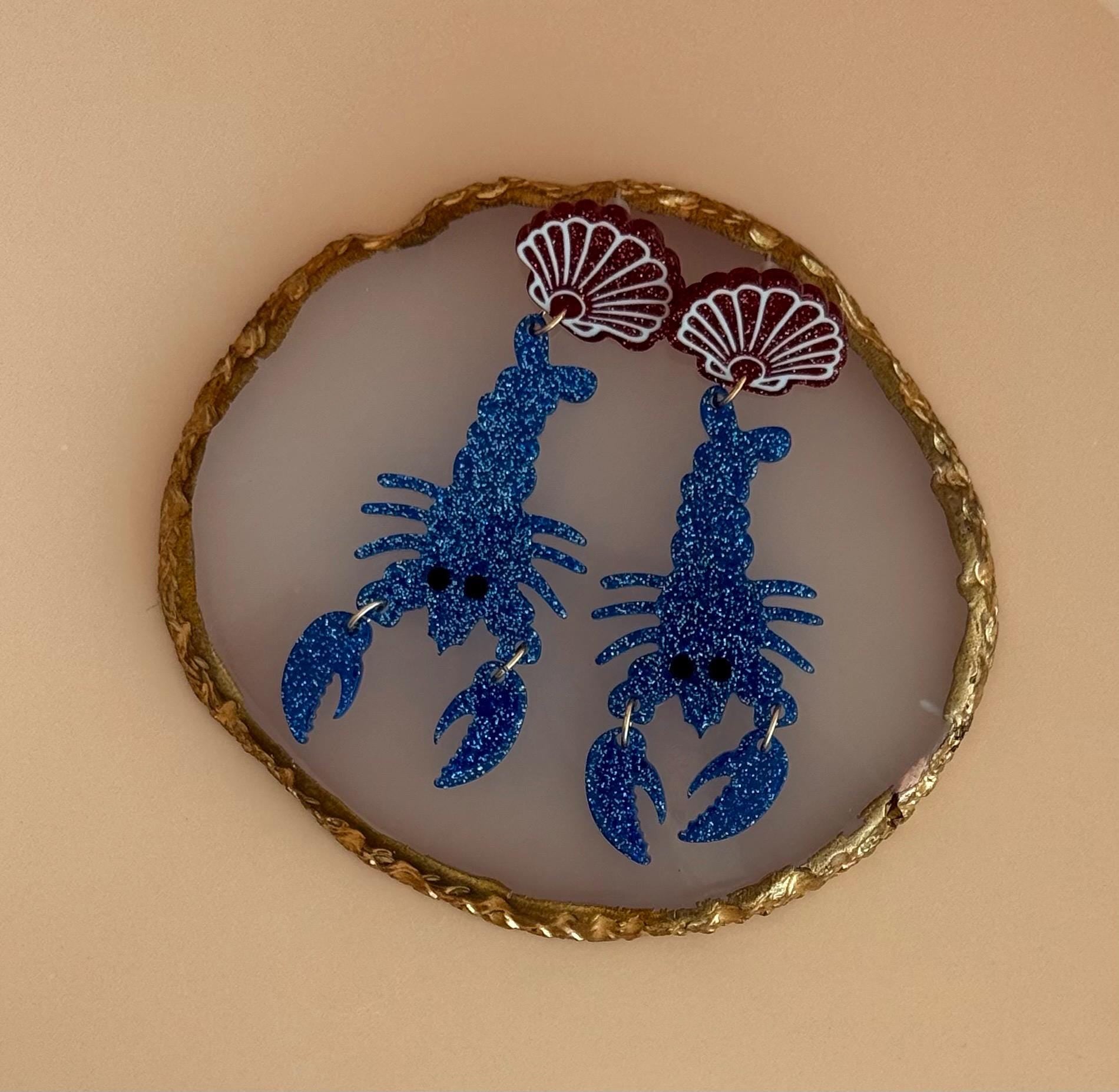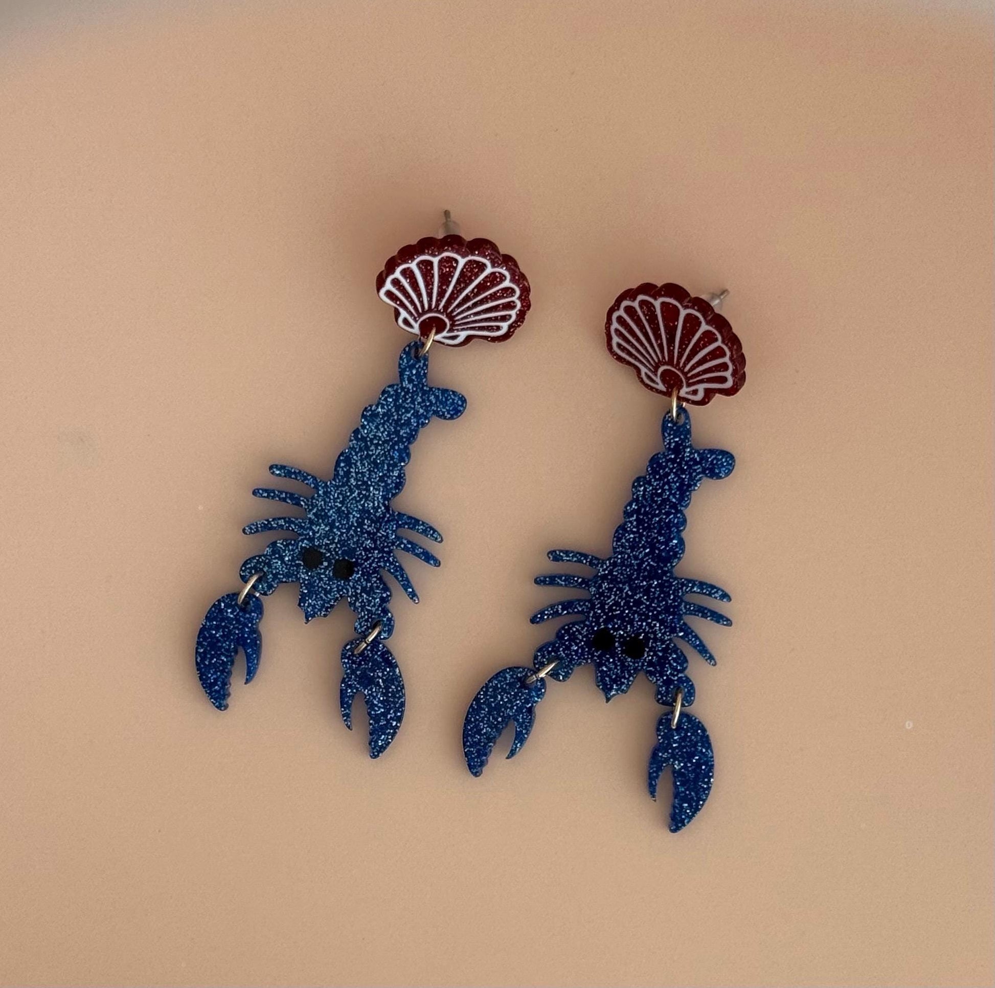 Lobster Earrings Blue Lobster Boho Chic Earring Lobster Jewelry Seaside Jewelry Fish Crustacean Shellfish Crawfish Seafood Lover Handcrafted
