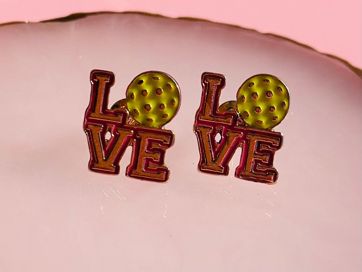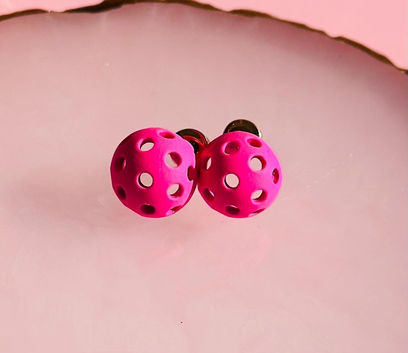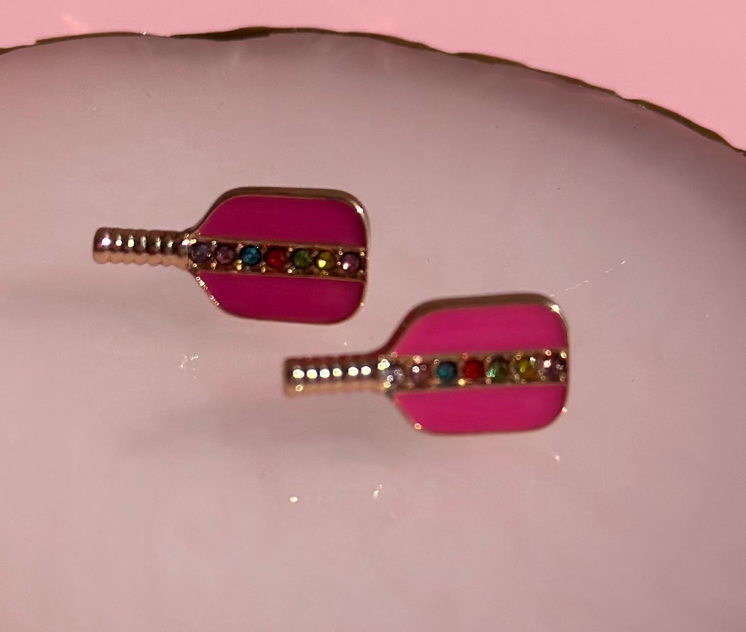 Stud Earrings with Colorful Zirconia. Sporty & Simple Style. Gold-Plated Copper. Perfect for Casual and everyday wear. Great Gift for Pickleball Player.