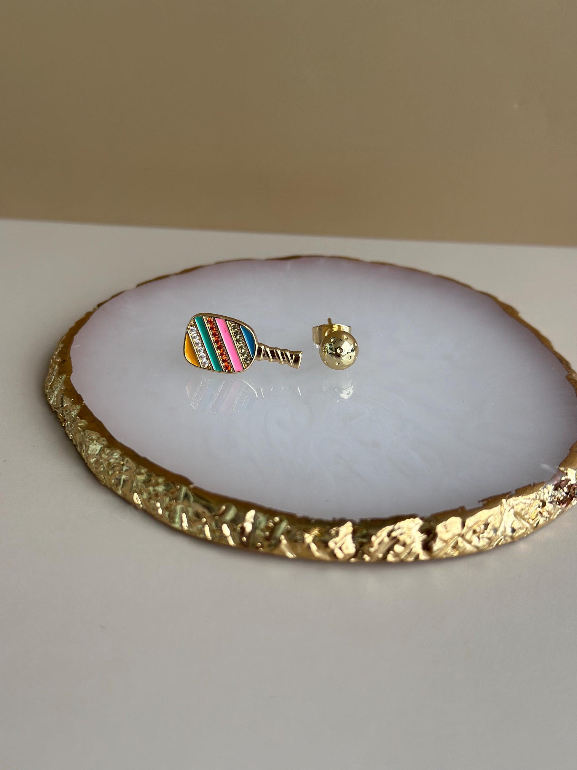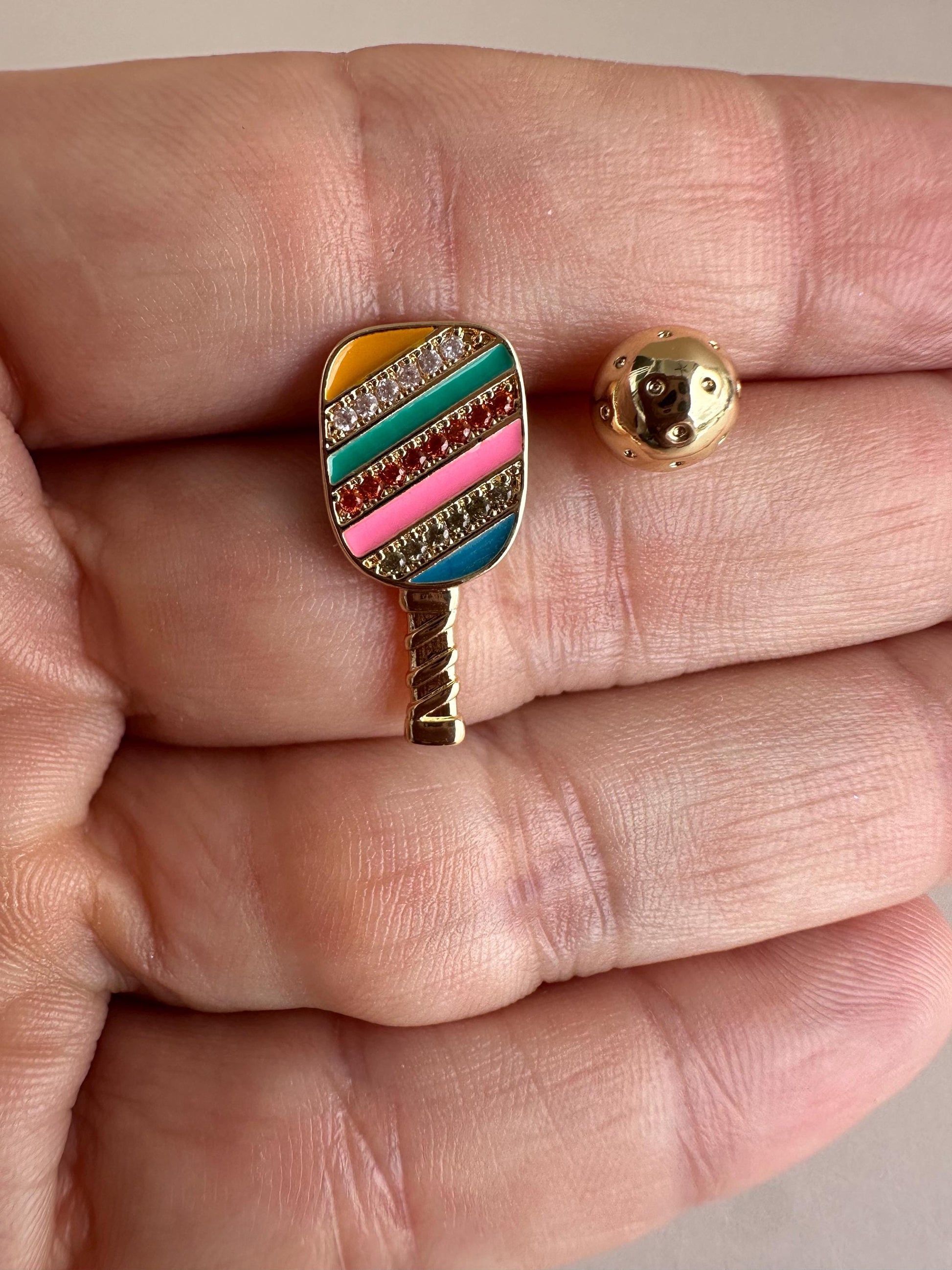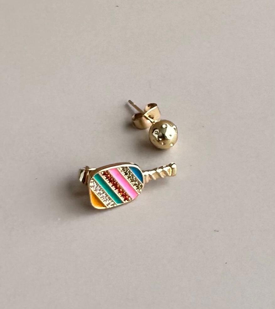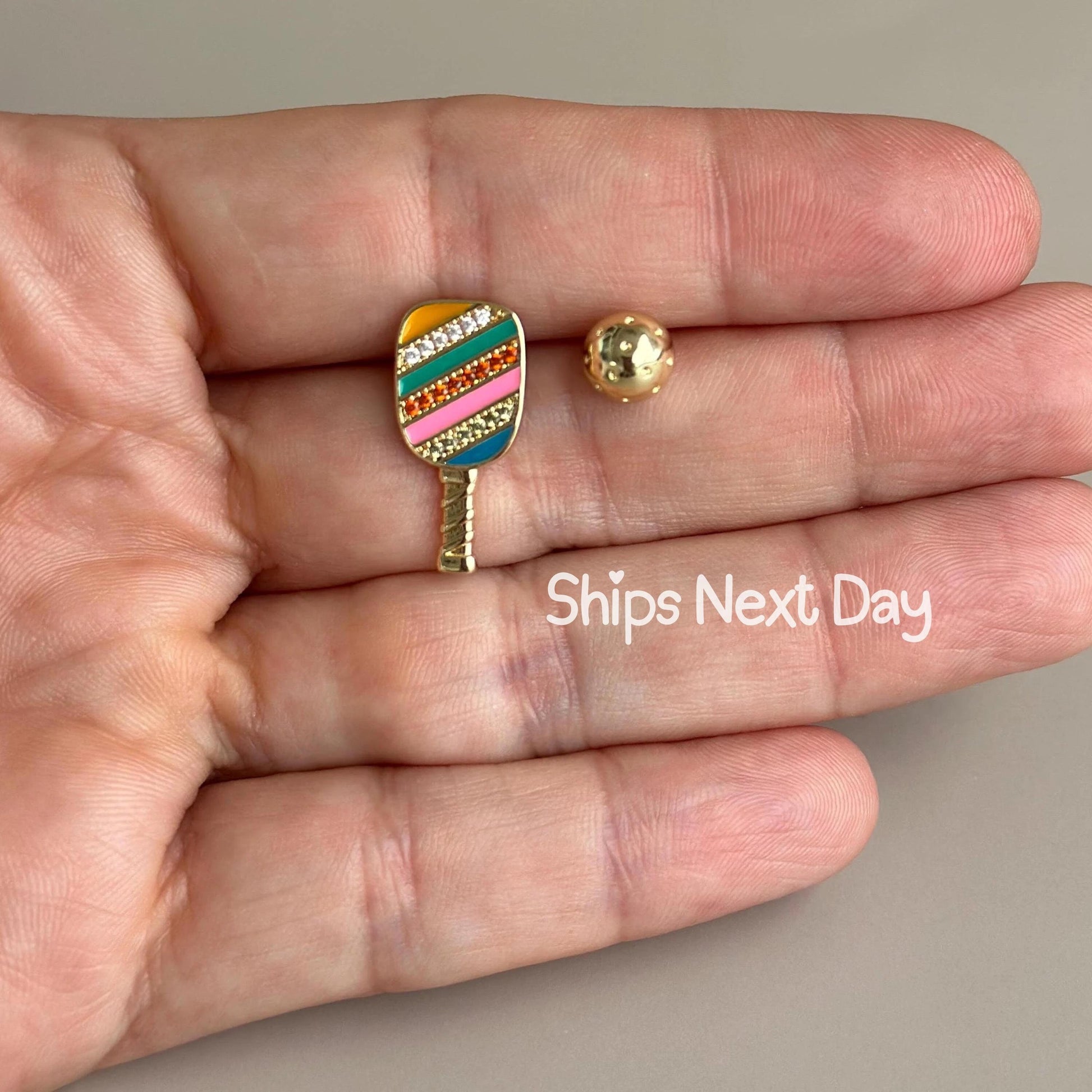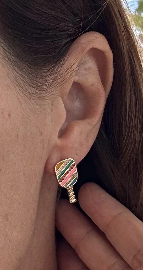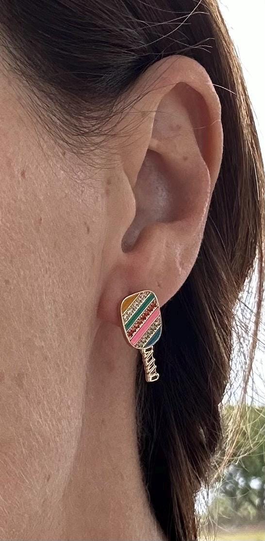Pickleball Earrings Pickleball Jewelry for Pickleball Player Sports Earrings Jewelry for Coach Pickleball Paddle Gift for Pickleball Coach. Great for Valentine's Day. Stud Earrings with Colorful Zirconia. Sporty & Simple Style. Gold-Plated Copper. Perfect for Casual and everyday wear. Great Gift for Pickleball Player.