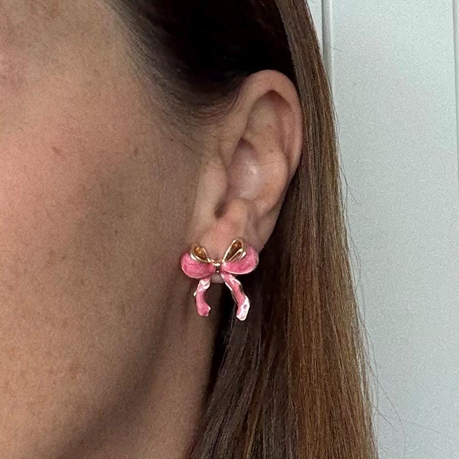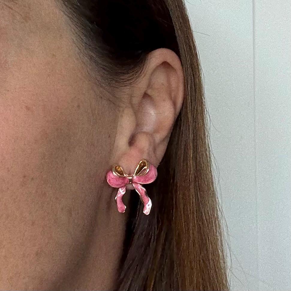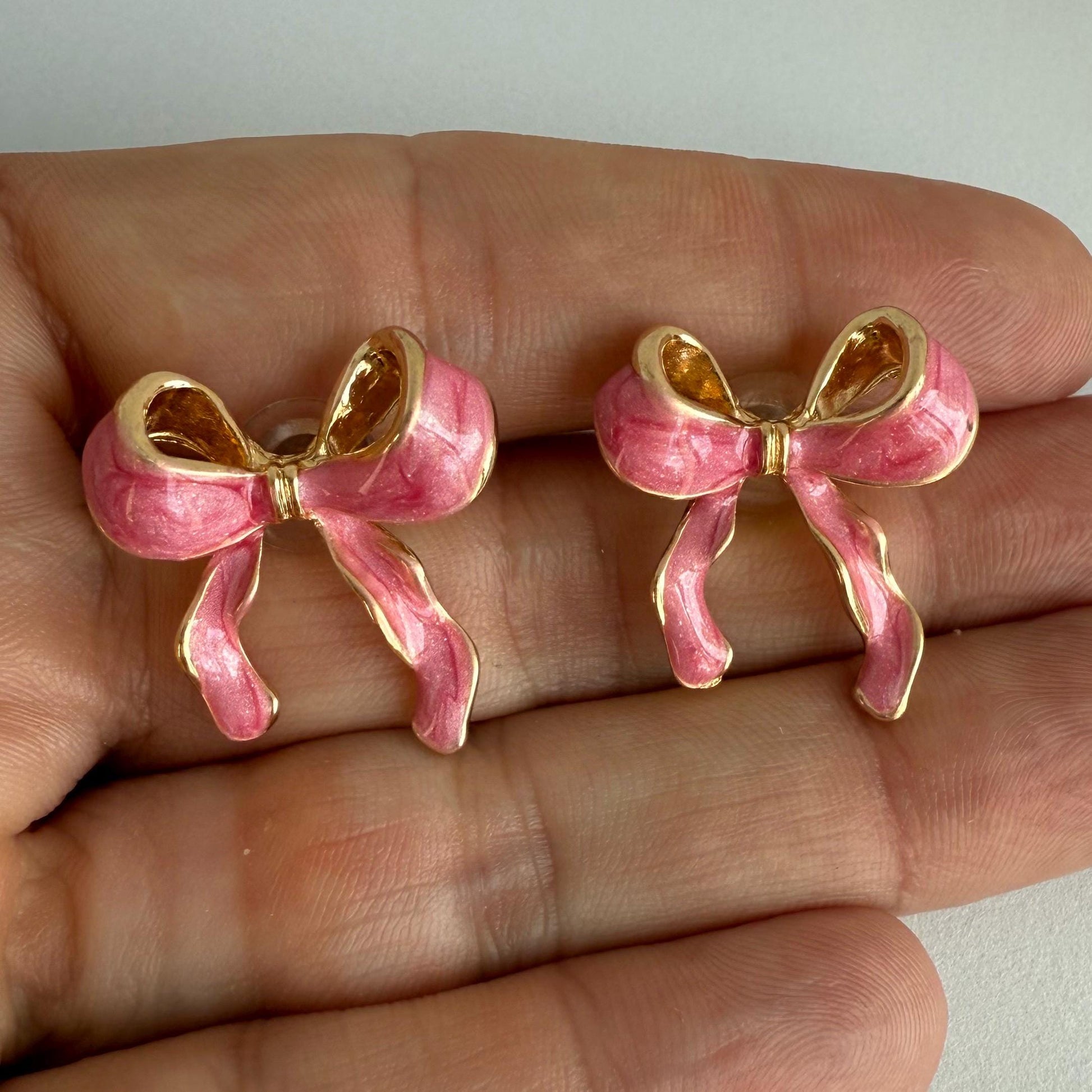 Pink Bow Earrings Mother's Day Gift for Girlfriend Coquette Earrings Pink Enamel Bow Jewelry for Girls Cute Bow Coquette Bow Candy Color Ear.