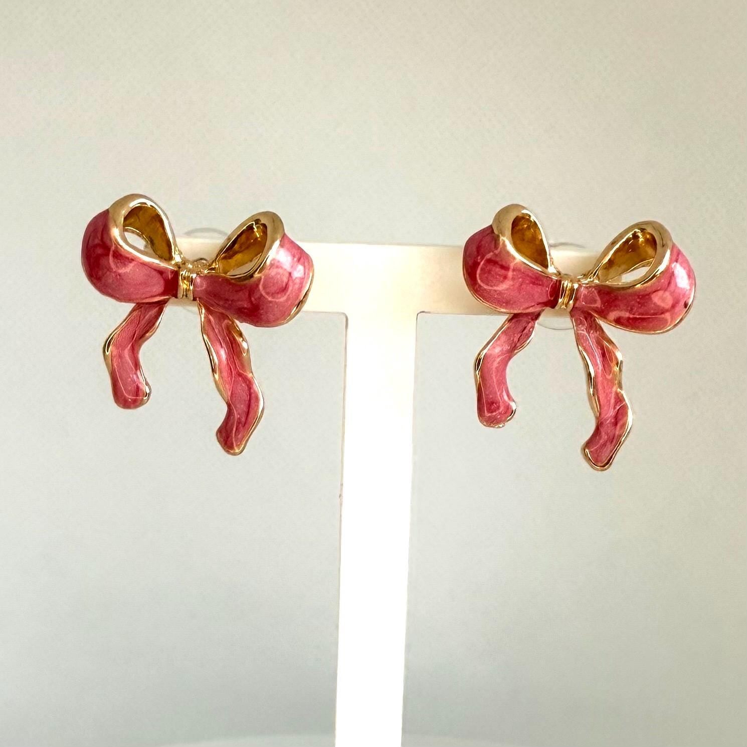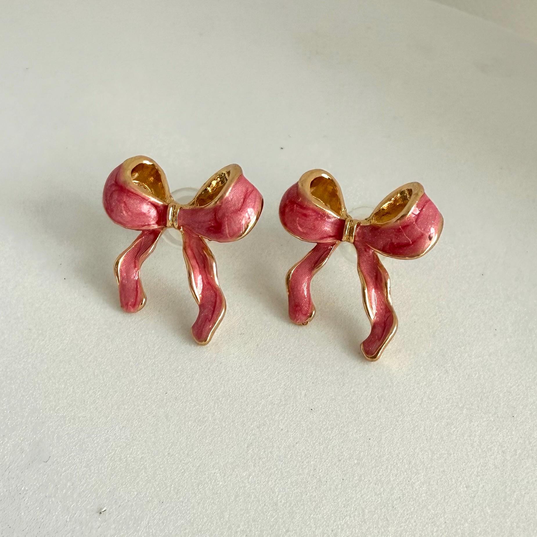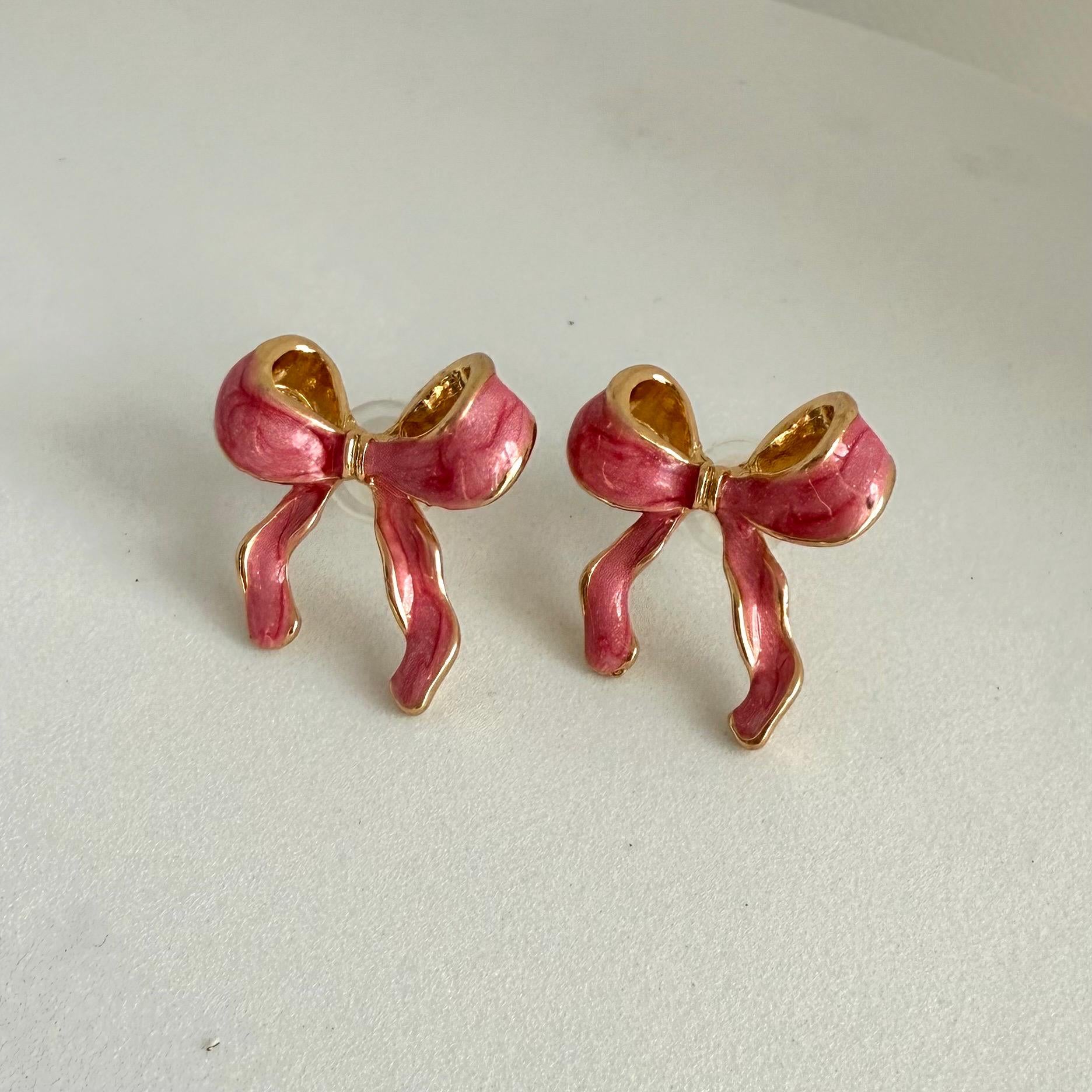 Pink Bow Earrings Mother's Day Gift for Girlfriend Coquette Earrings Pink Enamel Bow Jewelry for Girls Cute Bow Coquette Bow Candy Color Ear.