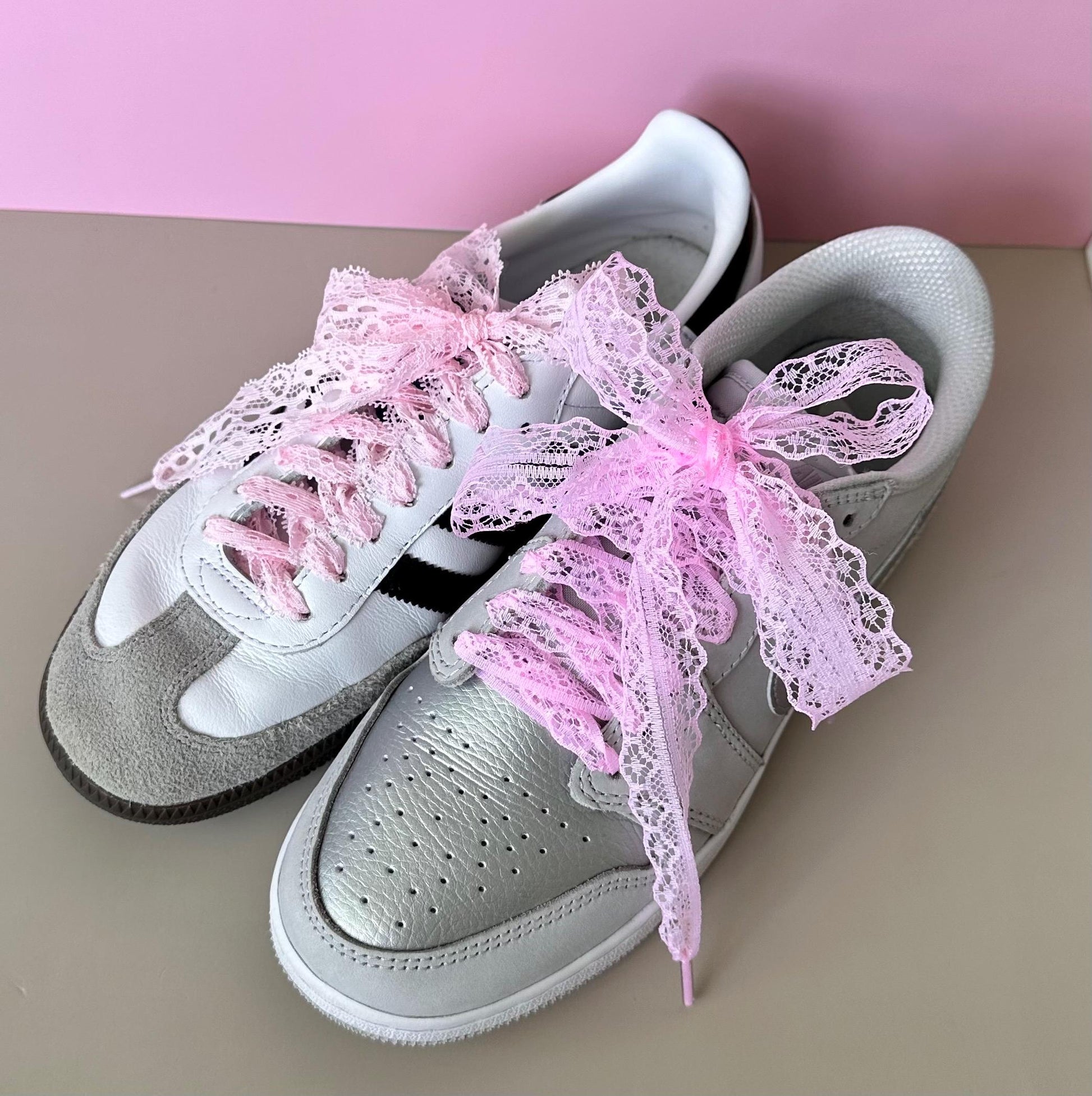 Pink Lace Shoelaces Pink Ballet Shoelaces With Large Bowknot Light Pink Shoelaces for Sneakers Bride Shoes Wedding Shoelaces Pink Lace Bow.