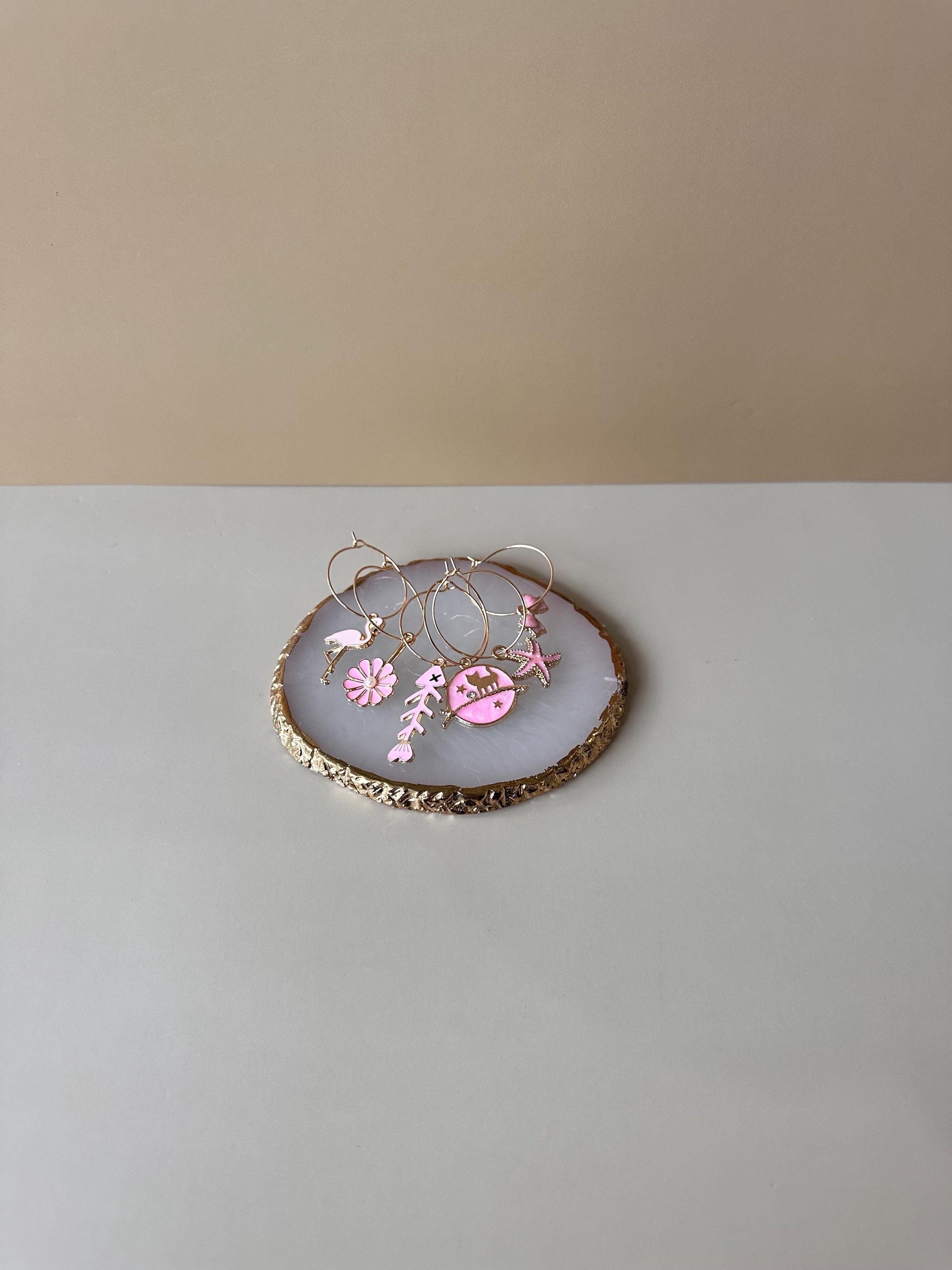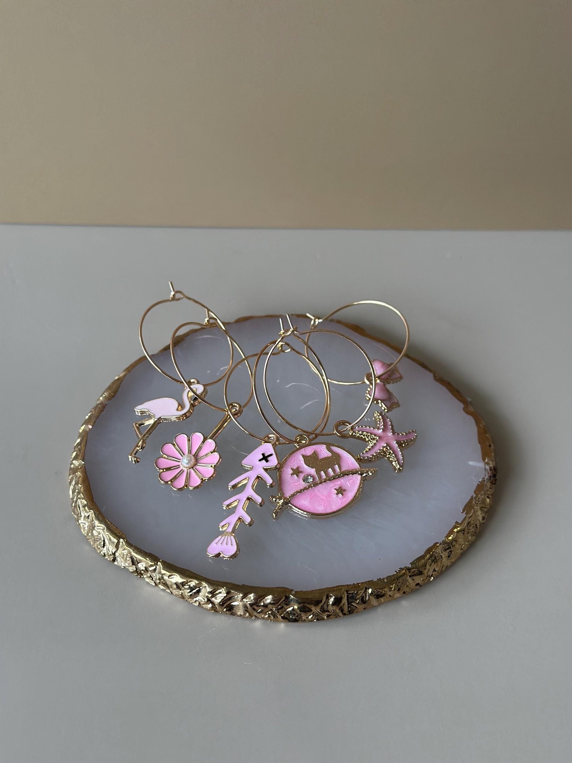 These Pink Theme wine glass charms are a fun colorful addition to any party and home reception. These drink markers are great for a birthday or for the dinner party host, would make a great gift for Pink Color lovers, a fun hostess gift, stocking stuffer, mothers day or birthday gift. They are also the perfect addition to a bar cart.