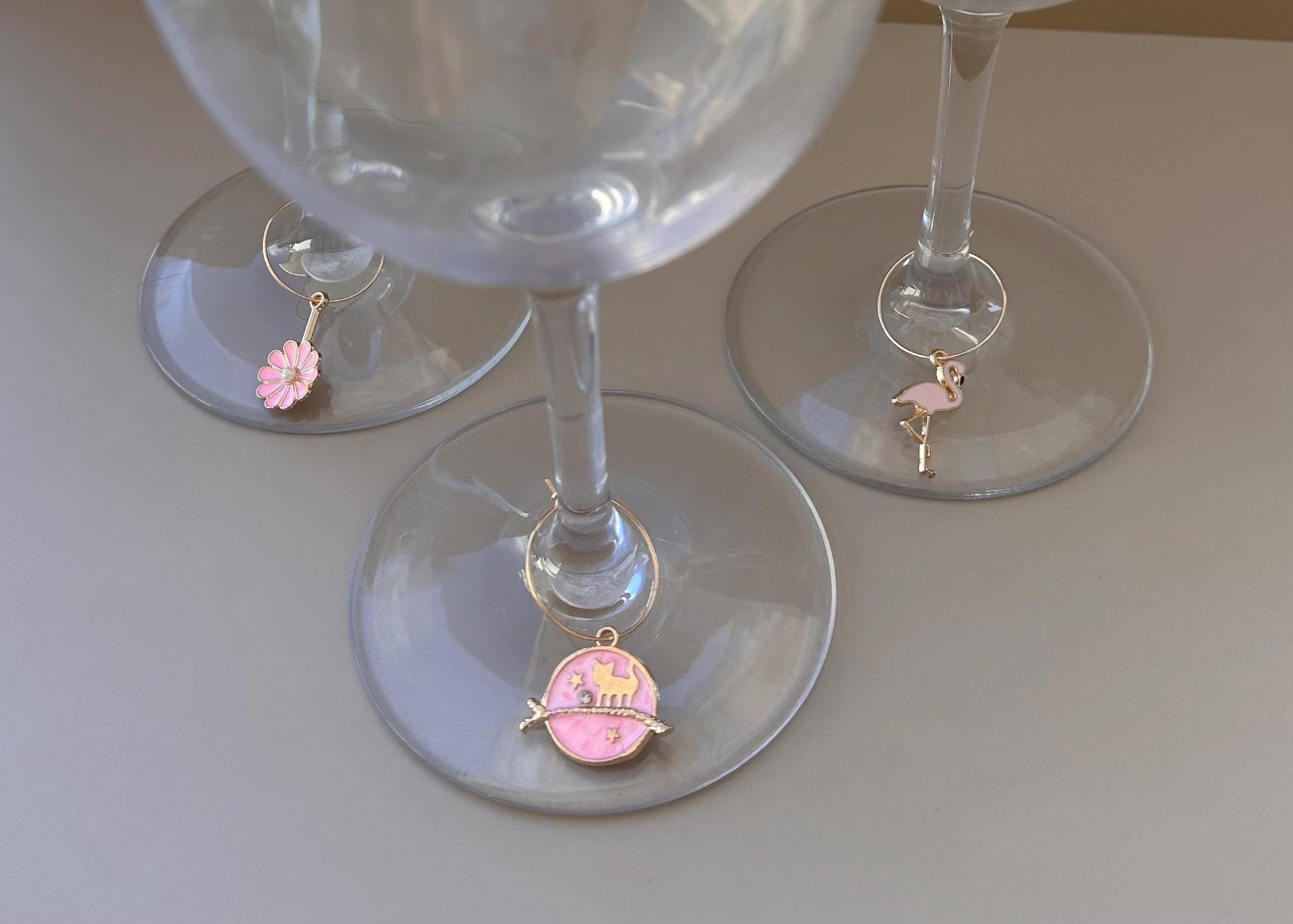 Pink Wine Glass Markers Pink Assorted Drink Marker Pink Theme Wine Glass Charms Pink Glass Decor Custom Wine Charm Drink Identifier Hostess.