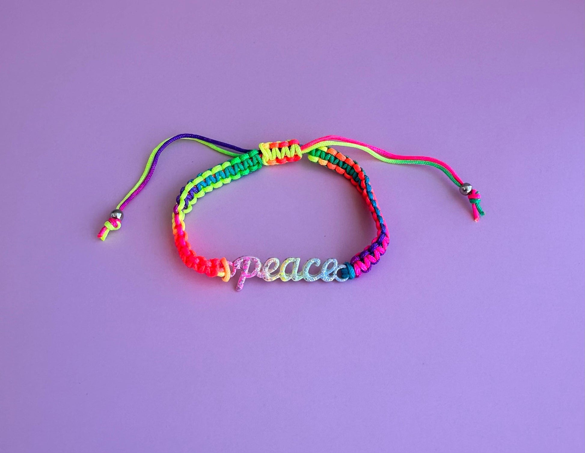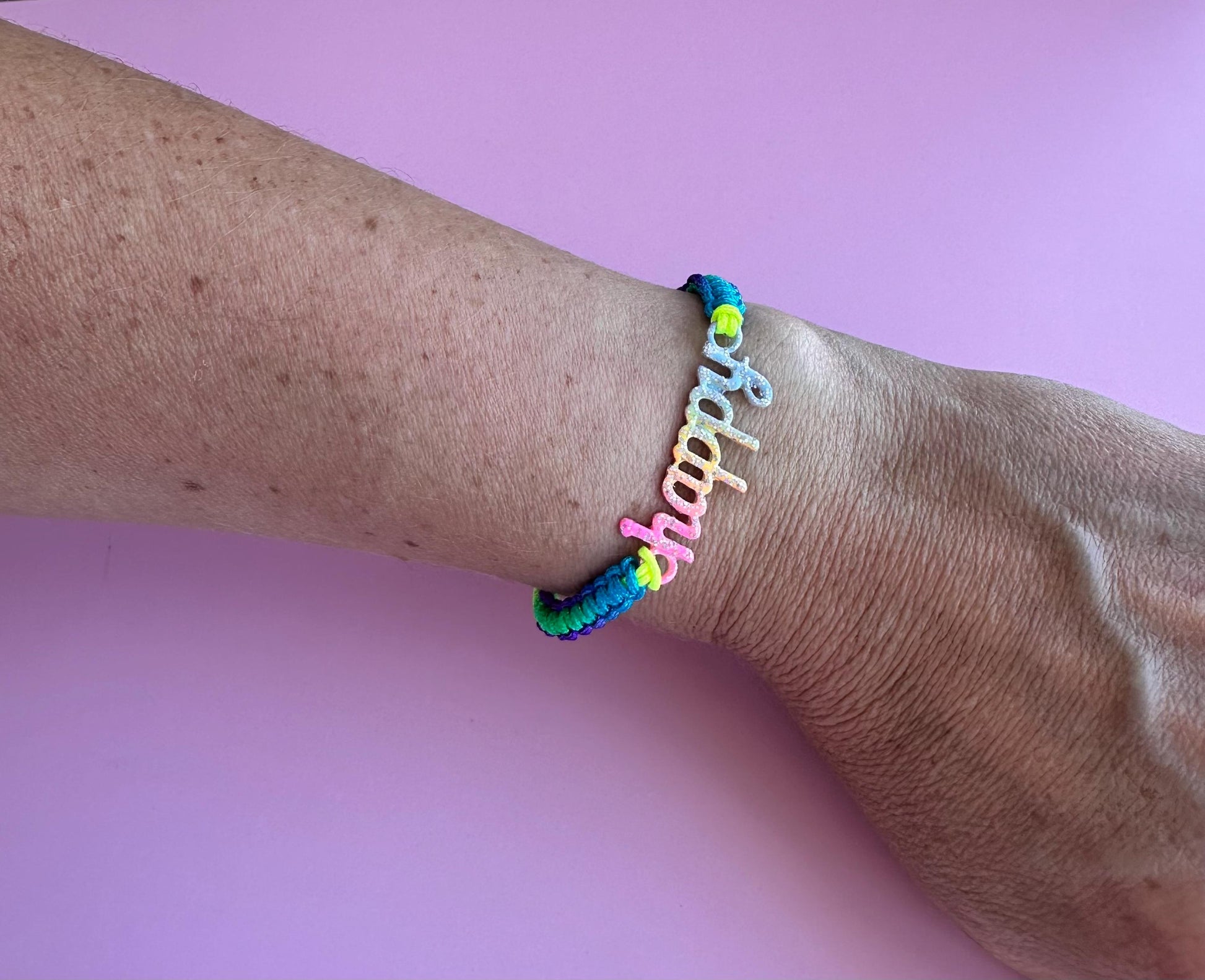 Valentine's Day Gift Idea. Rainbow Bracelet for Best Friend Gift Positive Vibes Bracelet BFF Jewelry Fun Bracelet Boho Bracelet Macrame Loveshack Fancy Girl Gift Cute. Choose your word.