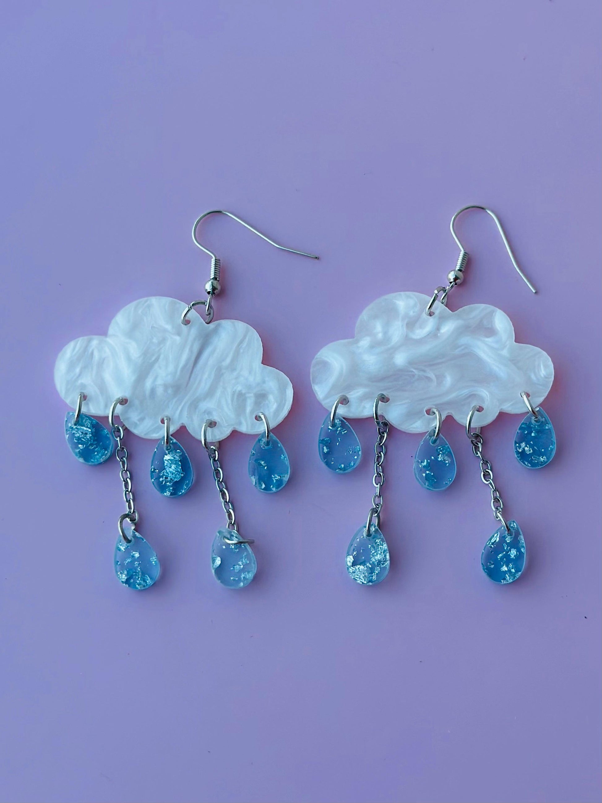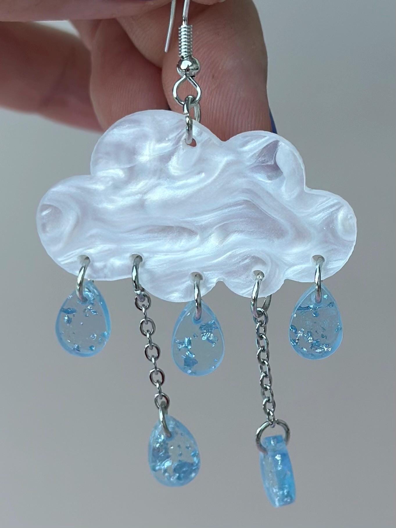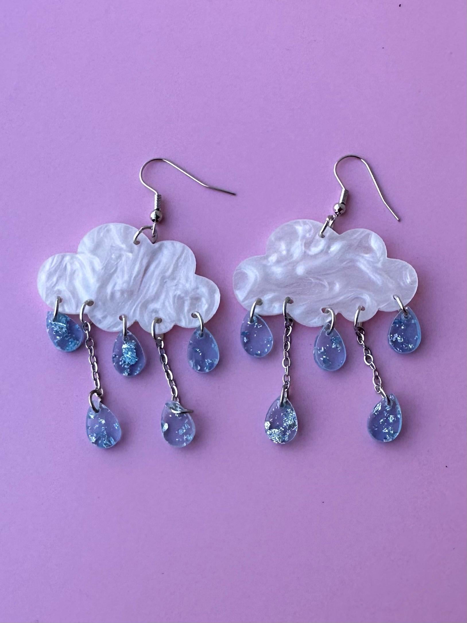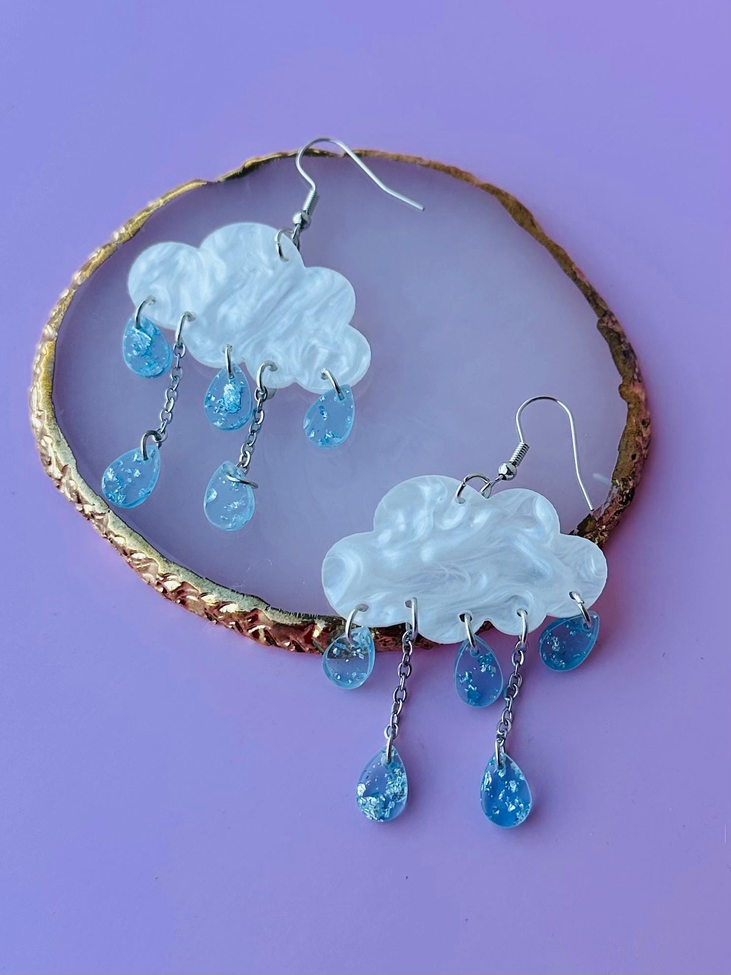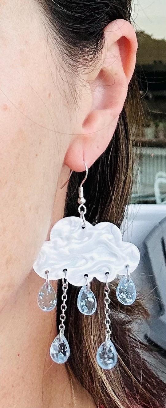 Raindrops Earrings Cute Cloud Earrings Water Drops Jewelry Cloud Theme Earrings Gift for Girl Rain Theme Raindrops Fashion Girls Jewelry Rain.