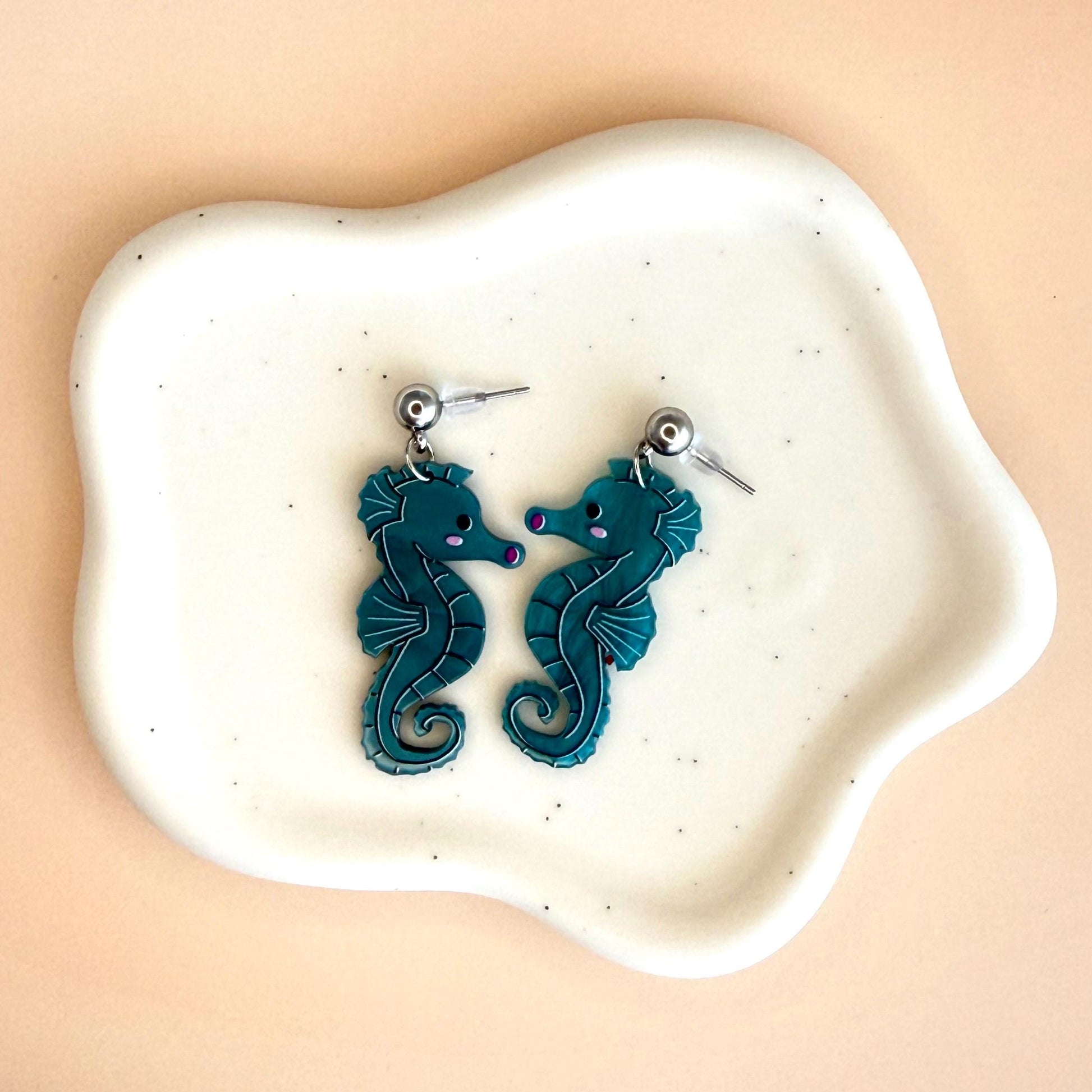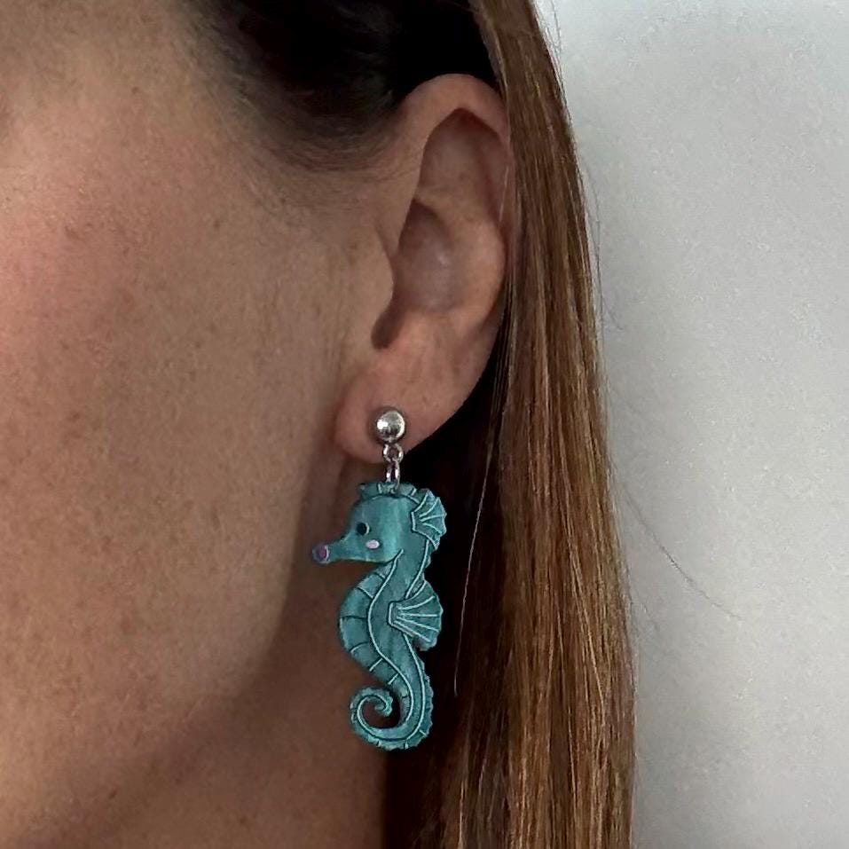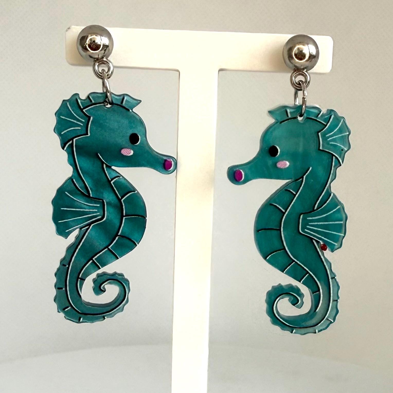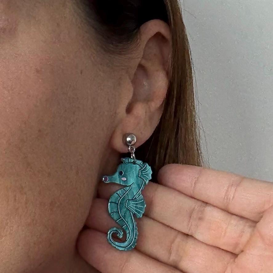Seahorse Earrings for Mother's Day Blue Fish Boho Chic Earring Seahorse Jewelry Seaside Jewelry Fish Crustacean Shellfish Crawfish Seafood