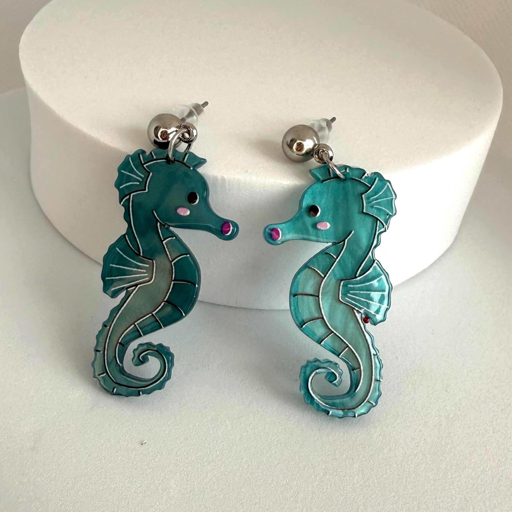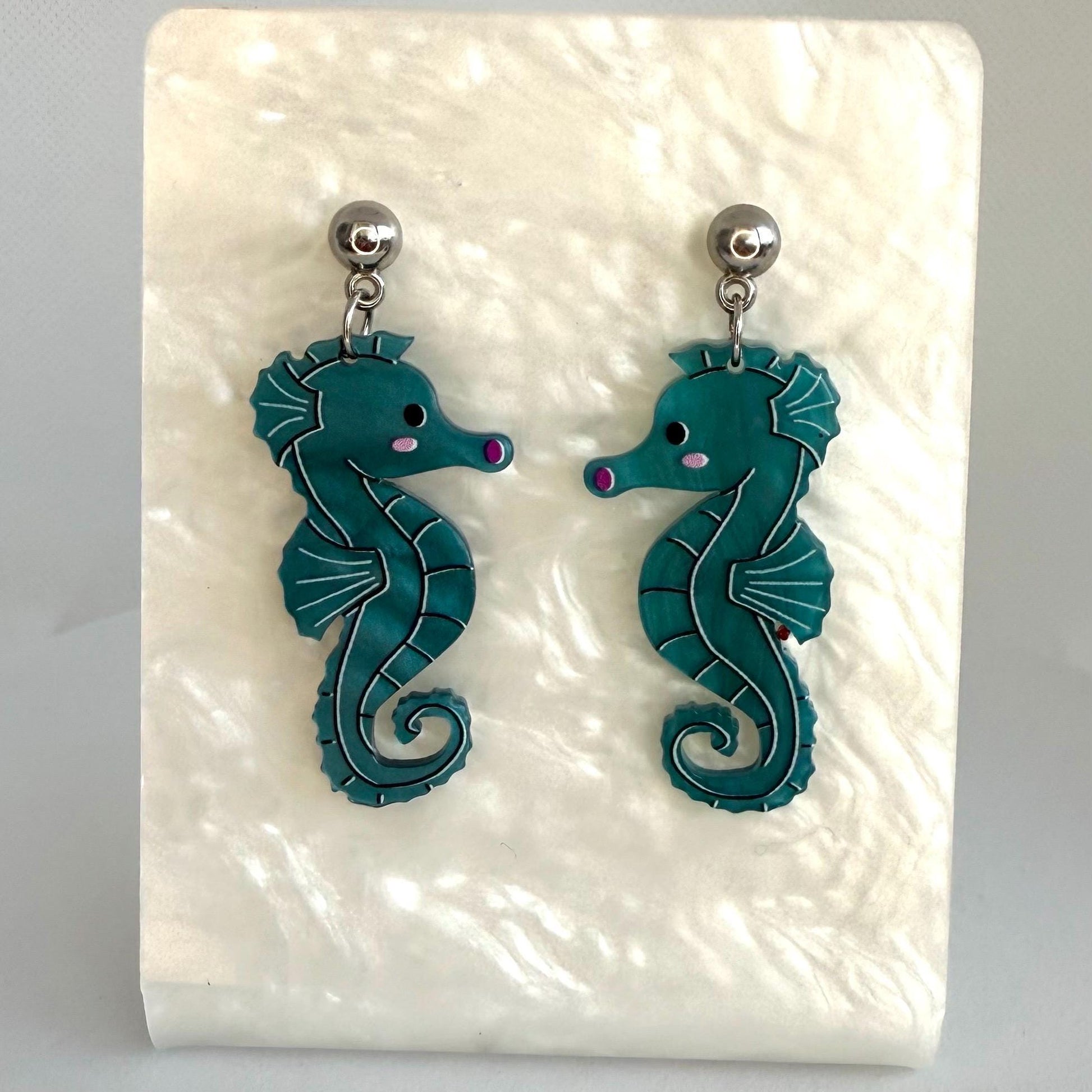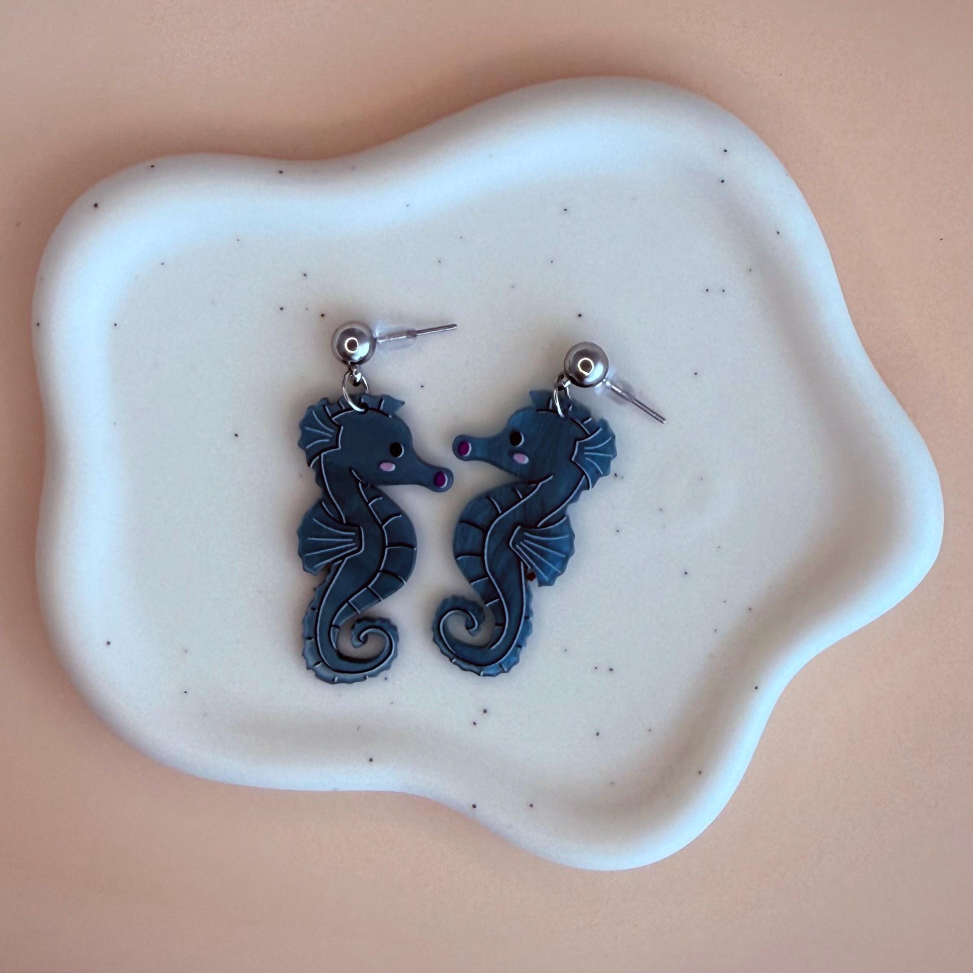 Seahorse Earrings for Mother's Day Blue Fish Boho Chic Earring Seahorse Jewelry Seaside Jewelry Fish Crustacean Shellfish Crawfish Seafood