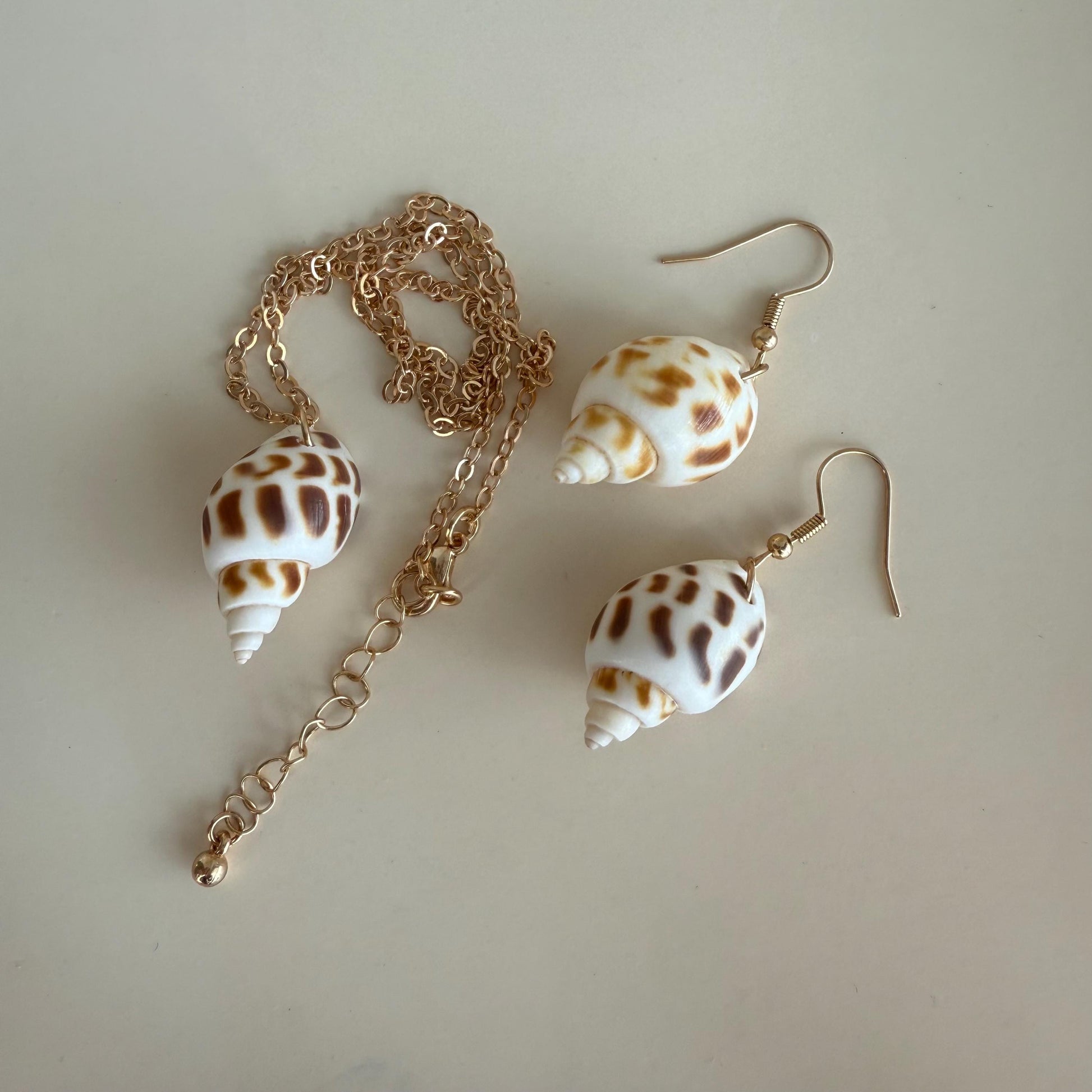 SET OF EARRINGS AND NECKLACE. Shell Necklace Shell Earrings Set Seashell Pendant Shell Charm Seashell Jewelry Gift for Ocean Lover Seaside Accessory Beach Theme Jewelry.