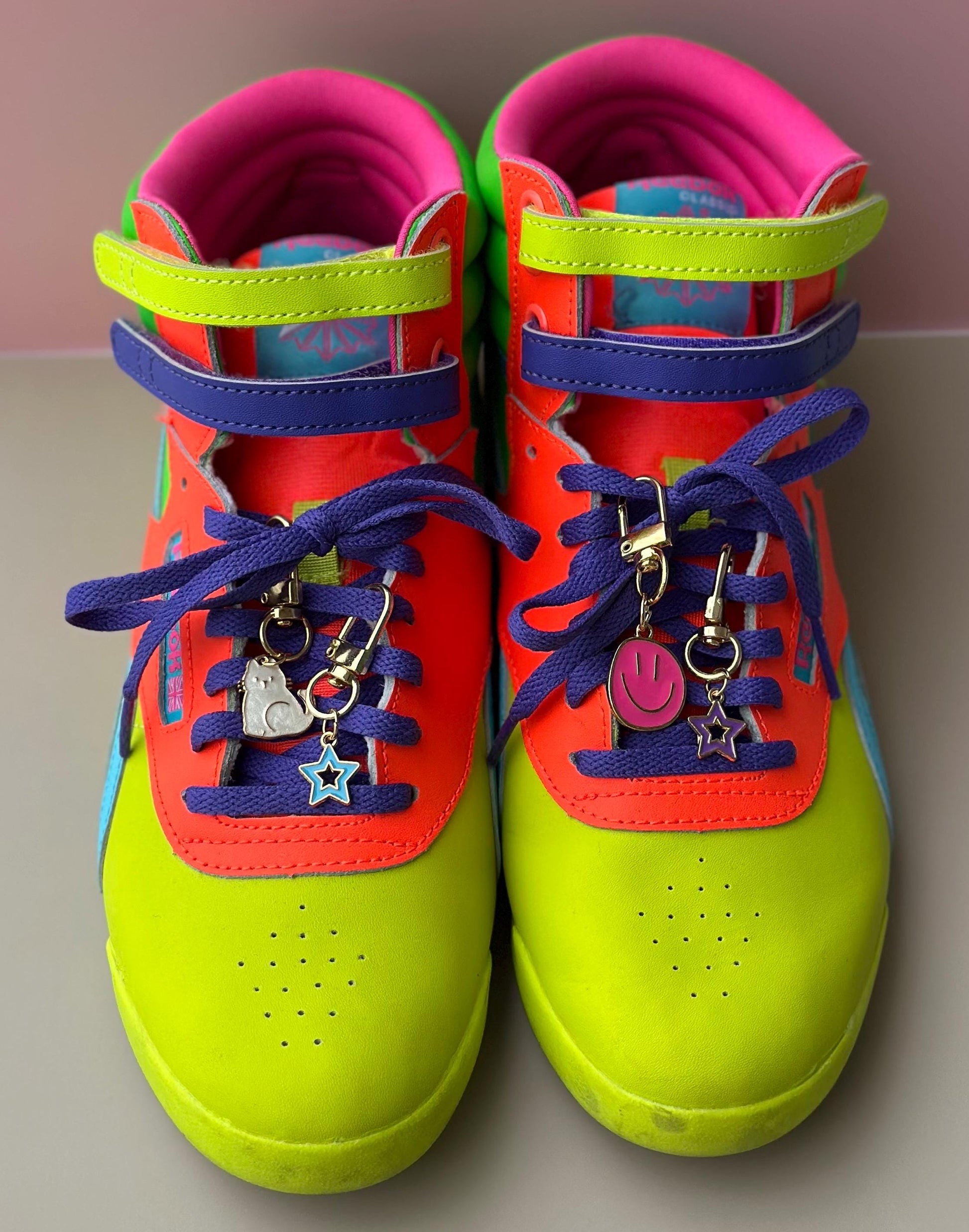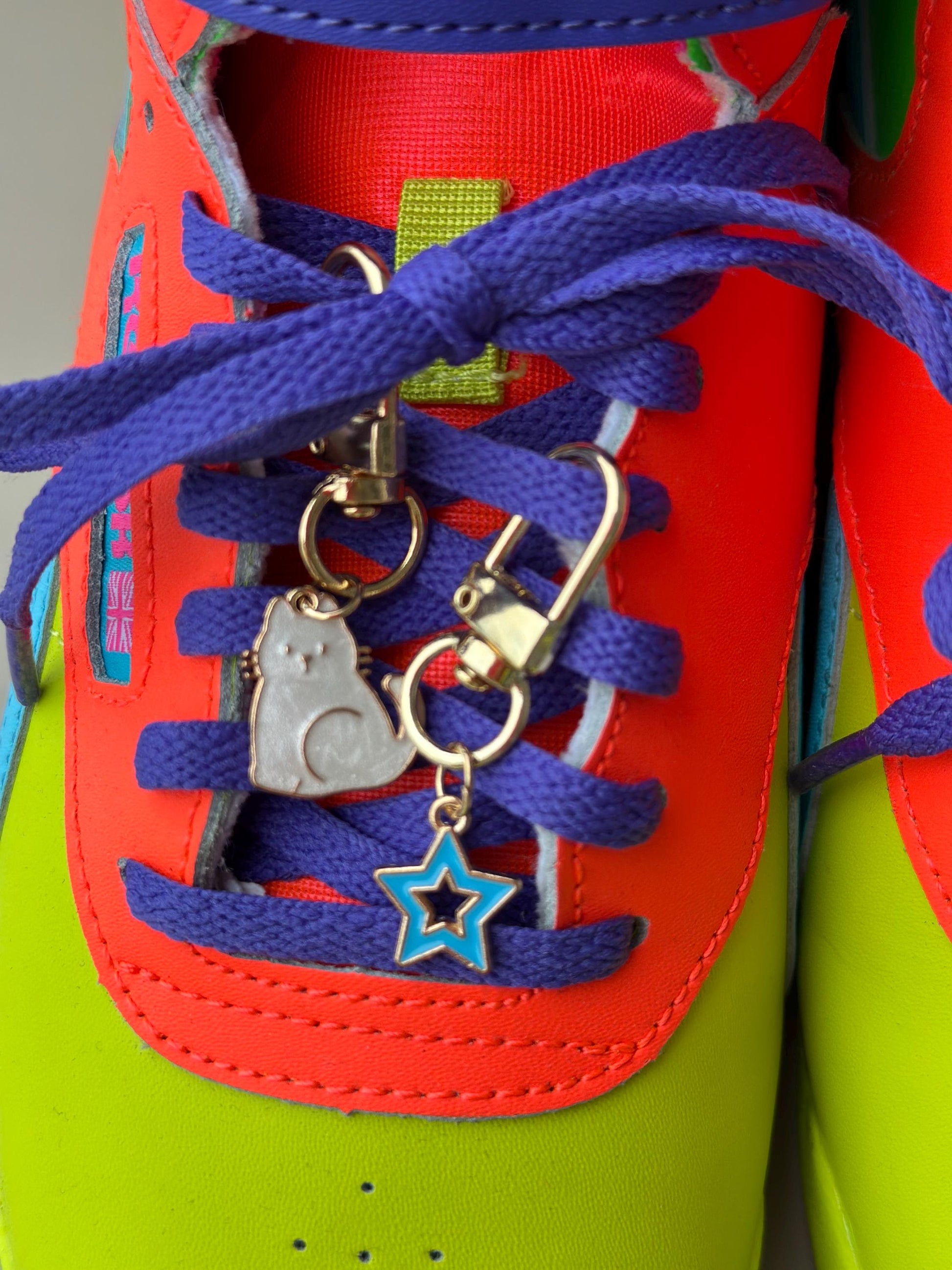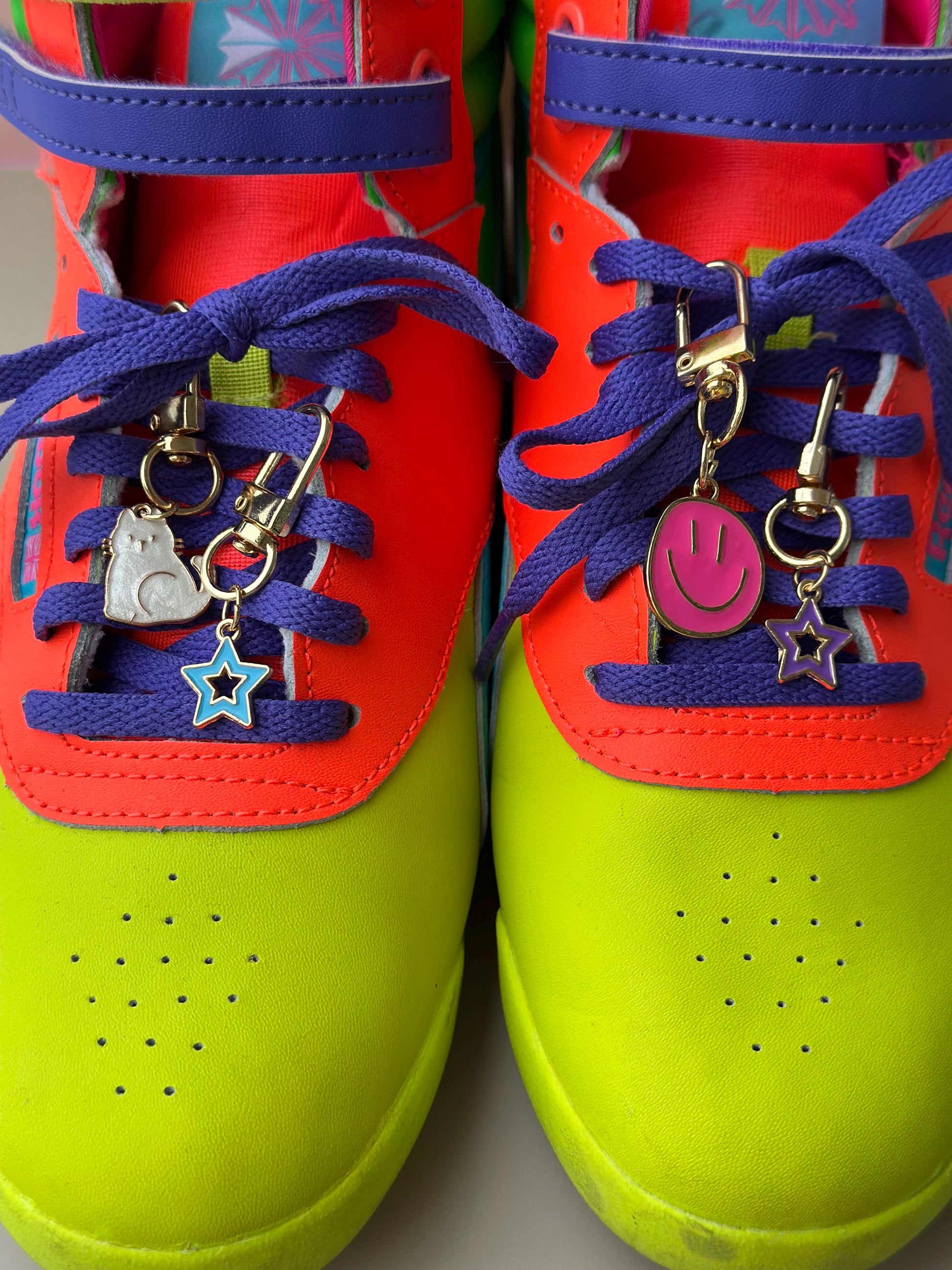 These stylish charms for sneakers are designed as a unique shoe charm for laces, featuring a stunning gold charm with colored enamel in different shapes and designs for personalized touch.