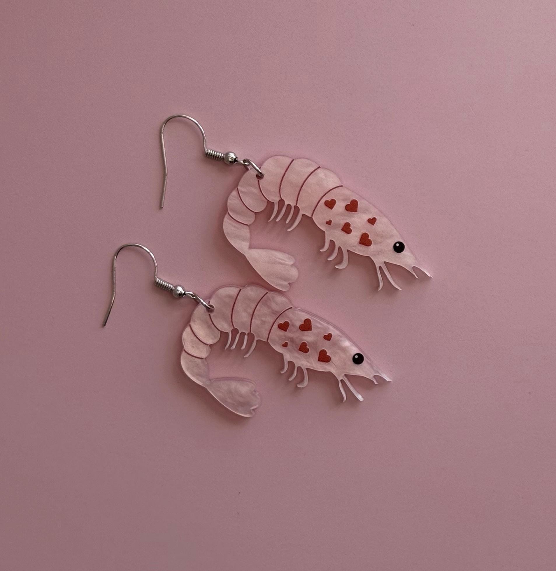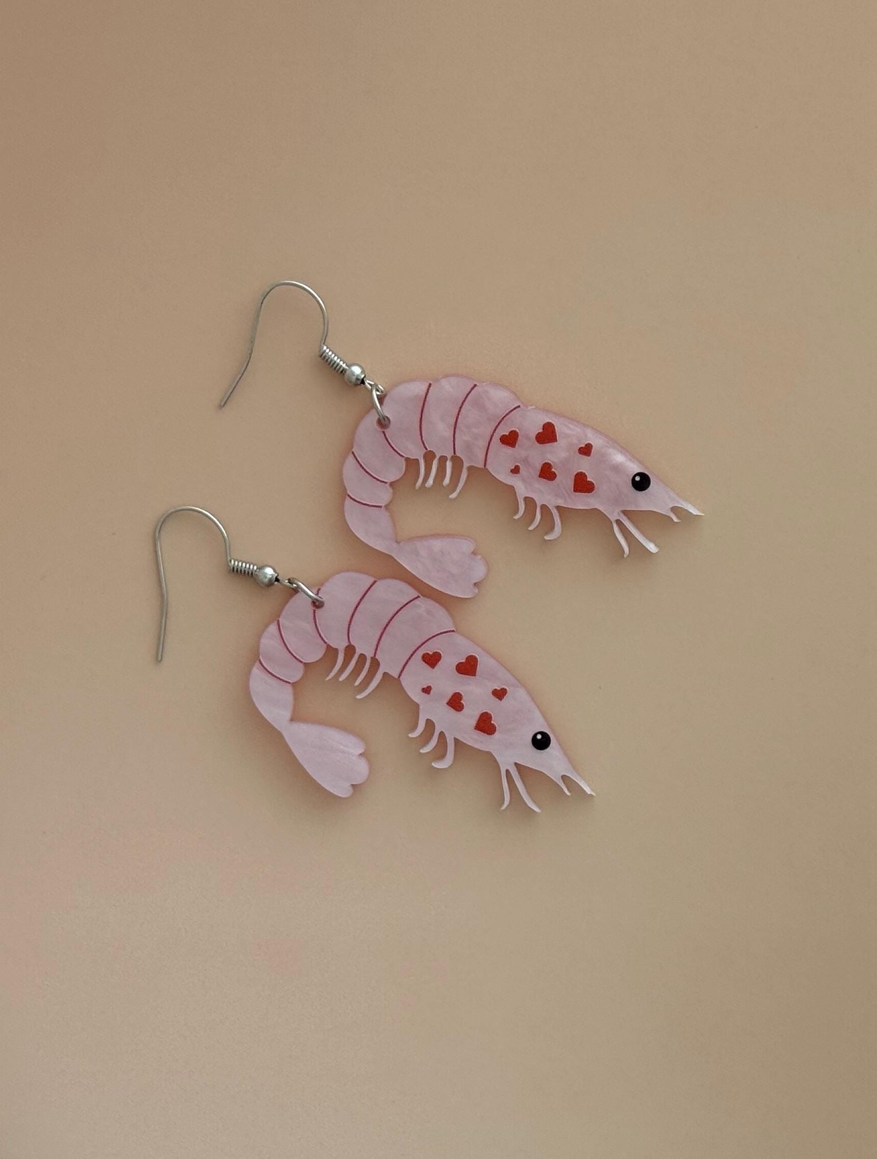 Shrimp Earrings Lobster Boho Chic Earring Seaside Jewelry Fish Earring Crustacean Shellfish Crawfish Prawn Handcrafted Seafood Lover Earring.