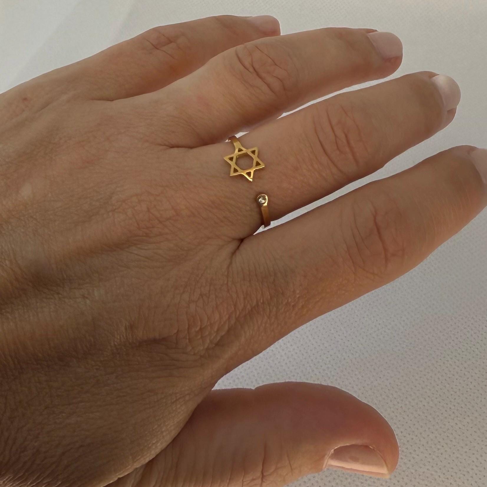 Star of David Ring Golden Ring Star of David Jewish Star Jewelry Delicate David Star Adjustable Ring Bat Mitzvah Gift for Jewish Teenager.