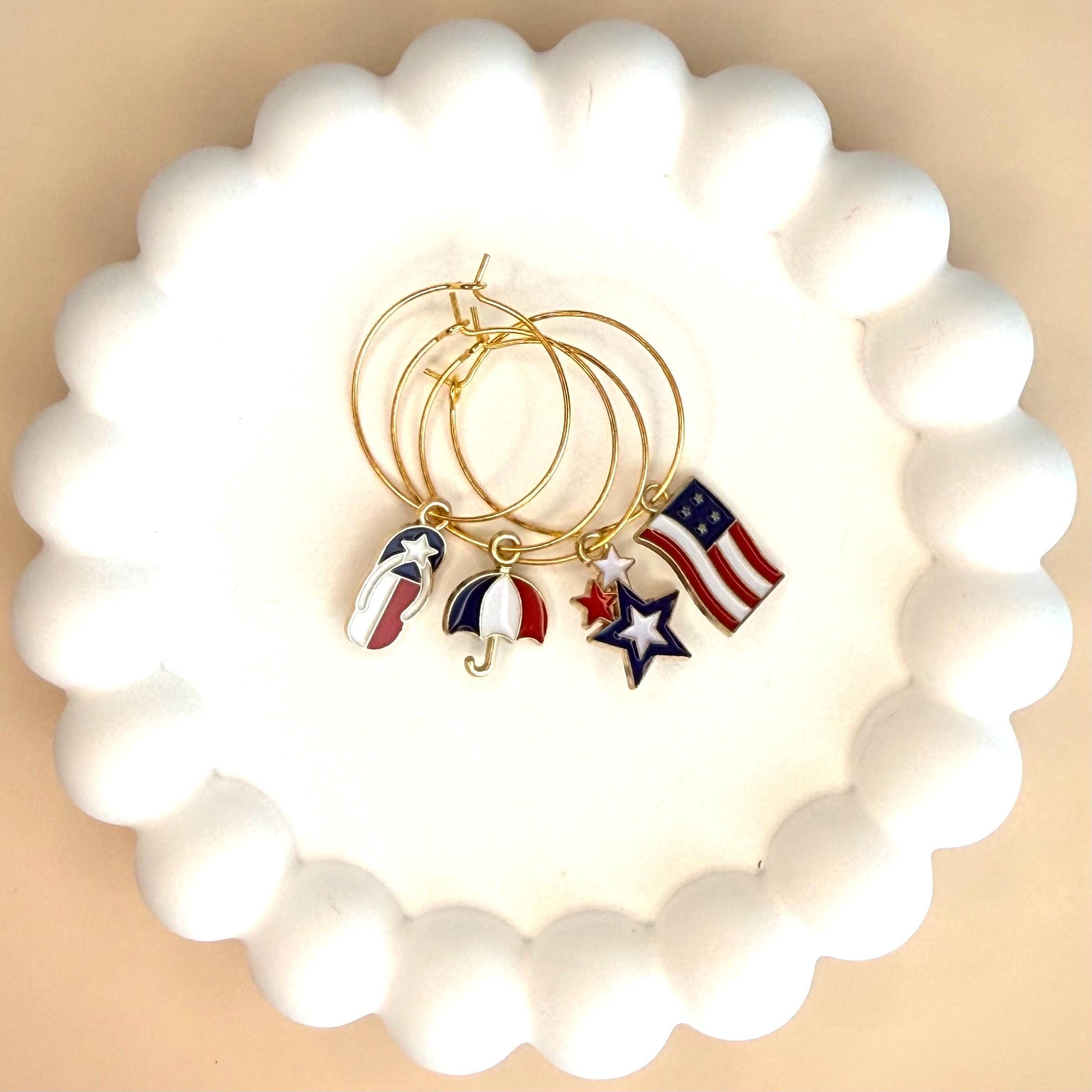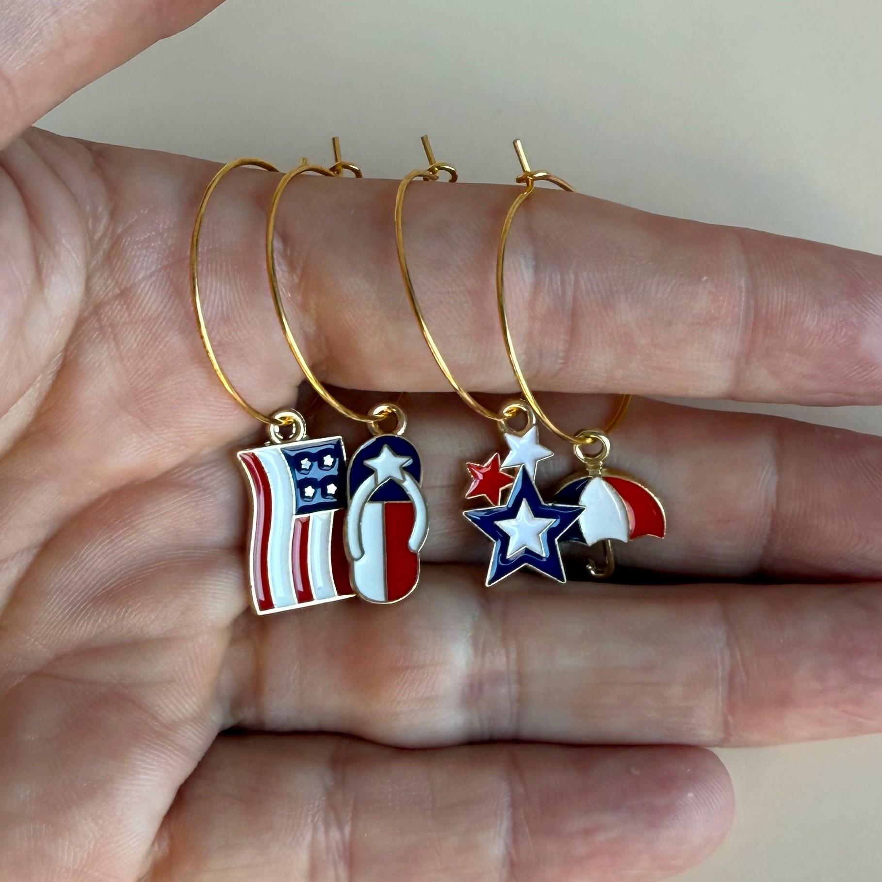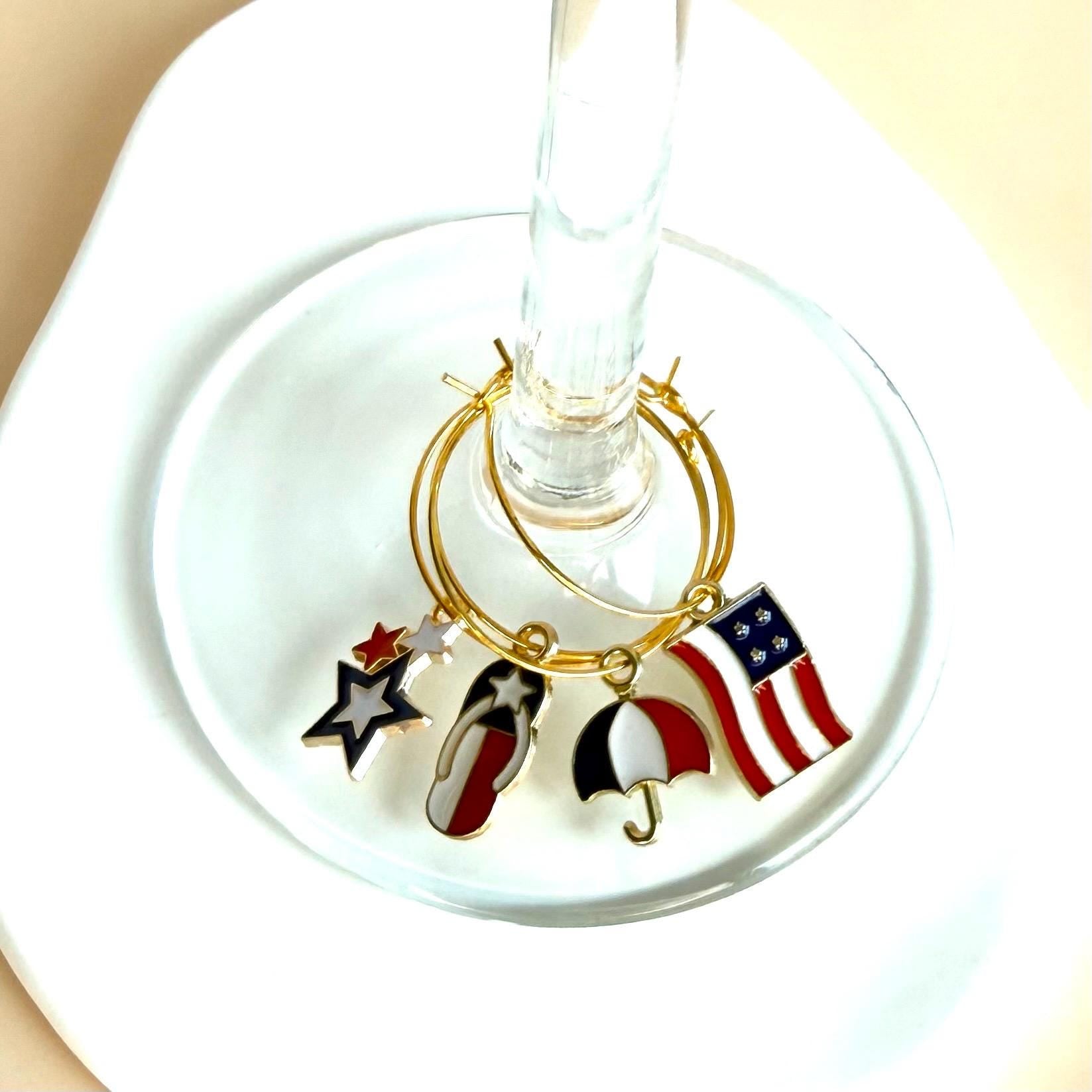 USA Wine Charms Flags Charms Fourth of July Wine Glass Charms United States Flag Wine Favors Wine Charm USA Flag Rings 4th of July Patriotic