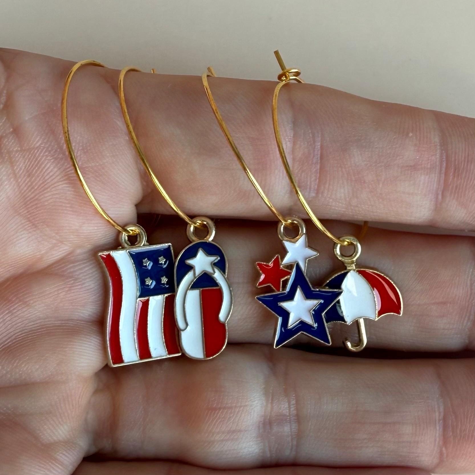 USA Wine Charms Flags Charms Fourth of July Wine Glass Charms United States Flag Wine Favors Wine Charm USA Flag Rings 4th of July Patriotic.
