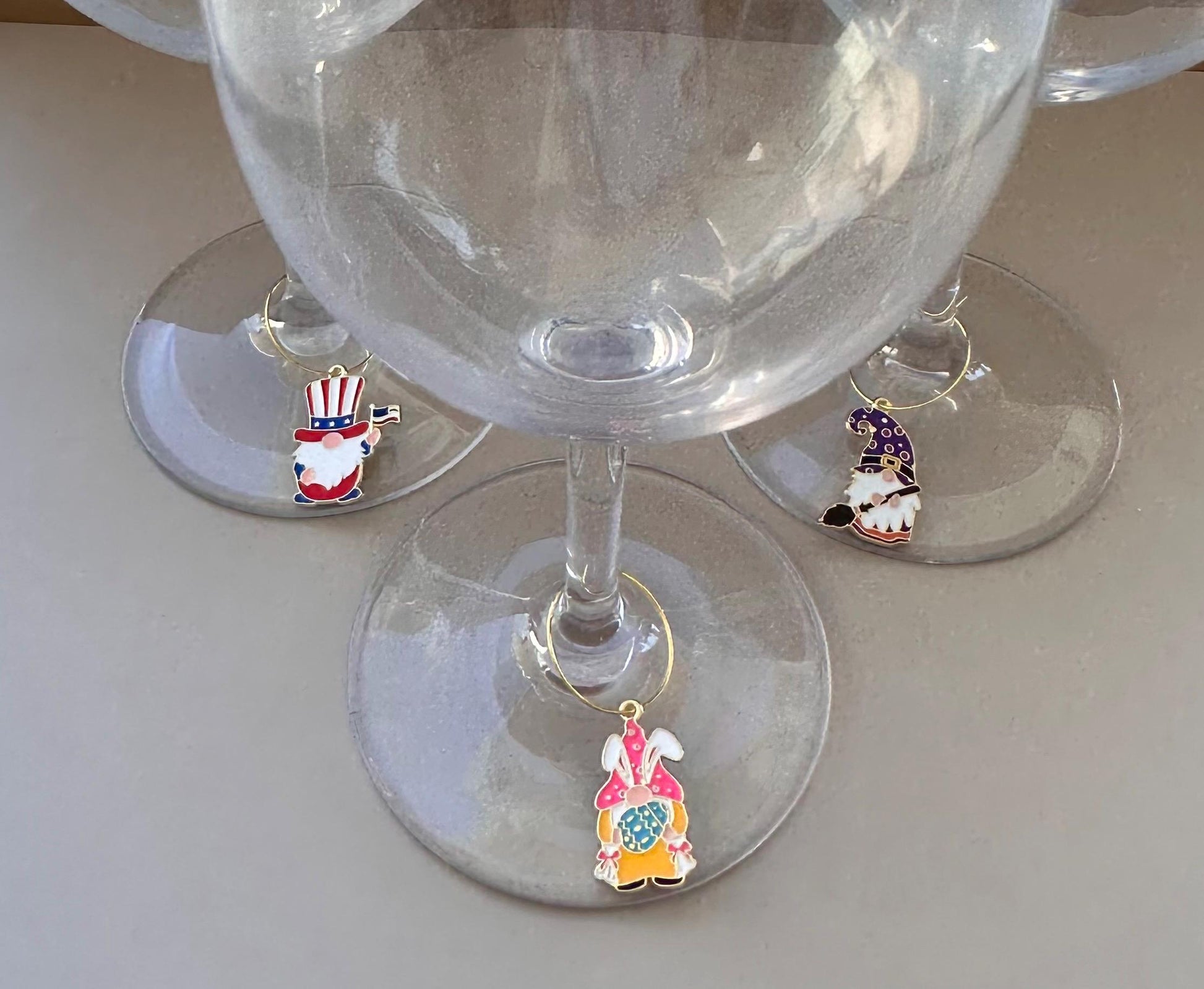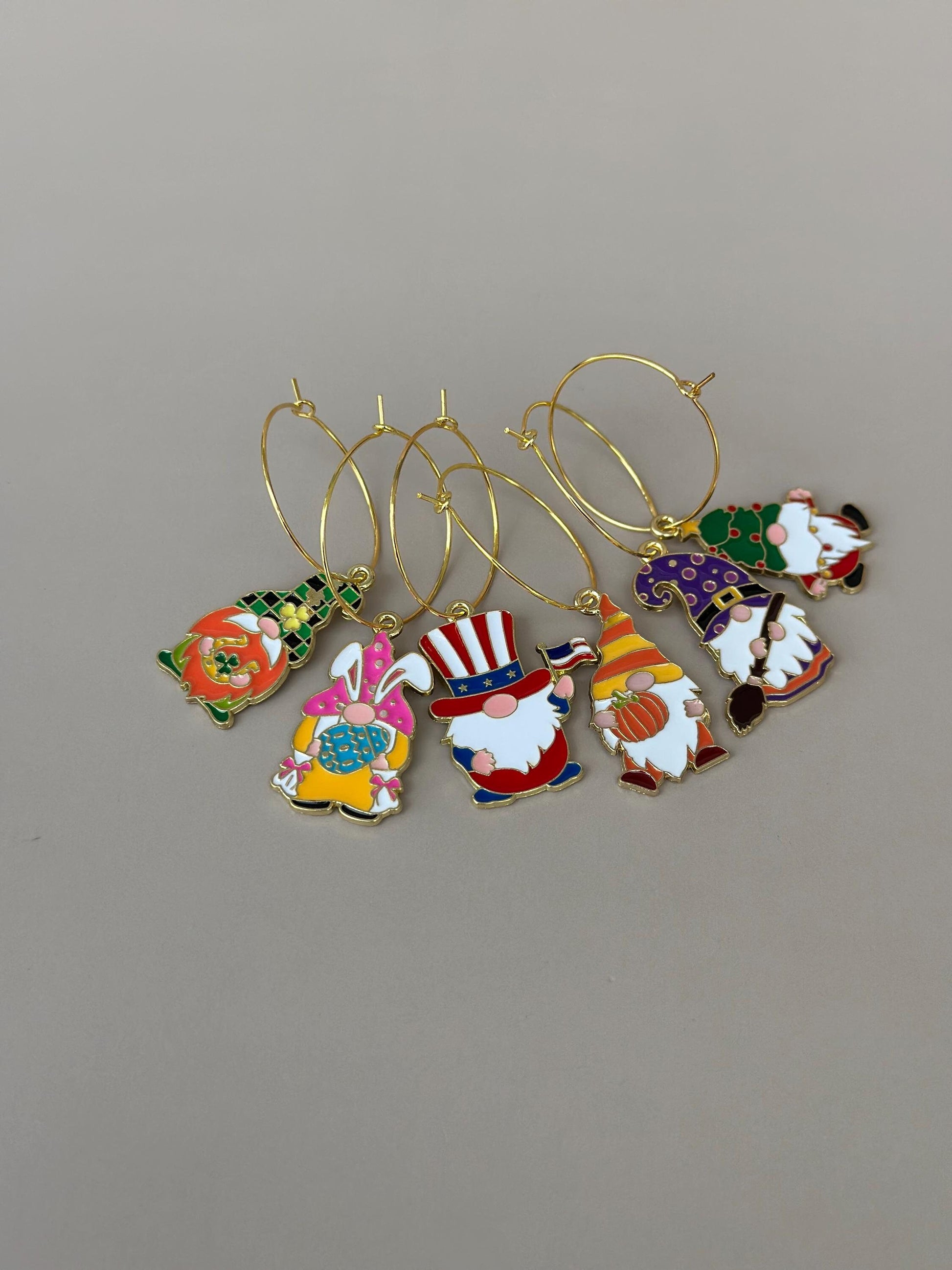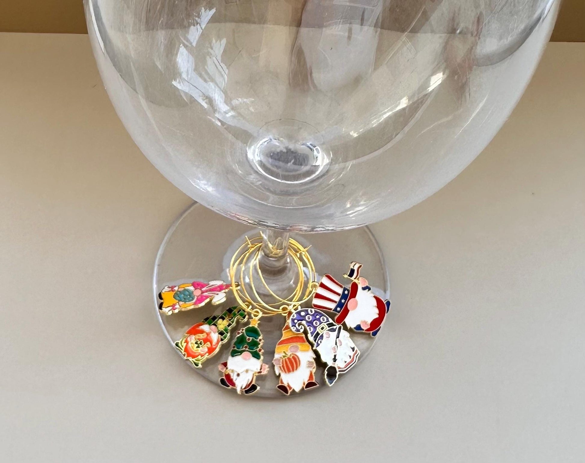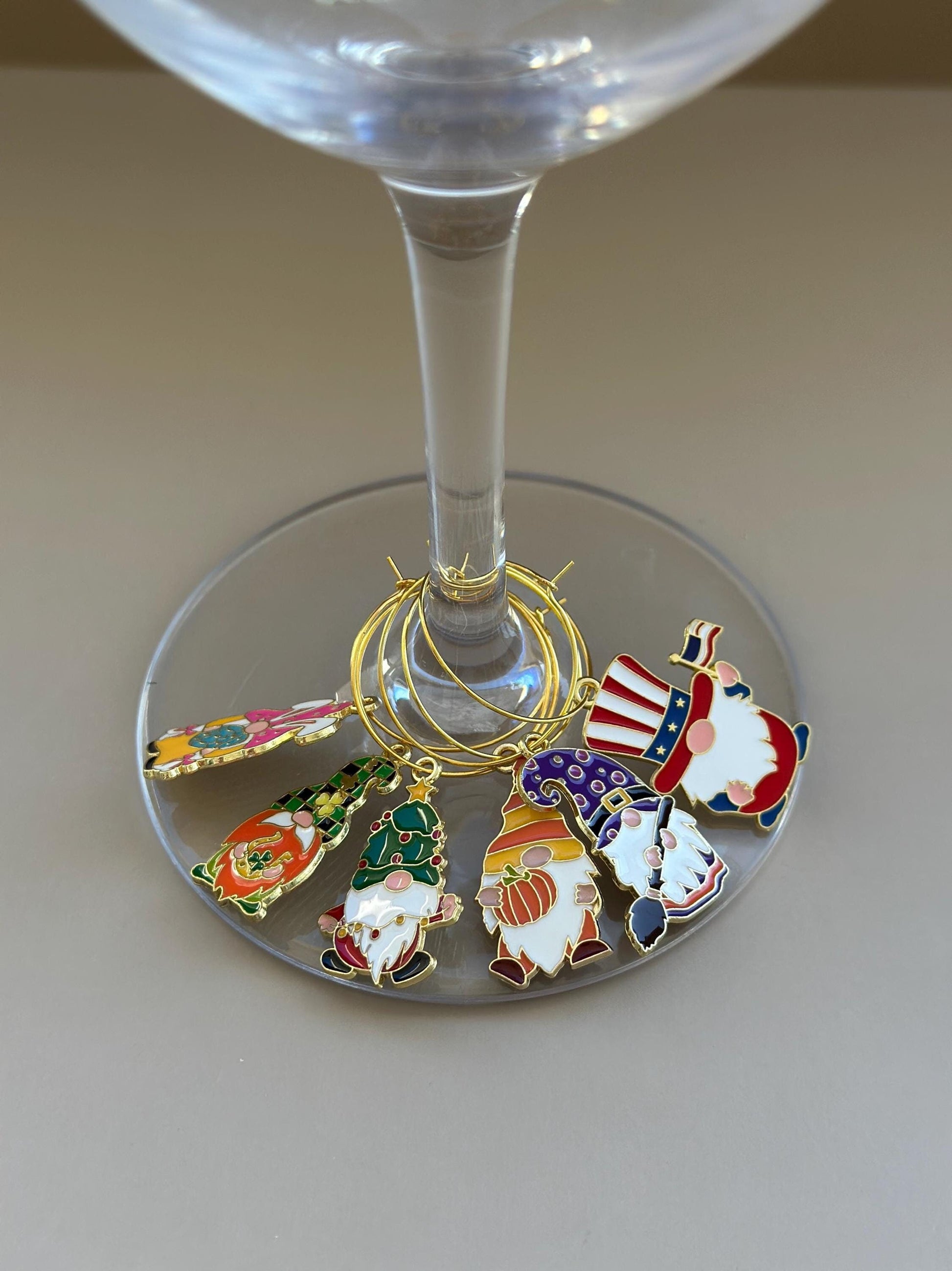Assorted Wine Charms. Wine Glass Charms. Wine Favors. Wine Charm Rings. Gnomes Charms. Gnomes Wine Markers. Cute Gnome Charms. Wine Glass Charms. Glass Decor.
